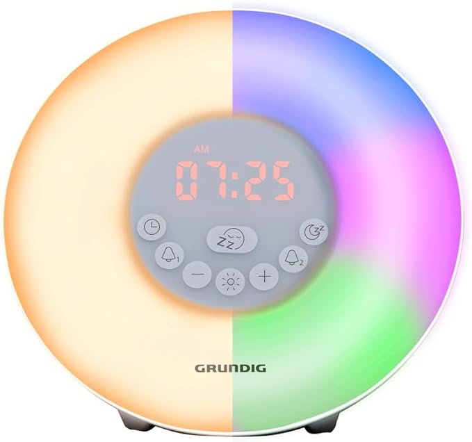 Despre acest produs TREZIRE NATURALĂ - Lampa de trezire Grundig vă ajută să vă treziți într-un mod natural și răcoritor și să vă începeți ziua perfect. SUNETE NATURALE CALMANTE - Creați o atmosferă liniștită în dormitorul dvs. cu sunetele naturale calmante încorporate în lampă, astfel încât să vă puteți trezi relaxat. VERSATILITATE - În plus față de suportul Bluetooth, portul AUX-IN vă permite să conectați dispozitive fără Bluetooth, iar ceasul deșteptător acceptă și redarea muzicii de pe carduri micro SD și stick-uri USB. RADIO FM - Ascultați posturile dvs. de radio preferate cu funcția radio FM integrată a lămpii de trezire Grundig. MOD SOMN CU DIMMER - Utilizați modul somn cu un timer reglabil de 30, 60 sau 90 de minute, astfel încât lumina ceasului deșteptător să se atenueze treptat pe măsură ce vă relaxați și adormiți. Alte detalii despre produs