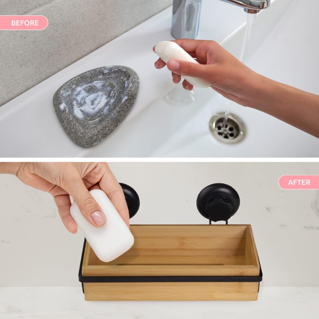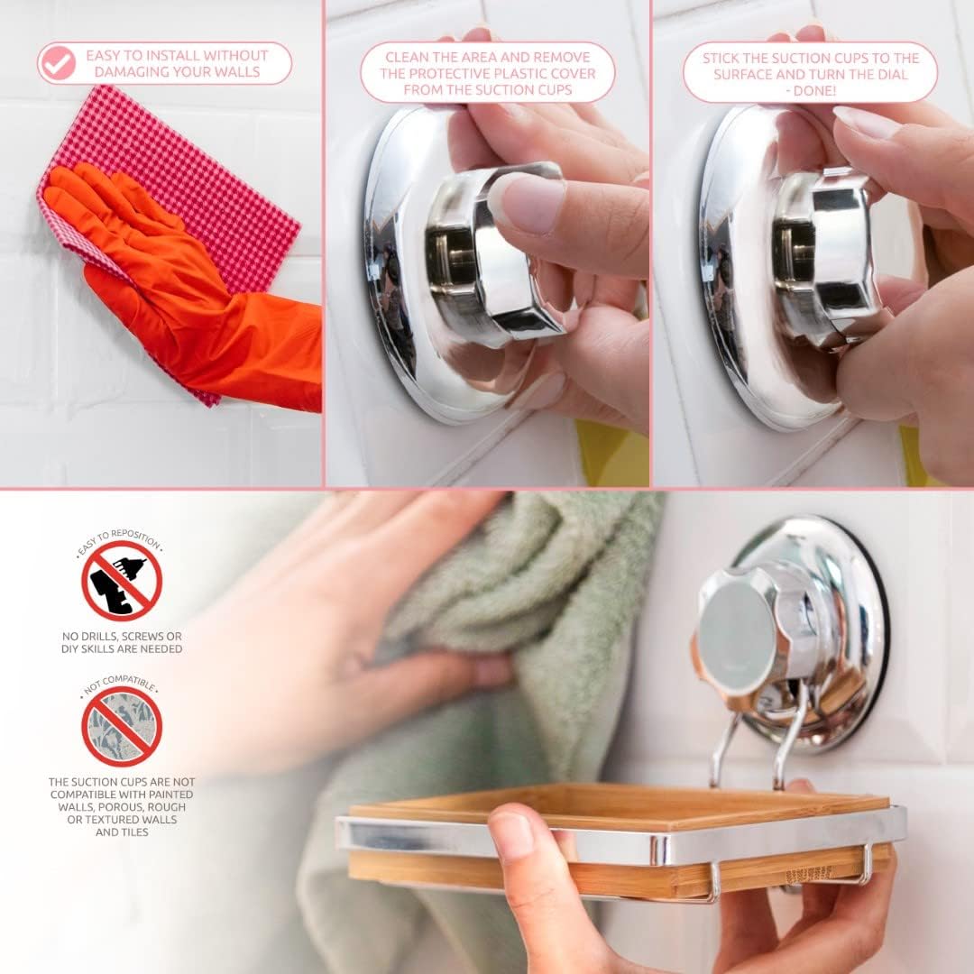 Despre acest produs: Raft mare multifuncțional pentru baie Montat pe perete datorită ventuzelor, ideal pentru depozitarea șamponului, machiajului și a altor articole de toaletă. Perfect pentru baie, duș, bucătărie și WC. Menținere fermă și durabilă datorită sistemului de ventuze Bestlock. Sarcină maximă: 12 kg. Rapid și ușor de atașat: Instalare în doar câteva secunde fără găurire sau lipire. Repoziționabil datorită sistemului de ventuze, ideal pentru suprafețe netede (gresie, oglinzi, uși de duș). Protecție împotriva ruginii: Acoperire metalică neagră rezistentă la coroziune. Pachetul de livrare: 1x Compactor raft mare multifuncțional pentru baie, culoare: lemn, material: bambus natural și metal negru, ABS, TPU, dimensiuni (LxAxÎ): 27,6 x 14,8 x 12,7, greutate: 0,6 kg, RAN10211. Alte detalii despre produs.