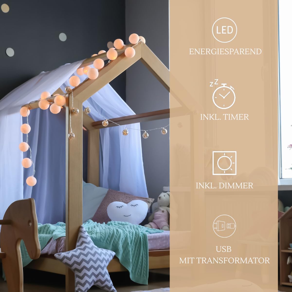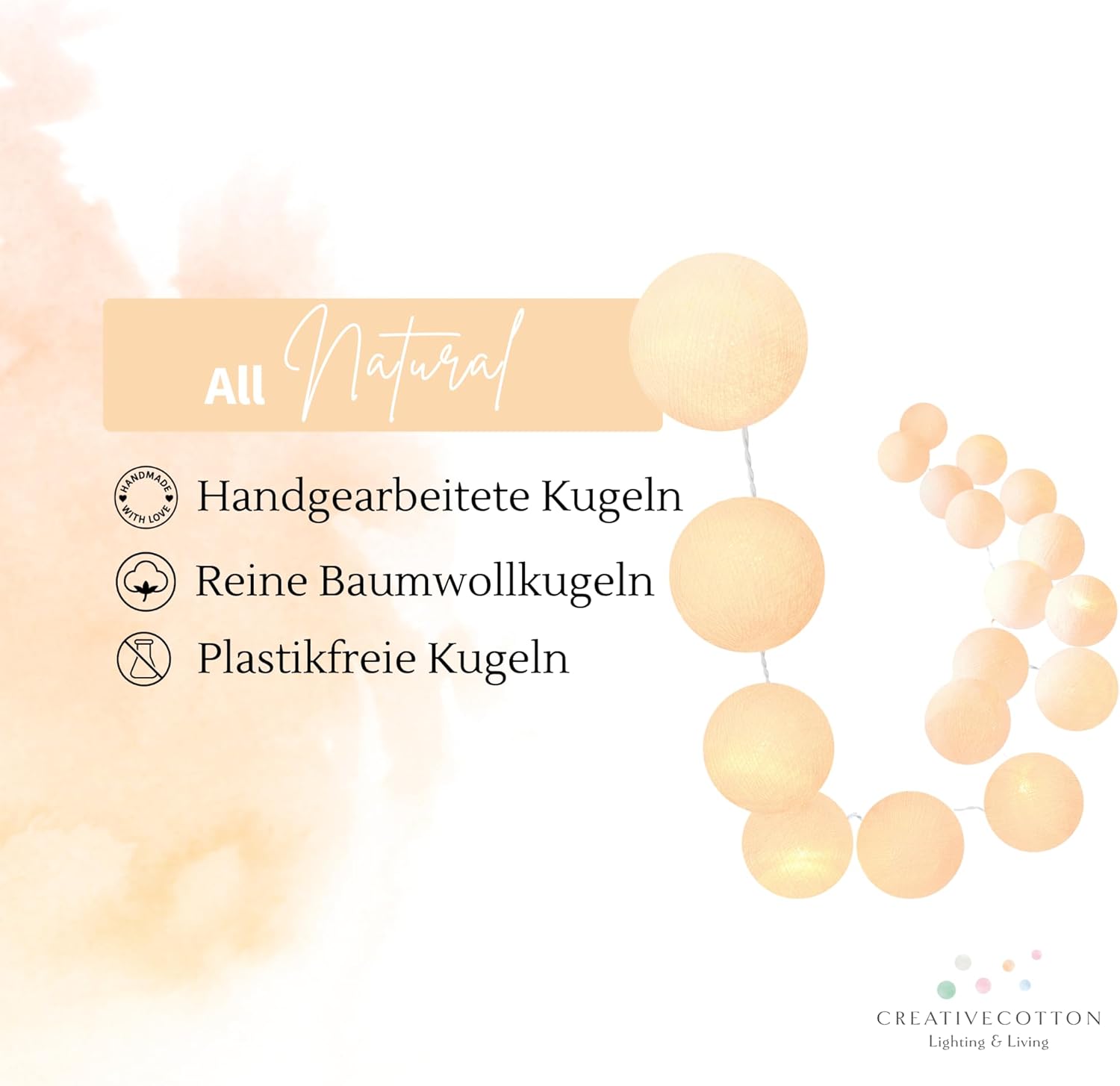 Despre acest articol Creatoare de atmosferă încântătoare - Bilele de bumbac lucrate manual cu dragoste și luminile LED moi și calde evocă o atmosferă confortabilă. Uimitor de economisitor de energie - Cu un consum de energie de doar 0,4 wați, ideal pentru ore lungi și confortabile acasă. Iluminare inteligentă - Cu un temporizator și un dimmer integrat, acest frumos lanț luminos este partenerul perfect pentru o noapte relaxantă. Gata asamblat pentru dvs. - nu este nevoie să tăiați sau să desfășurați globurile de bumbac! Atmosferic și flexibil - poate fi iluminat oriunde folosind un USB și un transformator, fie de la o priză convențională, fie cu o bancă de energie. (Banca de alimentare nu este inclusă în obiectul de livrare) Alte detalii despre produs