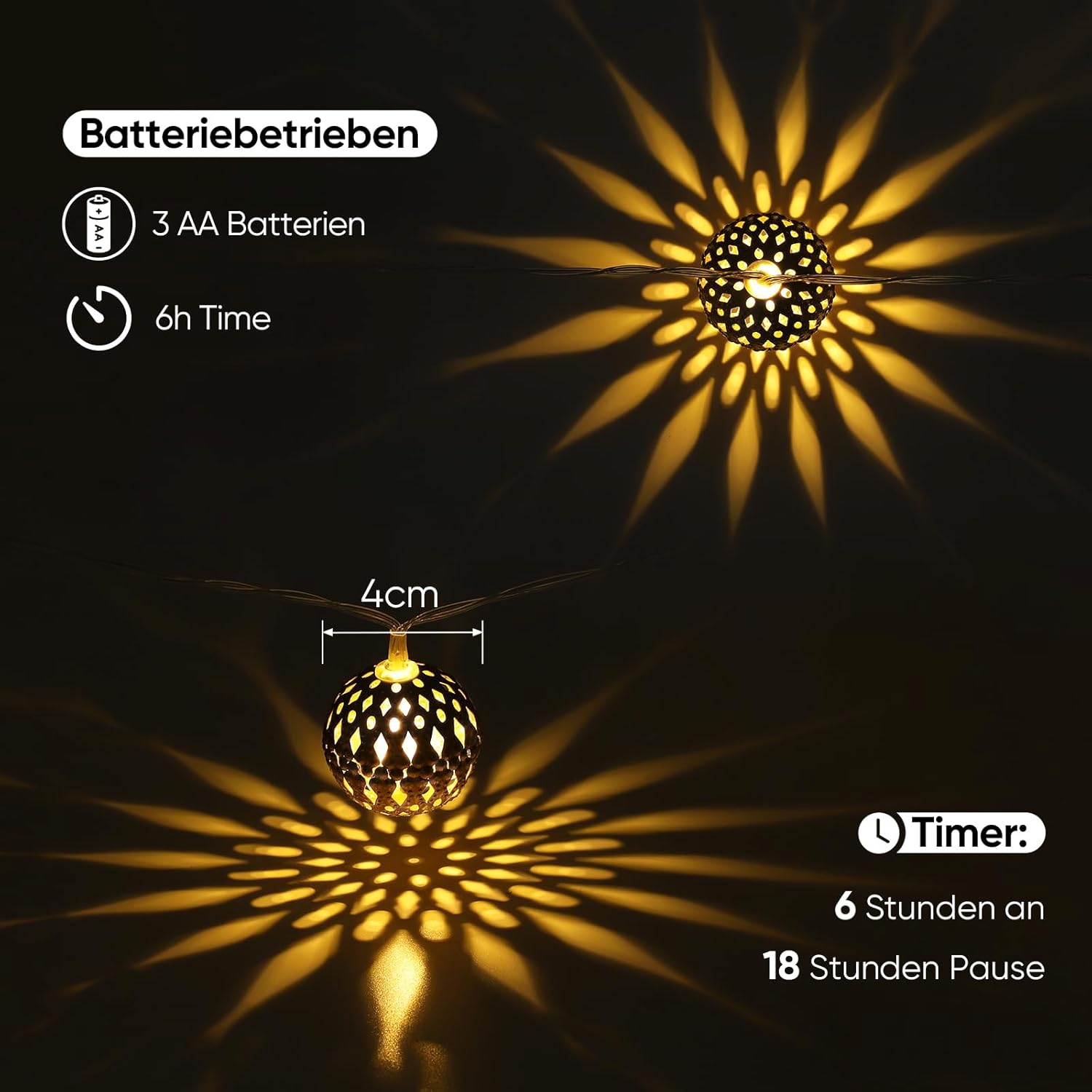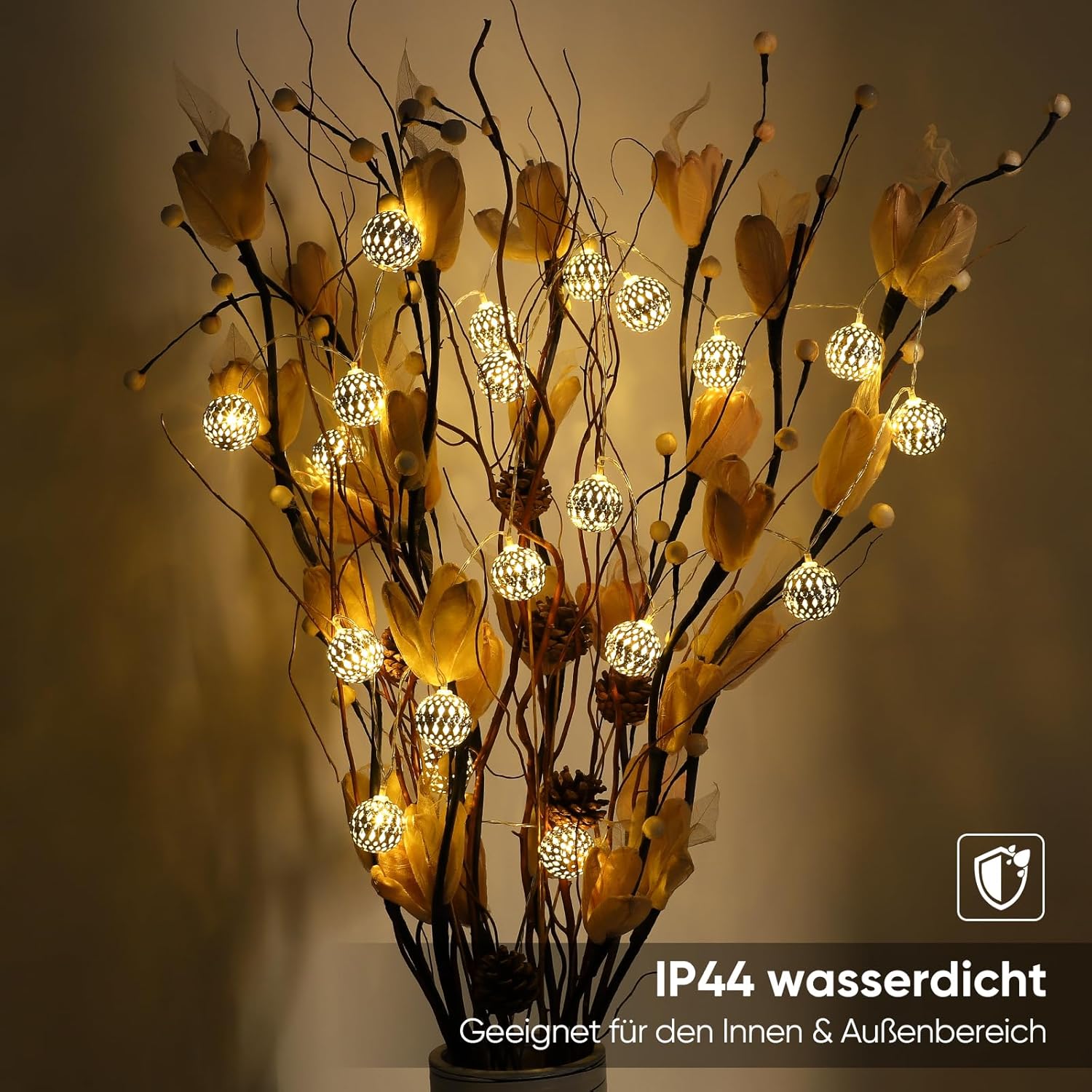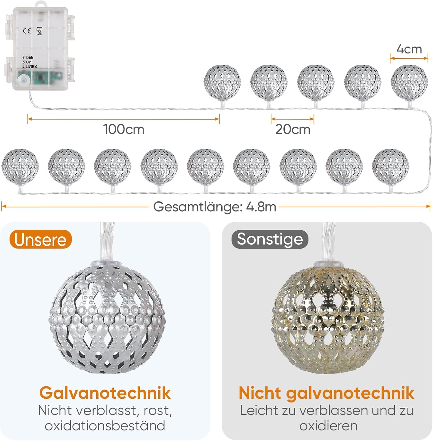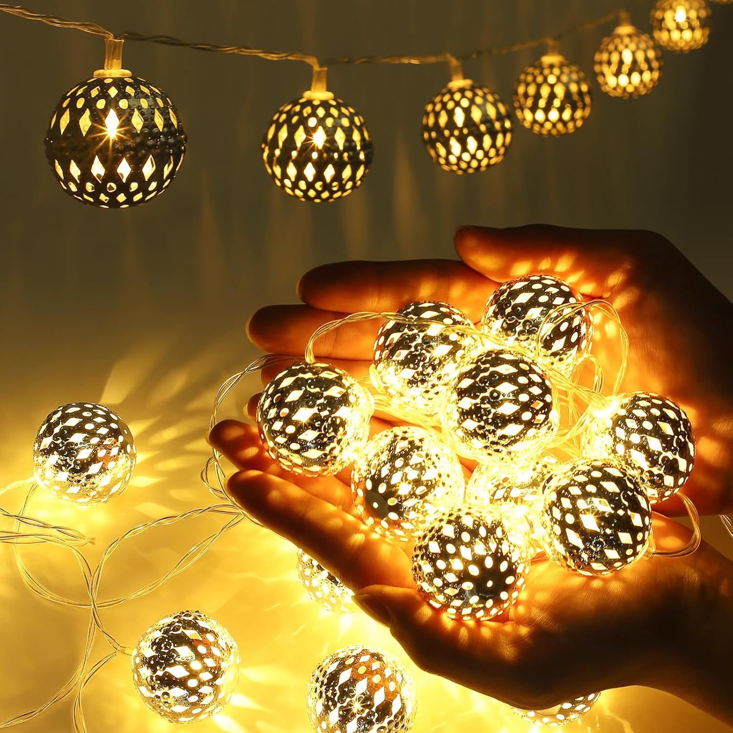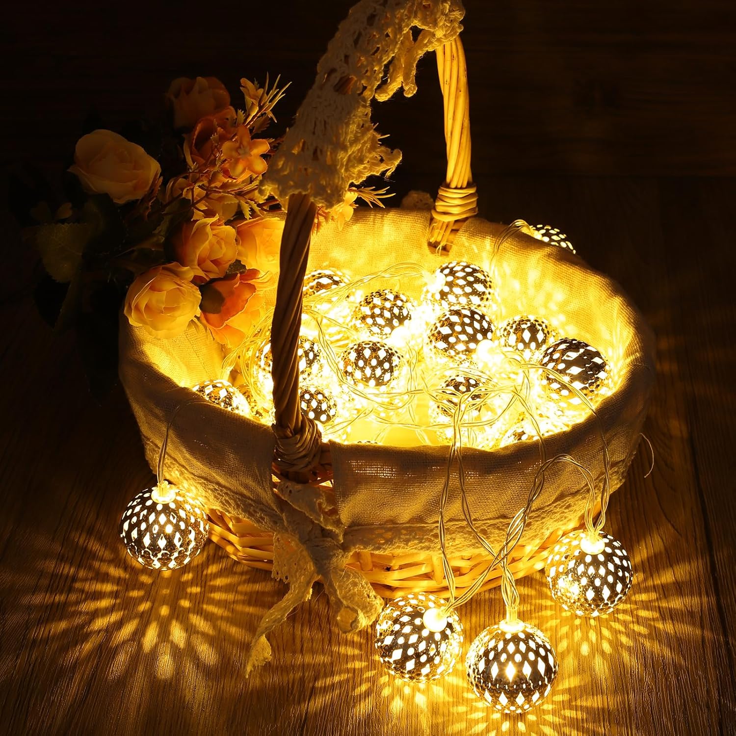 [RESIGILAT] Ghirlanda luminoasa marocana, 20 LED-uri, sfere argintii, decor boho