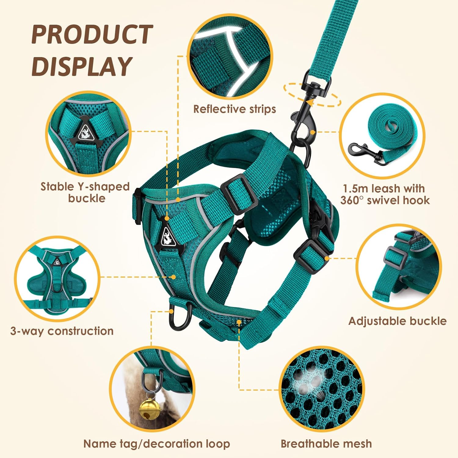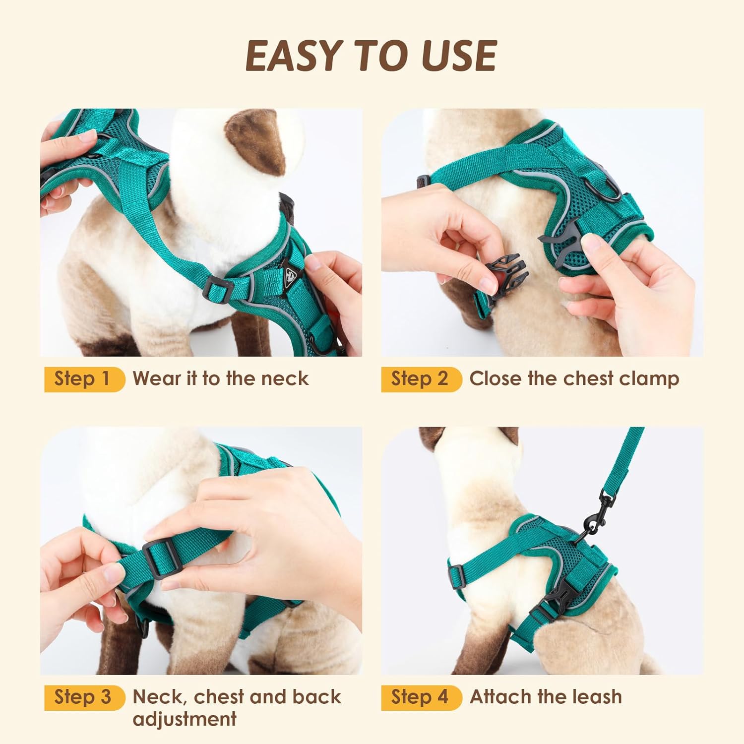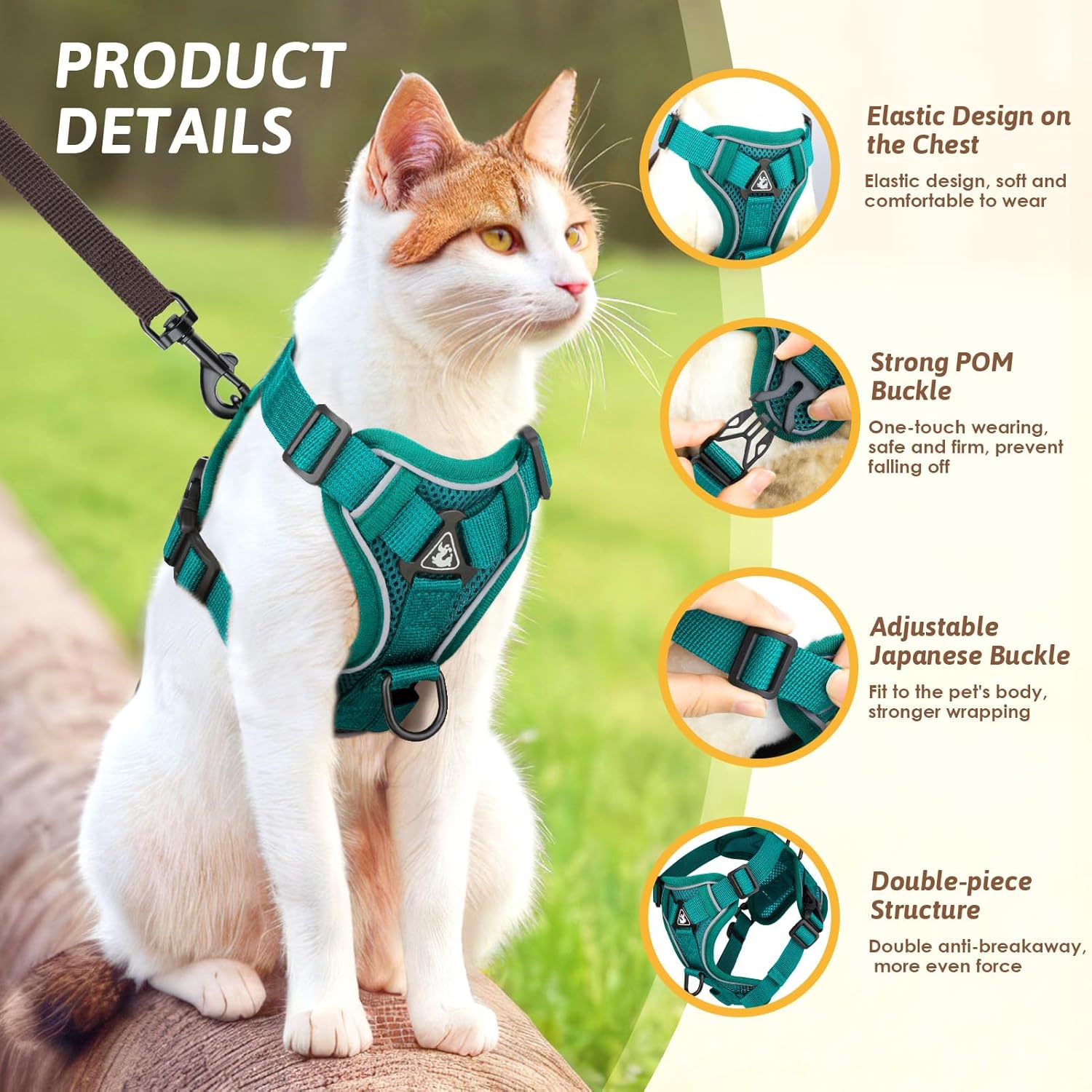 Despre acest articol: 【Material din plasă respirabil】Hamul nostru pentru pisici este fabricat din material moale, din plasă, care se adaptează corpului animalului de companie. Plasa respirabilă cu pori mari are o respirabilitate mai bună. Hamul tip vestă pentru pisici poate distribui uniform presiunea curelelor de umăr pe piept și umeri, pentru a preveni sufocarea sau suprasolicitarea și pentru a asigura confortul pisicii/câinelui dumneavoastră, fără a deteriora blana. 【Design reflectorizant】Designul cu bandă reflectorizantă pe toată circumferința hamului pentru pisici asigură siguranța și vizibilitatea pisicilor și a proprietarilor lor dimineața devreme sau târziu în noapte. Designul cu bandă reflectorizantă la 360 de grade face pisicile mai vizibile în condiții de lumină slabă și mai sigure pe timp de noapte. Când animalul dumneavoastră de companie poartă acest ham cu design reflectorizant, îl puteți vedea dintr-o privire în întuneric. 【Design reglabil】Acest ham pentru pisici folosește o cataramă japoneză reglabilă în mai multe direcții. Puteți ajusta strânsoarea după bunul plac, în funcție de mărimea animalului dumneavoastră de companie. Designul elastic îmbunătățit al pieptului este mai confortabil și nu strânge, oferind mai mult confort animalelor de companie și asigurând suficientă libertate de mișcare pentru gâtul și antebrațele animalului de companie. 【Siguranță și prevenirea pierderii】Noul ham anti-evadare pentru pisici cu lesă are un inel de agățare în formă de D pe piept, care poate fi folosit pentru agățarea plăcuțelor de nume, a cardurilor anti-pierdere și a luminilor de noapte. Designul inelului în formă de D pe spate al hamului pentru pisici este mai stabil și oferă, în combinație cu o structură din două piese, o protecție dublă pentru a preveni evadarea și pierderea animalelor de companie. 【Mărime】Pachetul conține 1 ham pentru pisici mărimea M și 1 lesă pentru pisici. Această mărime este M, circumferința pieptului 34-40 cm, circumferința gâtului 24-34 cm, iar lungimea lesei pentru pisici este de 1,5 m, potrivită pentru pisici sau câini mici cu o greutate de 4 până la 5,5 kg. Puteți măsura mărimea animalului dumneavoastră de companie înainte de a cumpăra, astfel încât animalul dumneavoastră de companie să poată avea o experiență mai bună de purtare.