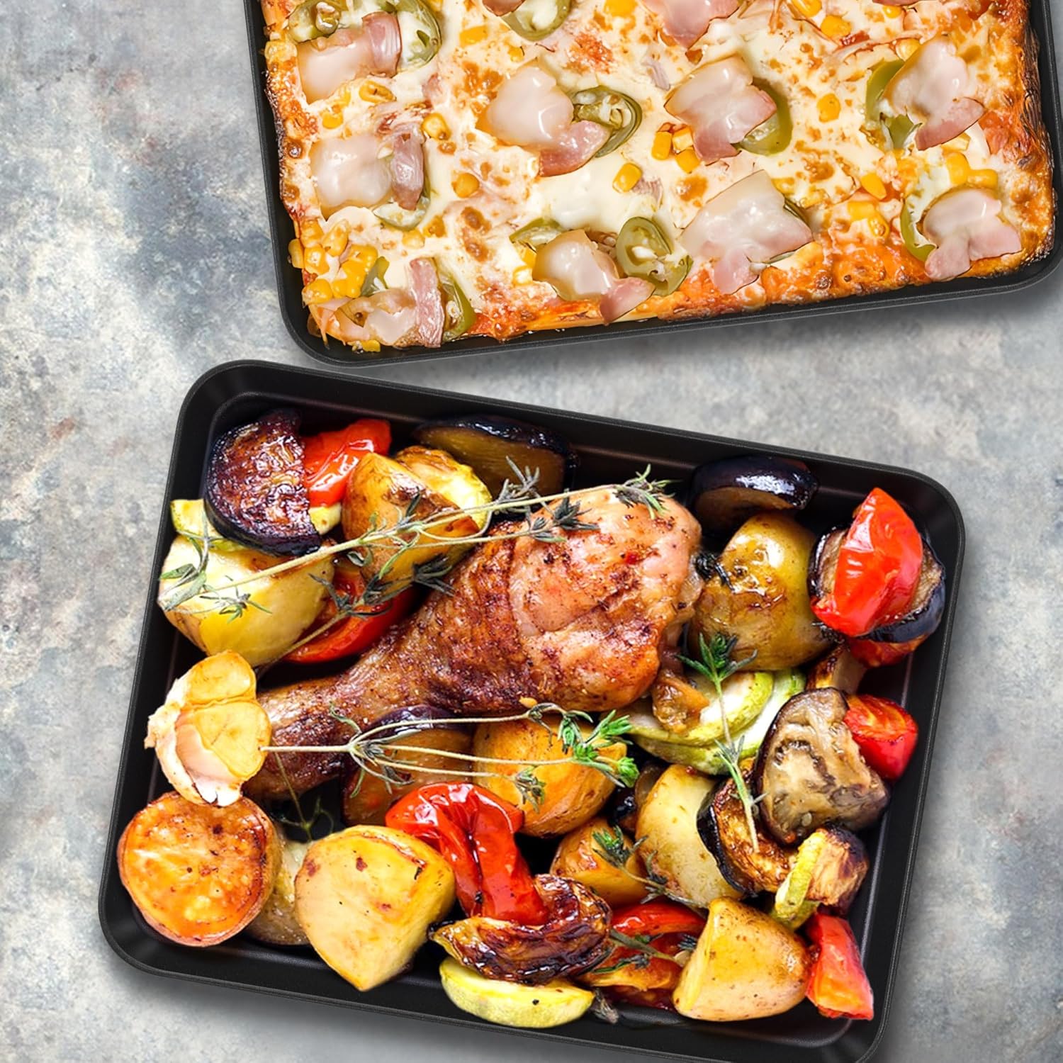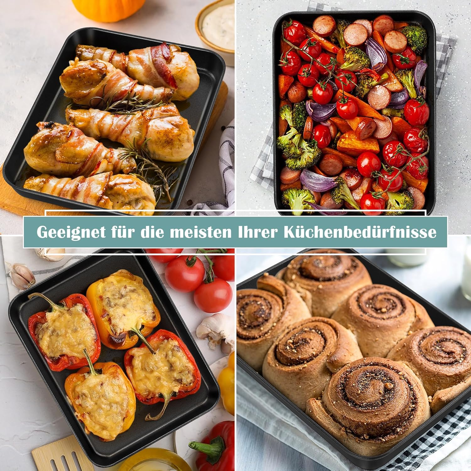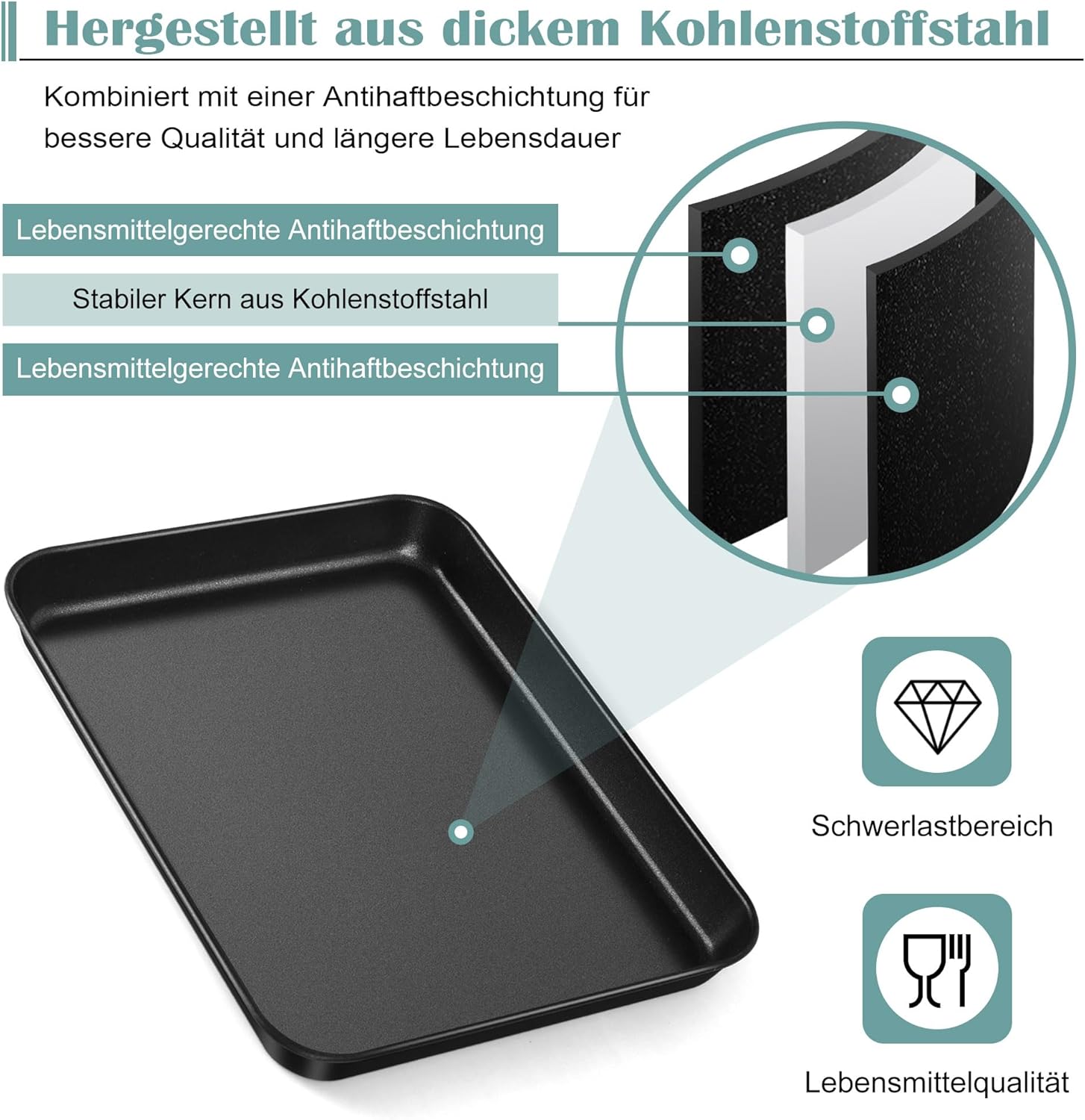 Informații despre acest articol Material sănătos: Setul de tăvi de copt Joyfair este fabricat dintr-un miez robust din oțel carbon cu un strat antiaderent de calitate alimentară, fără eliberare de substanțe toxice la temperaturi ridicate, siguranță dublă, mai bună rezistență la rugină și coroziune, sănătos și robust pentru coacerea zilnică. Coacere uniformă: Suprafața plană a tăvii de copt disipează rapid și uniform căldura, făcând coacerea mai ușoară, iar produsele de copt, structura groasă și marginea laminată ranforsată asigură că tava de copt nu se va răsuci și deforma ușor, tava de copt este sigură până la 232℃, potrivită pentru majoritatea cuptoarelor, frigiderelor și congelatoarelor de uz casnic. Meșteșug exquisit: Margini laminate fără vârfuri ascuțite, pentru a vă proteja mâna și a vă oferi o prindere confortabilă, design dintr-o singură bucată fără cusături, pentru a evita scurgerile din partea inferioară, design stivuibil pentru a economisi mai mult spațiu, adâncime de 2,5 cm, pentru a evita ca sucul alimentar să se scurgă peste tot, pentru a vă menține cuptorul curat. Ușor de curățat și de eliberat rapid: Suprafața antiaderentă asigură o eliberare ușoară a tuturor produselor de copt și reduce frecvența cu care resturile alimentare se lipesc de suprafața tăvii de copt, ceea ce face curățarea și întreținerea o joacă de copii. Pentru a menține durabilitatea produsului, vă recomandăm să spălați tava de cuptor manual. Utilizare versatilă: Include 2 tăvi de copt, dimensiuni 23,8x17,7x2,5cm, pregătește eficient alimentele pentru următoarea rundă de coacere, ideal pentru coacerea biscuiților, pâinii, brownie-urilor, cartofilor, legumelor și fripturilor, un cadou perfect pentru prietenii dumneavoastră de Crăciun, zile de naștere, nunți și multe altele. › Mai multe detalii despre produs