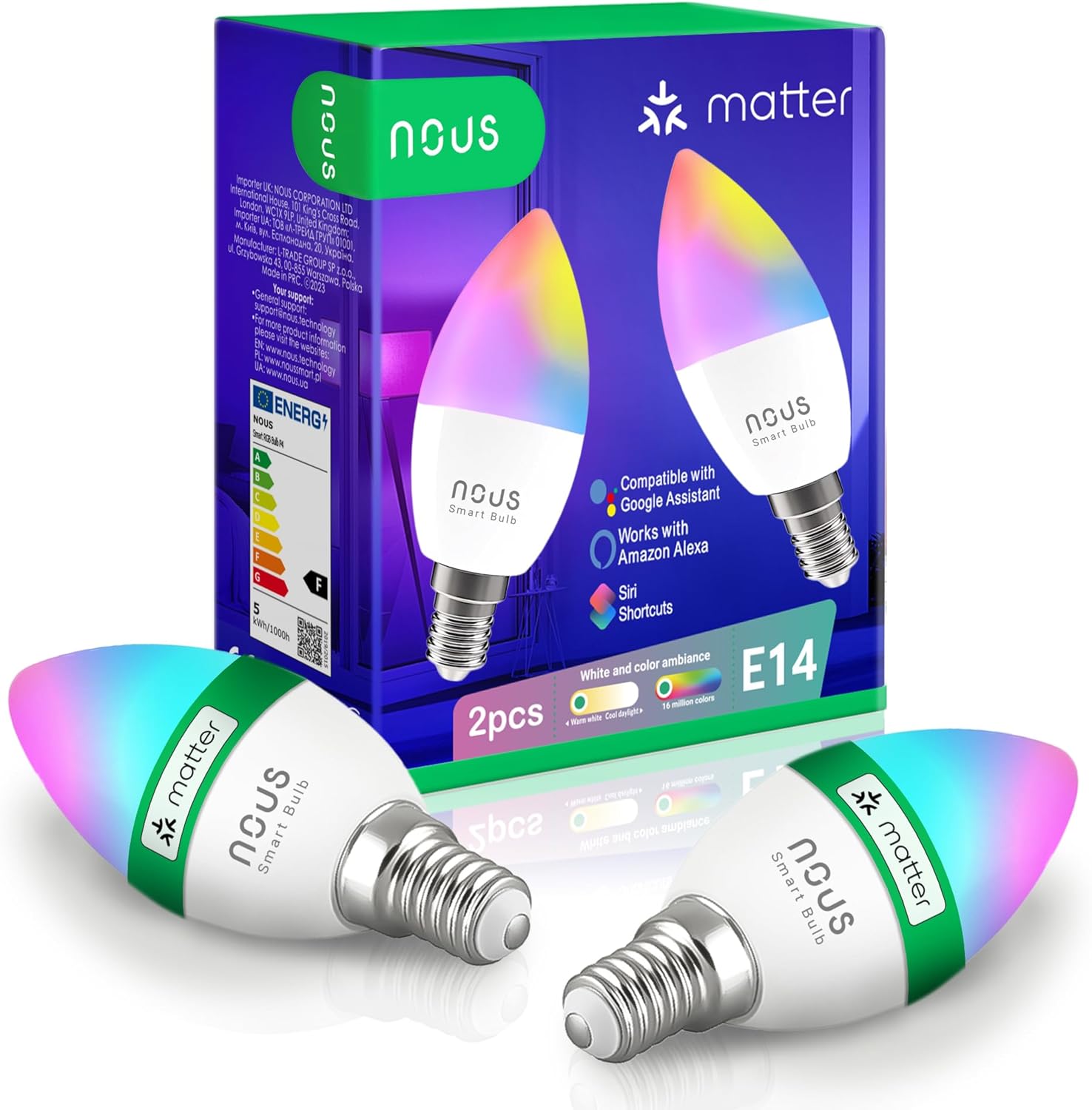 Informații despre acest articol 📱 CONTROL INTELIGENT ȘI COMPATIBILITATE VERSATILĂ: Becul LED NOUS P4 E14 poate fi controlat convenabil prin smartphone și comenzi vocale. Datorită compatibilității cu Alexa, Google Home și Apple HomeKit, veți experimenta confort maxim. Utilizați aplicația nous smart sau tuya smart life pentru gestionarea ușoară a iluminatului dumneavoastră. 🌈 EXPERIMENTAȚI DIVERSITATEA CULORILOR ȘI ATMOSFERA: Alegeți dintre peste 16 milioane de culori și ajustați luminozitatea, precum și temperatura culorii de la alb cald la alb rece. Indiferent dacă este vorba de o întâlnire confortabilă sau o atmosferă de lucru productivă, becul LED NOUS P4 E14 creează starea de spirit perfectă. 💡 EFICIENȚĂ ENERGETICĂ ȘI DURABILITATE: Cu o putere de 9W și o durată de viață de până la 25.000 de ore, becul inteligent LED E14 alb cald oferă nu numai o soluție de iluminat eficientă, ci și o alternativă durabilă la becurile tradiționale. 🔗 PROTOCOL INOVATOR MATTER SMART HOME: Ca pionier al celei mai noi generații, becul inteligent NOUS P4 suportă protocolul Matter, care permite o integrare și interoperabilitate perfectă în ecosistemul dvs. de casă inteligentă. Bucurați-vă de o soluție de iluminat pregătită pentru viitor, compatibilă cu diverse platforme Smart Home. 🎵 ILUMINAT CREATIV ȘI AUTOMATIZAT: Utilizați scene, temporizatoare și rutine pentru a ajusta automat iluminatul. Sincronizați becul LED E14 cu muzica, filmele sau jocurile pentru efecte imersive. Proiectați-vă casa inteligent și experimentați iluminatul care se adaptează vieții dumneavoastră. Mai multe detalii despre produs