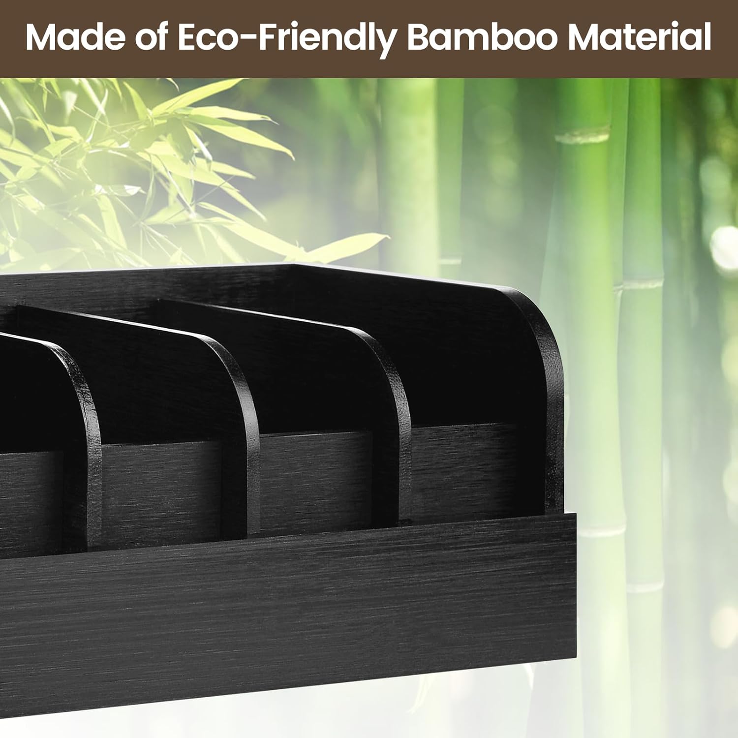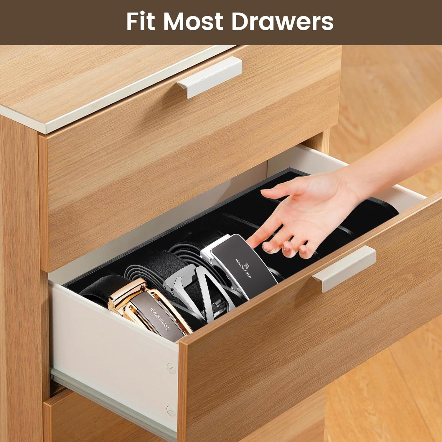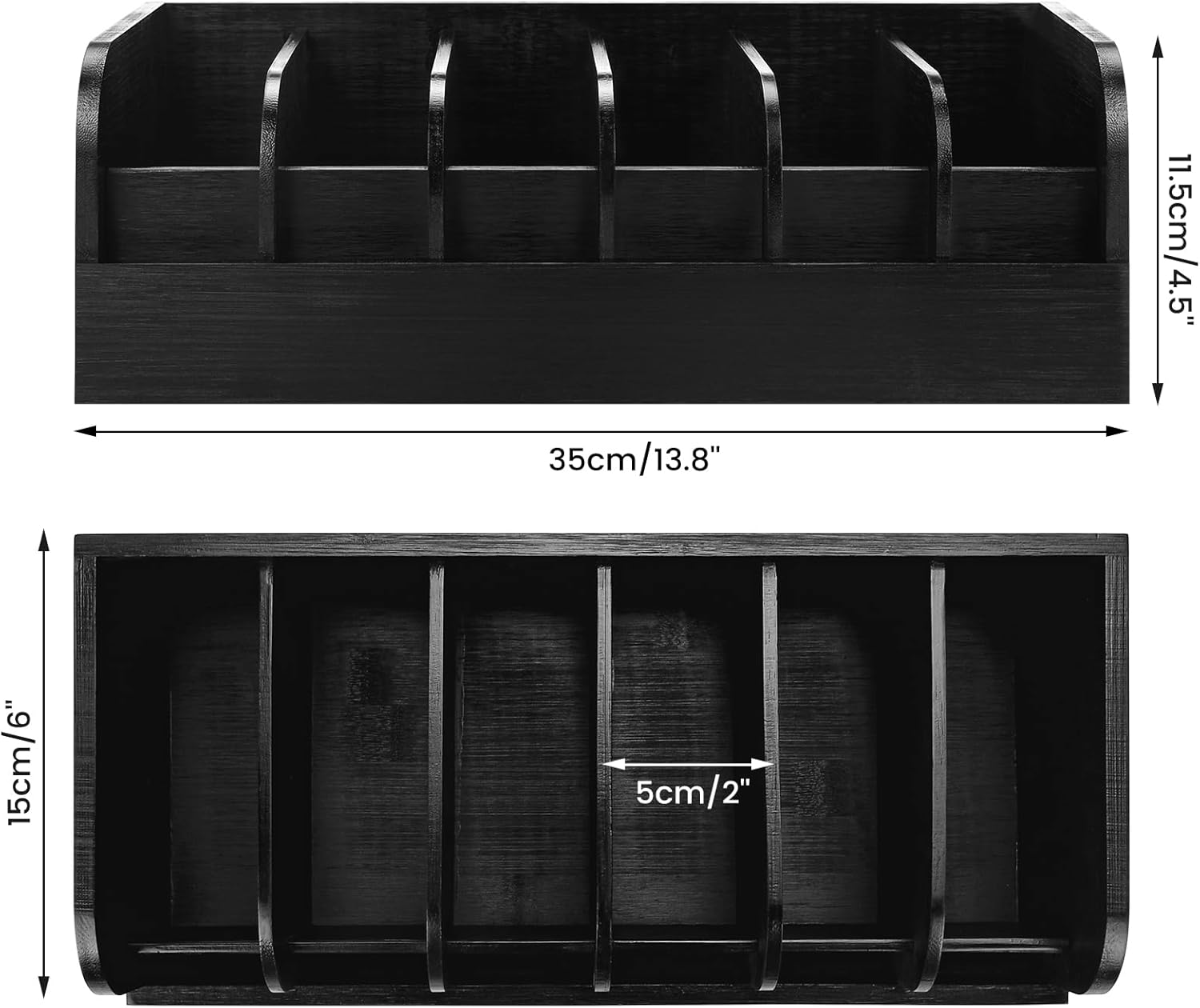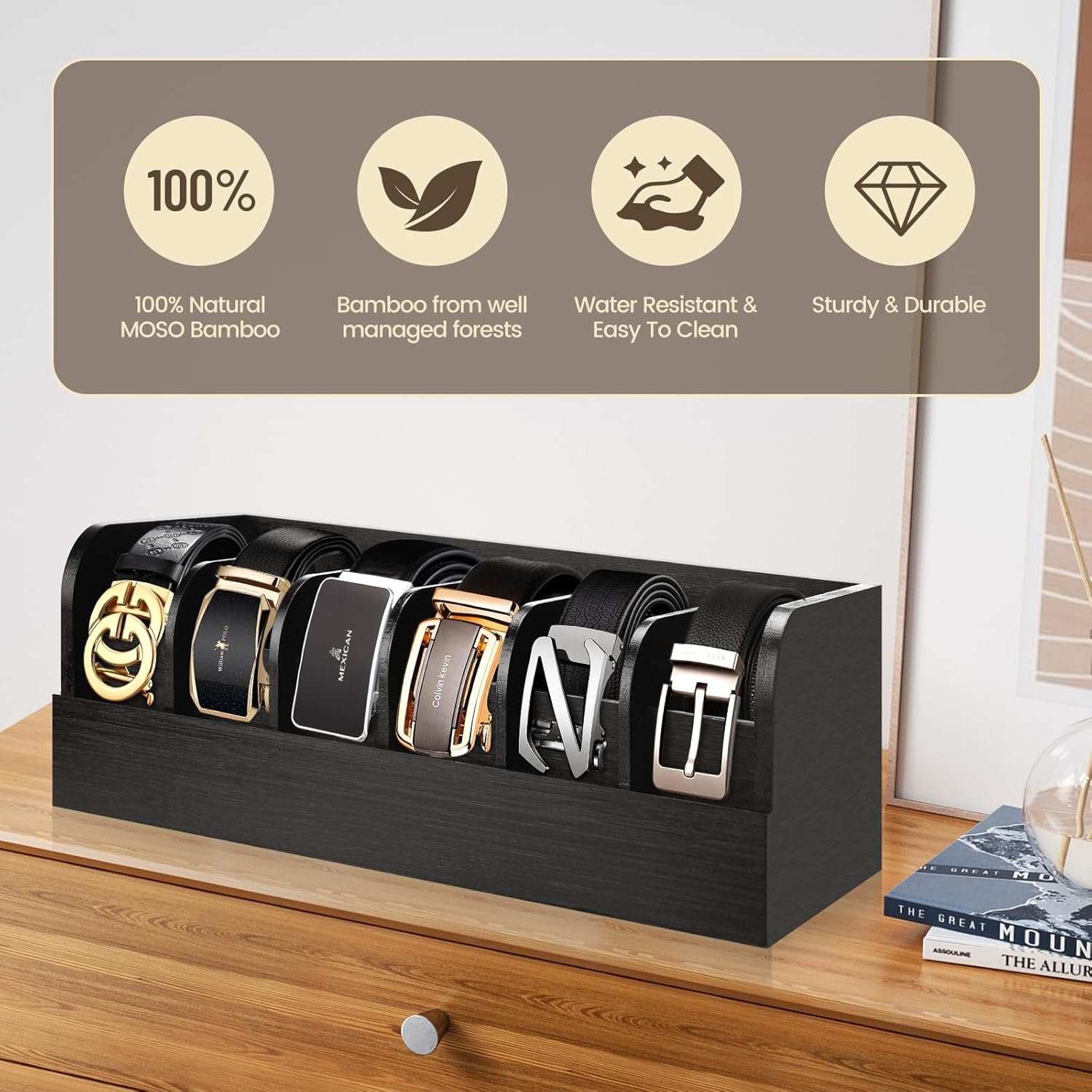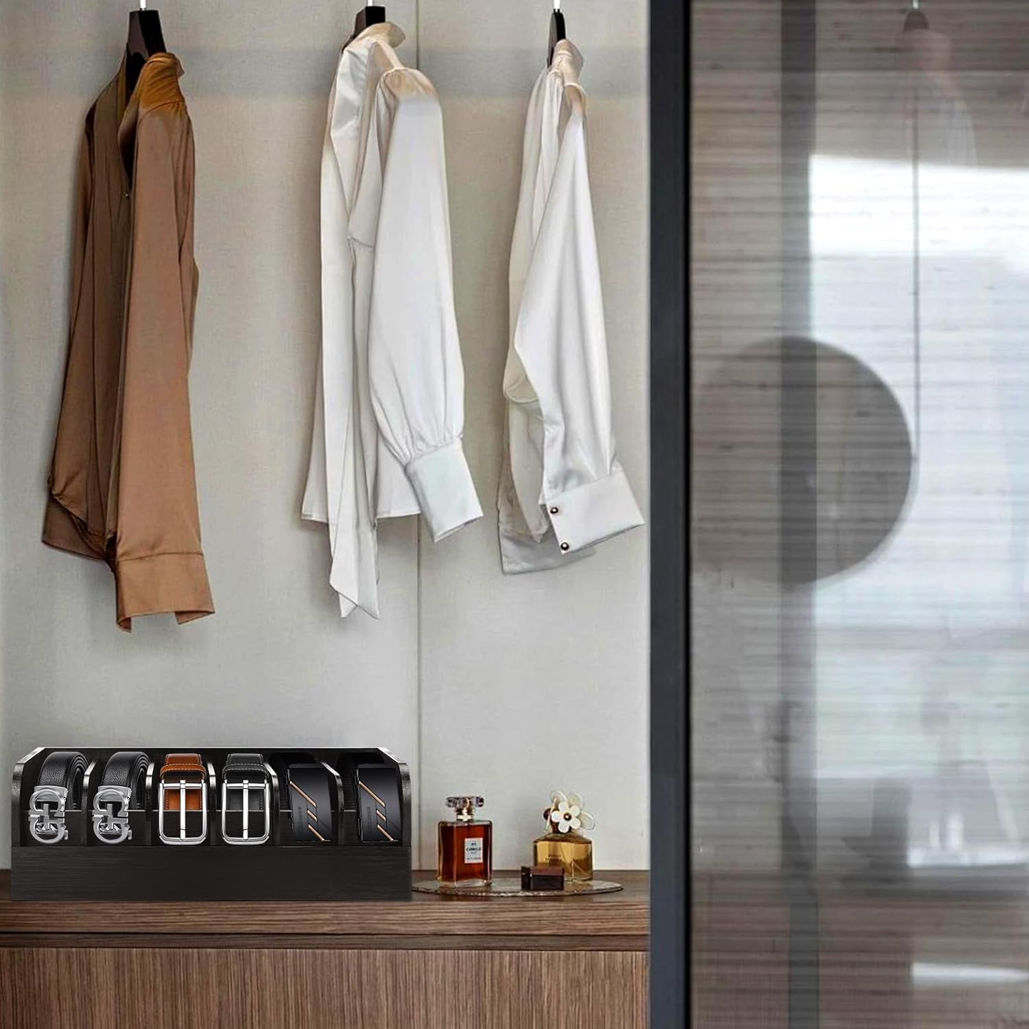 Organizator de curea, 6 compartimente, cutie organizator de curea pentru bărbați, potrivită pentru dulapuri și sertare, organizator de curea montat pe perete • 【MAXIMIZAȚI-VĂ SPAȚIUL DE DEPOZITARE】Acest organizator de garderobă din piele neagră măsoară 35 x 15 x 11,5 cm și nu va ocupa mult spațiu, puteți găsi cu ușurință cureaua dorită și o puteți așeza în dulap, sertar sau în mijlocul mesei. • 【Material de înaltă calitate】Suportul de curea este fabricat din bambus natural, care este ecologic, durabil și rezistent la umiditate, cu o suprafață foarte netedă și nu se crăpă sau deformează ușor. • 【Multifuncțional】 Suportul de afișare poate depozita cu grijă articole pentru bărbați și femei, cum ar fi curele, cravate, ceasuri, bijuterii, brățări, cosmetice, parfumuri, rechizite de birou etc., creând un spațiu organizat pentru prietenii dvs. ca un cadou pentru cei dragi și colegi. • 【Suport pentru curele】Dacă aveți curele frumoase, acest suport pentru curele este modalitatea perfectă de a le expune, toate curelele sunt vizibile dintr-o privire, puteți găsi rapid cureaua pe care doriți să o utilizați, este o modalitate excelentă de a vă organiza. • 【Ușor de curățat】Menținerea curățeniei organizatorului de curele este foarte simplă, trebuie doar să îl ștergeți cu o cârpă umedă pentru a îndepărta murdăria și praful, apoi să îl uscați pentru a evita petele de apă.