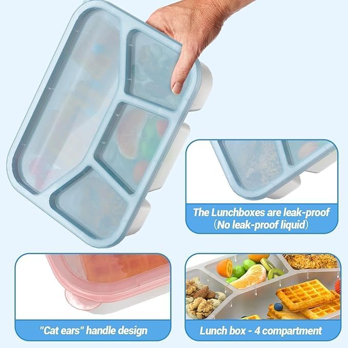 [RESIGILAT] Set de 4 cutii Bento, compartimente, pranz, gustari, micul dejun