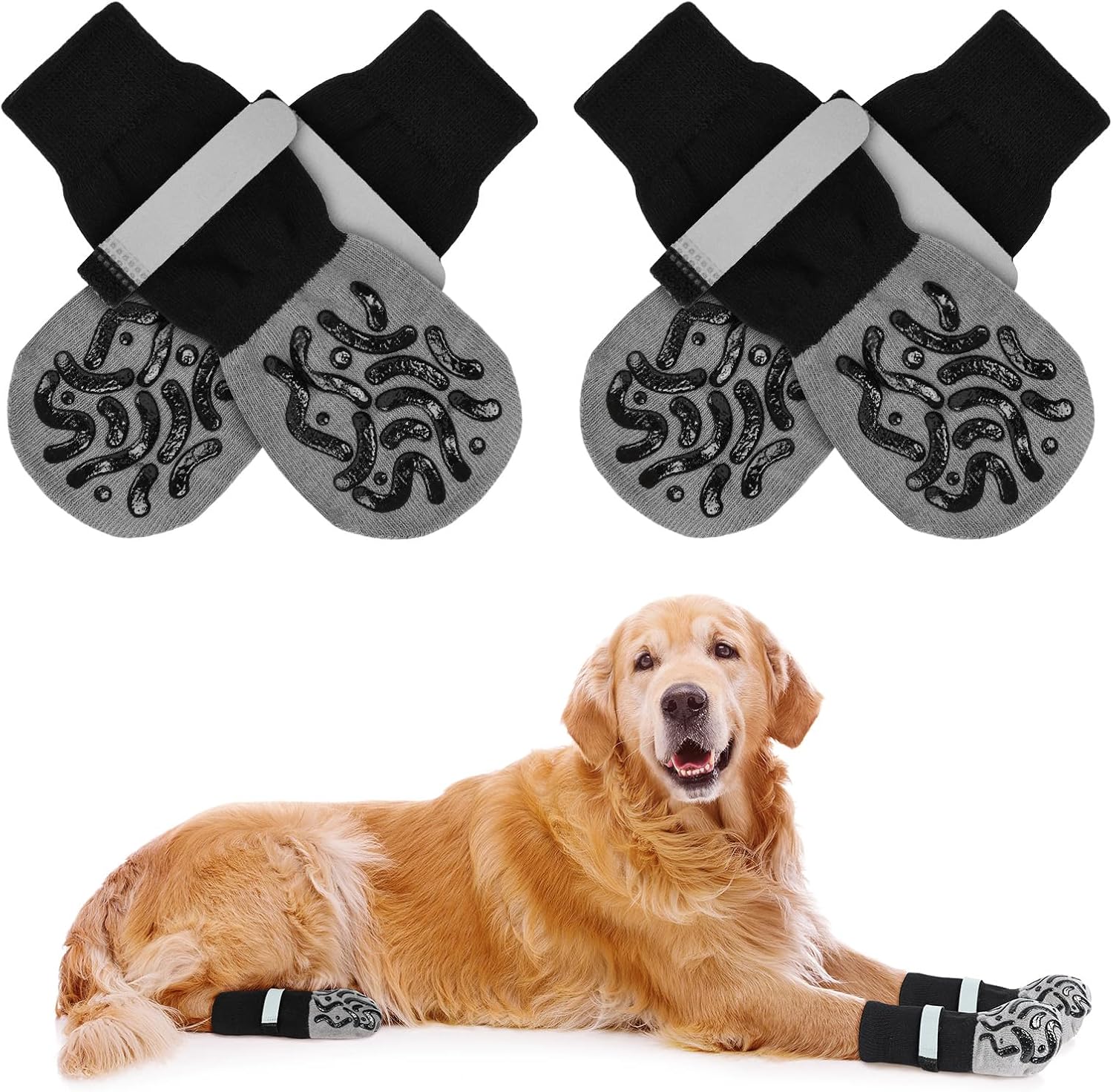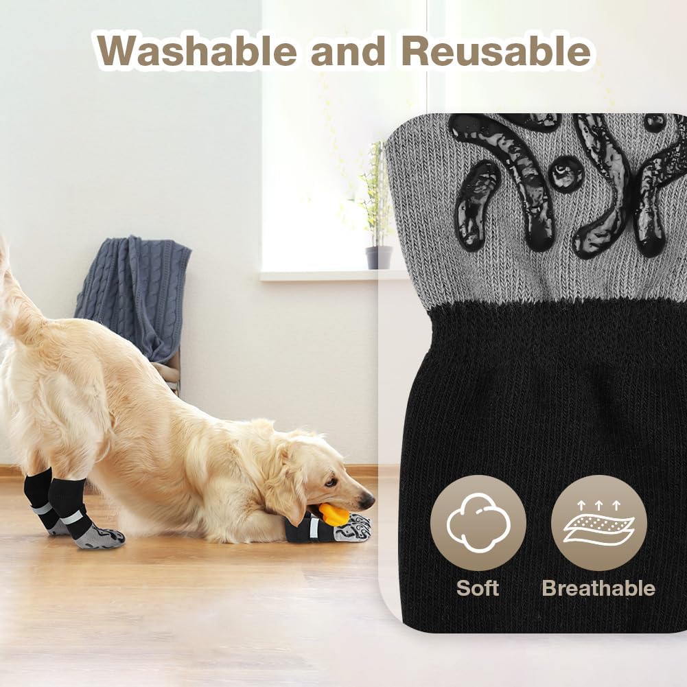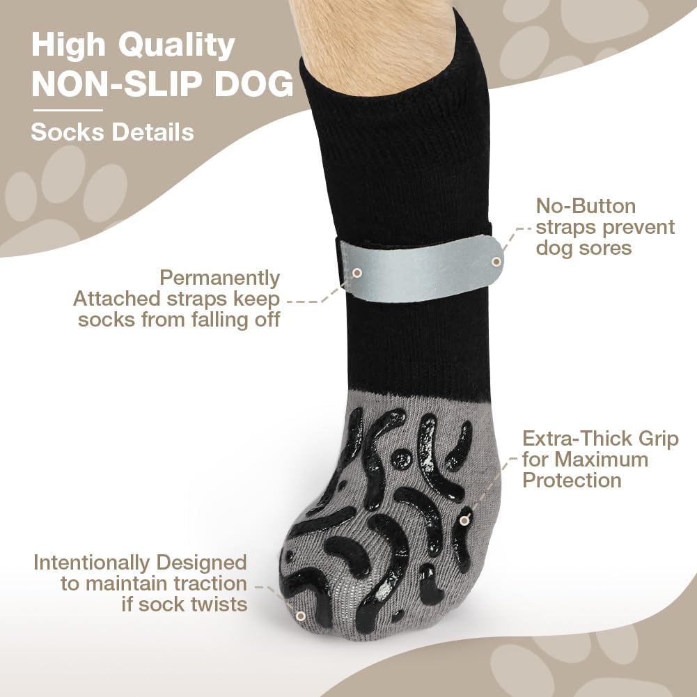 [RESIGILAT] Sosete antiderapante pentru caini, 2 perechi, XL, bretele reglabile