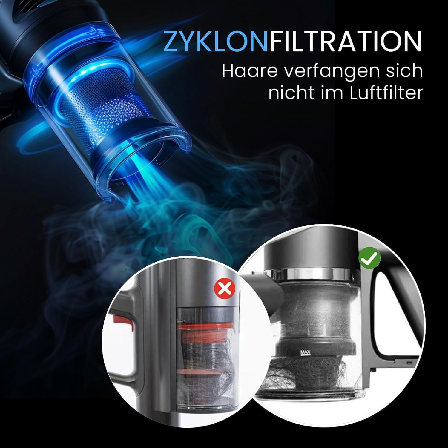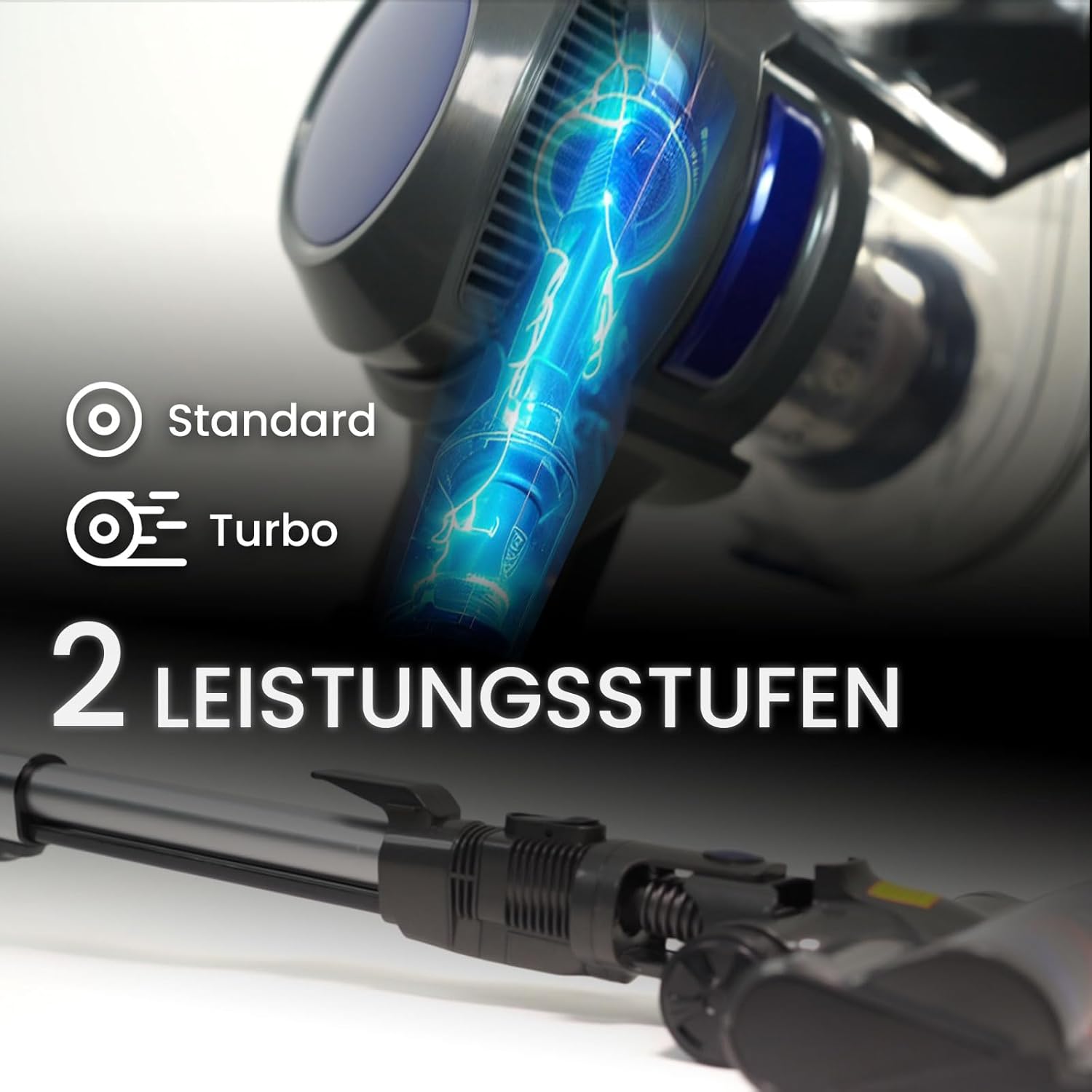 Aspirator fără fir cu putere de aspirație puternică (100 AW), putere de 210W și filtrare ciclonică. Manual în limba română inclus. Autonomie maximă de 45 de minute. Flexibilitate maximă și libertate de mișcare.