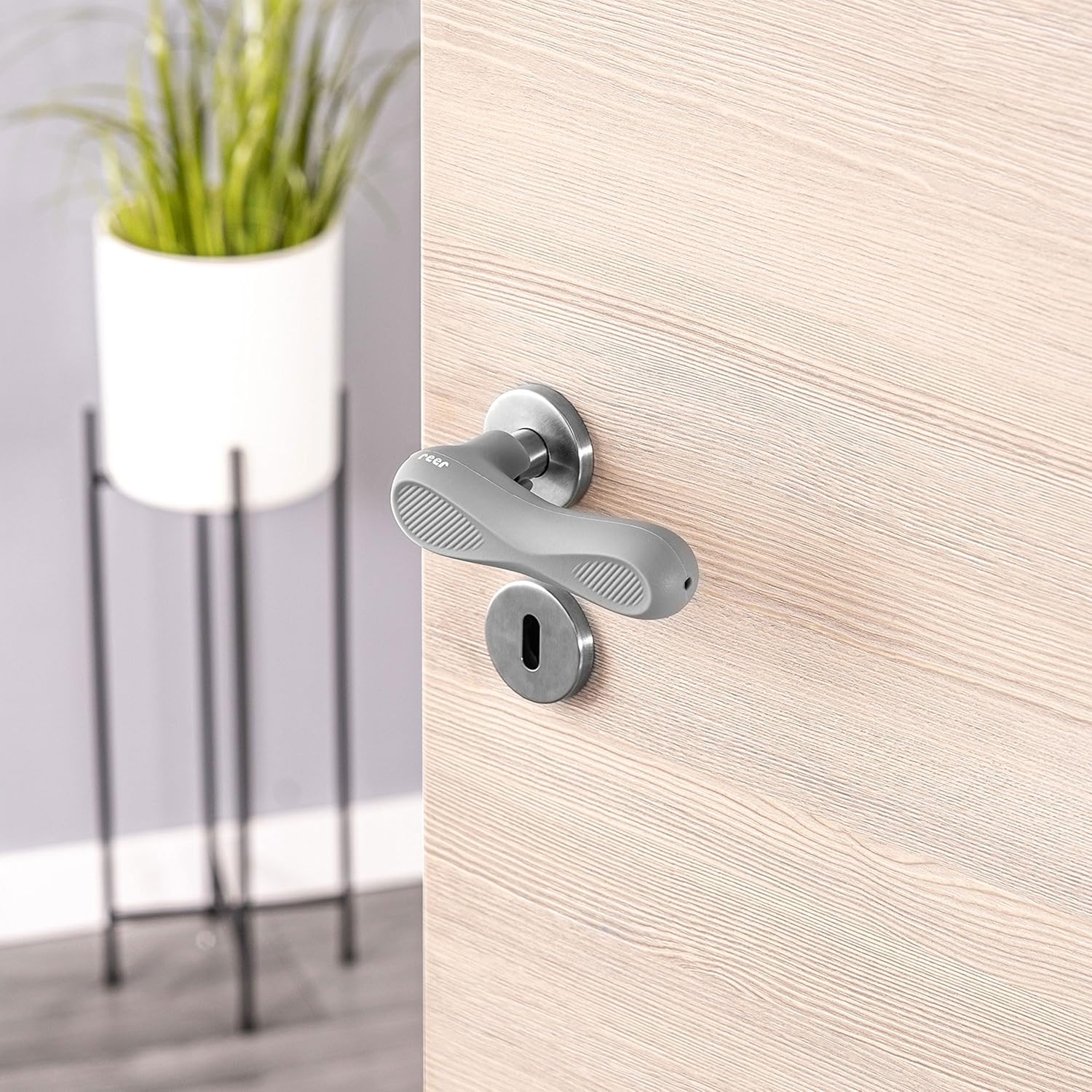 Protejează împotriva rănilor la mânerul ușii, protejează pereții și mobilierul de deteriorare. Fabricat din silicon moale și flexibil pentru o prindere optimă pe o varietate de mânere de ușă. Acoperire completă a mânerului ușii pentru siguranță maximă a copiilor. Potrivit pentru majoritatea mânerelor de ușă cu un diametru de până la 2 cm și o lungime de 13 cm. Setul conține 2 amortizoare pentru uși, asigurând ambele părți ale ușii. STANDARDELE NOASTRE DE CALITATE ÎN DETALIU: reer.de/tests › Mai multe detalii despre produs.