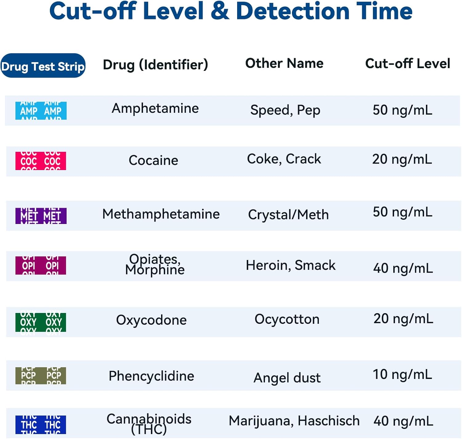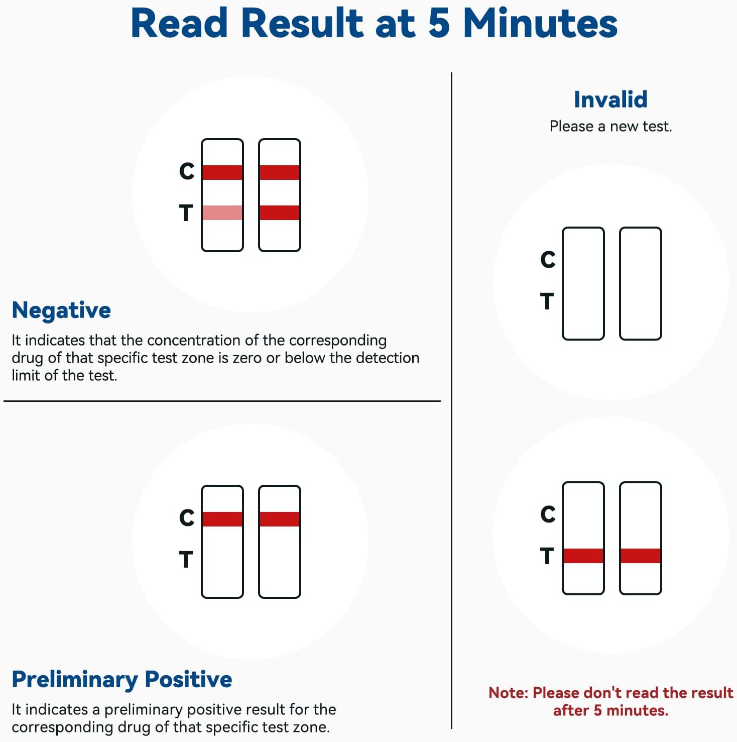 【Rezultate rapide test multi-droguri】 Testele noastre de droguri sunt utilizate pentru a testa cocaina, opiacee, amfetamine, canabis, metamfetamină, oxicodonă, fenciclidină în doar cinci minute. 【Ușor de utilizat】 Colectați lichidul oral timp de aproximativ 3 minute, până când indicatorul devine roșu. Închideți ferm capacul cubului în timp ce comprimați colectorul. Așteptați 5 minute și apoi citiți rezultatele. Nu este nevoie de programare. 【Ușor de citit】 Testați 7 medicamente diferite simultan. Este negativ dacă apar două linii și este pozitiv dacă apare doar linia de control. Notă: O linie de test foarte slabă înseamnă totuși un rezultat negativ. Nu citiți rezultatele după 5 minute. 【Test salivar profesional pentru droguri】 Kitul nostru de testare a drogurilor are o precizie de peste 99%. Perfect pentru testarea drogurilor la domiciliu, testarea drogurilor la locul de muncă, testarea drogurilor la școală/universitate și centrele de reabilitare a abuzului de droguri. 【Sigur și steril】 Testul nostru rapid de droguri 7-în-1 este ambalat individual într-un pachet de folie sigur și steril pentru a menține eficacitatea și a preveni contaminarea. Cu instrucțiuni de utilizare simple (posibil nu în limba română). Pentru orice probleme, vă rugăm să ne contactați.