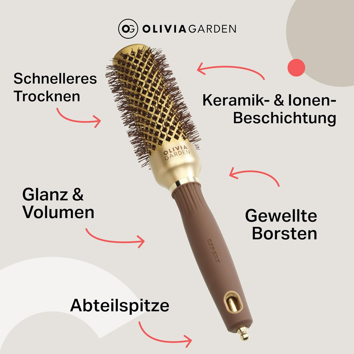 Perie rotunda antistatica ceramica Olivia Garden Expert Blowout Shine – Auriu & Maro - 35, pentru coafuri stralucitoare si fara electrizare.