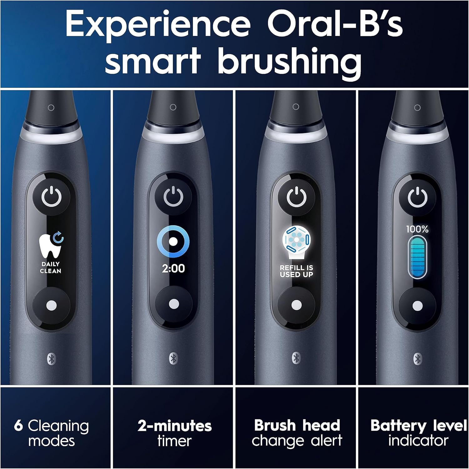 Cu Oral-B iO 8, obții o igienă orală superioară, ghidare detaliată și o curățare inteligentă, adaptată nevoilor tale – totul într-un design modern și elegant.