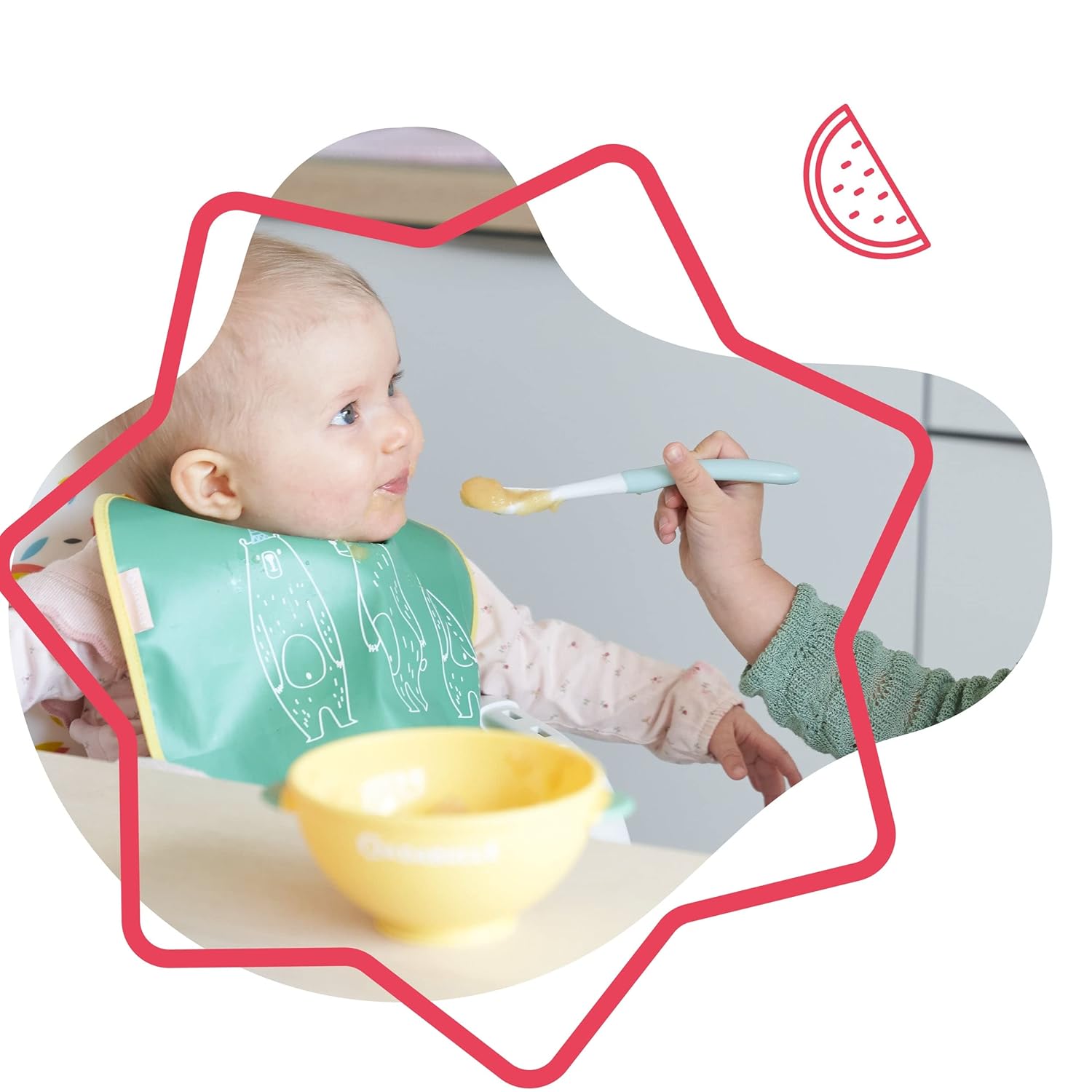 Alege setul Badabulle Funcolor cu 5 boluri și 3 linguri – combinația perfectă de siguranță, funcționalitate și culoare pentru mesele bebelușului tău.