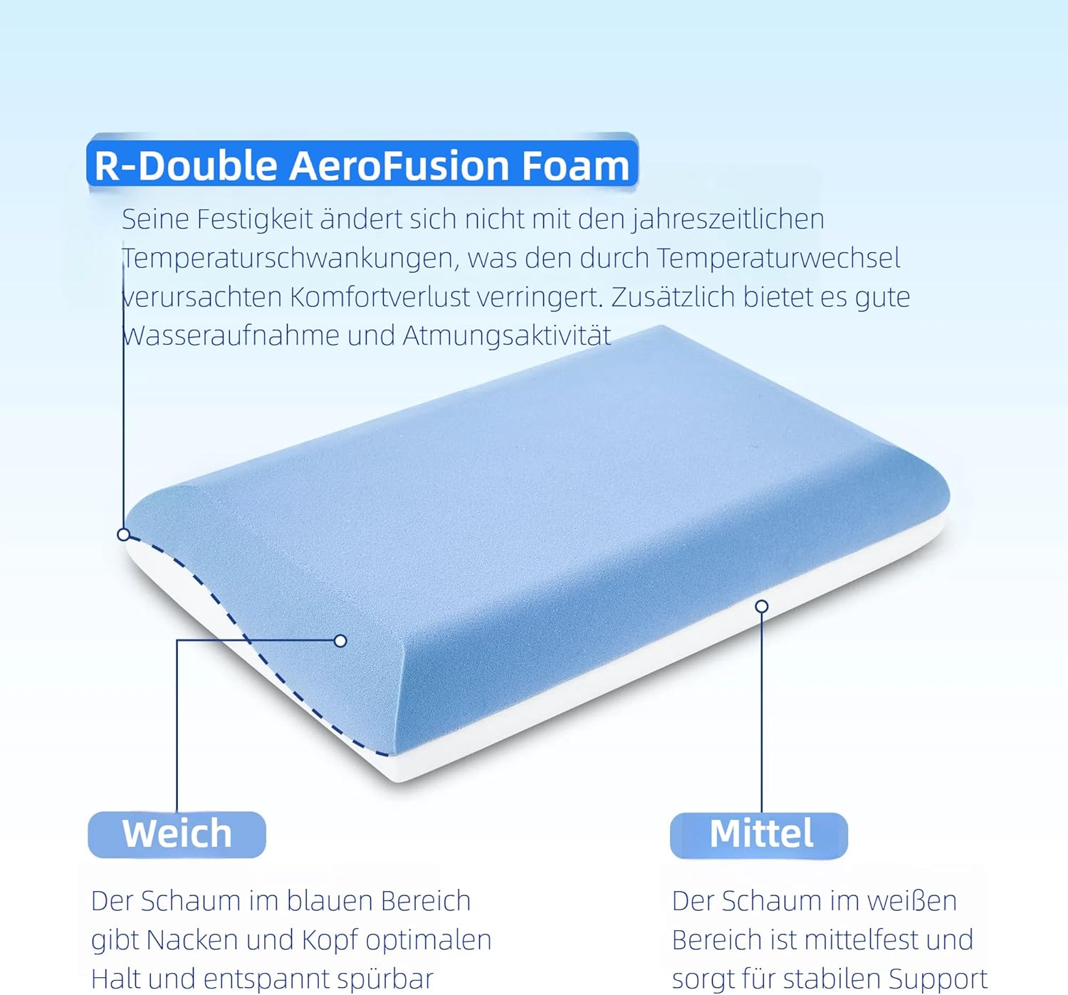 • Design cu două fețe: partea albă moale pentru confort, partea albastră mai fermă pentru suport adecvat.