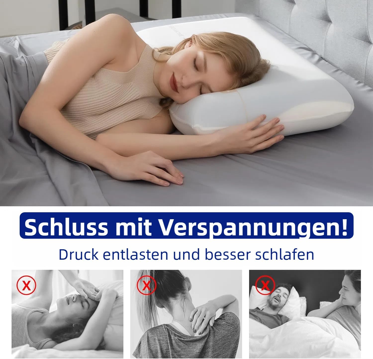 • Îmbunătățește calitatea somnului și reduce insomnia cauzată de perne nepotrivite.