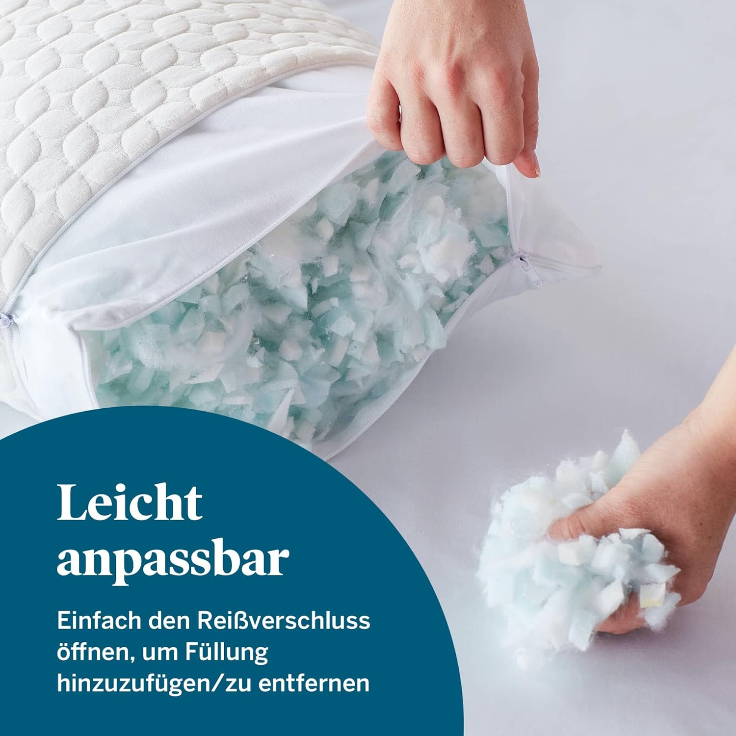 Pernă hibridă din spumă și fibră mărunțită, 80x80