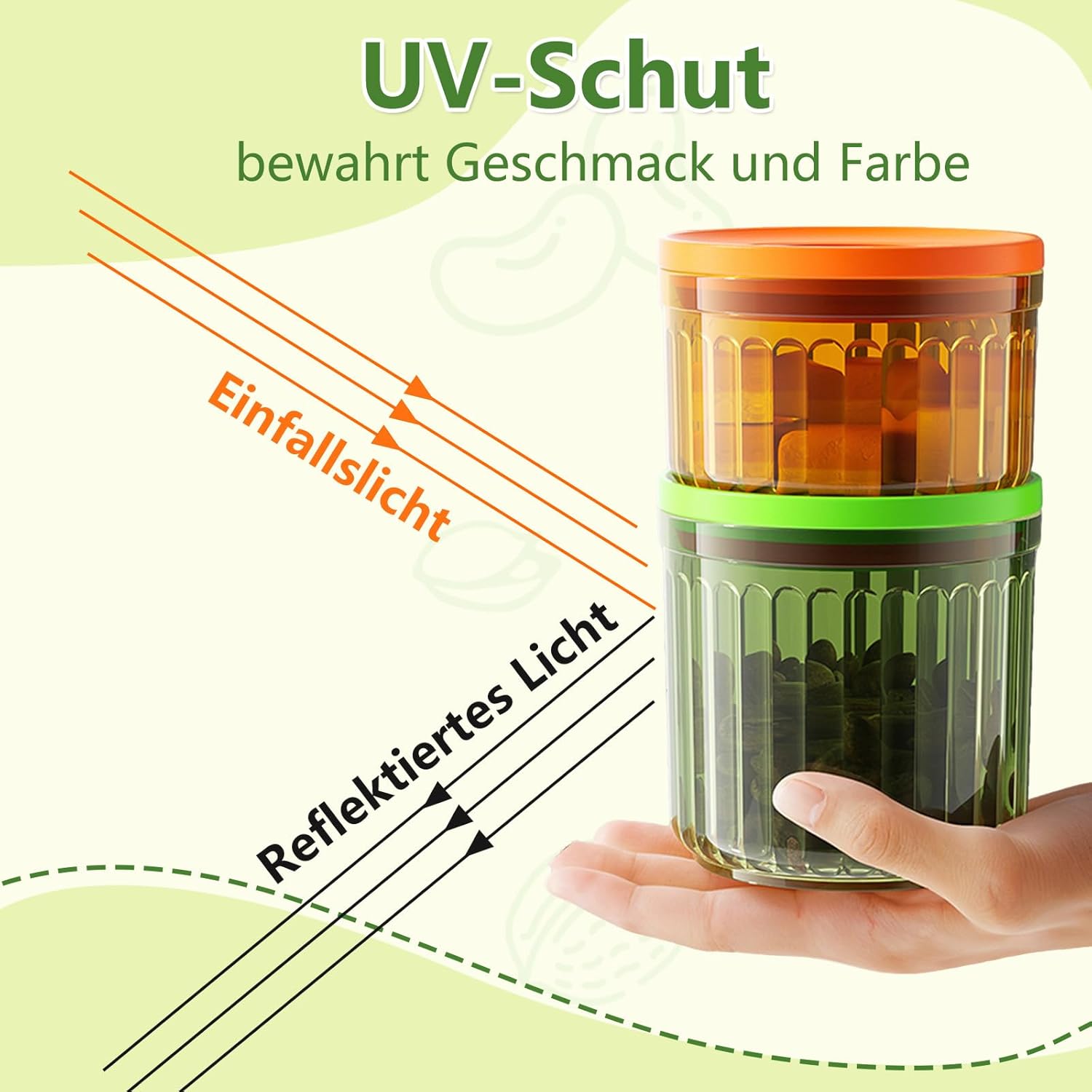Protecție împotriva luminii pentru prospețime mai lungă Capacul opac protejează împotriva efectelor nocive ale luminii și păstrează culoarea, aroma și substanțele nutritive ale alimentelor.