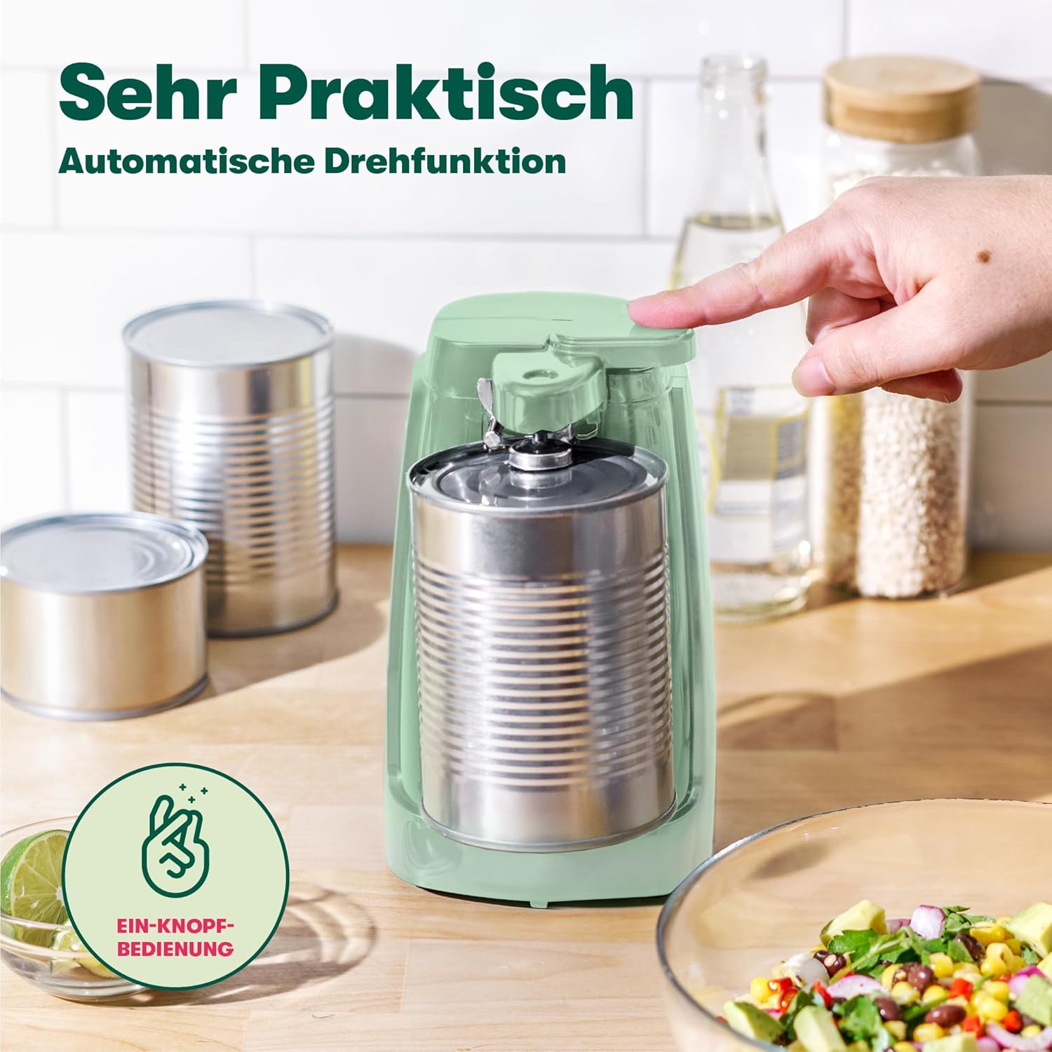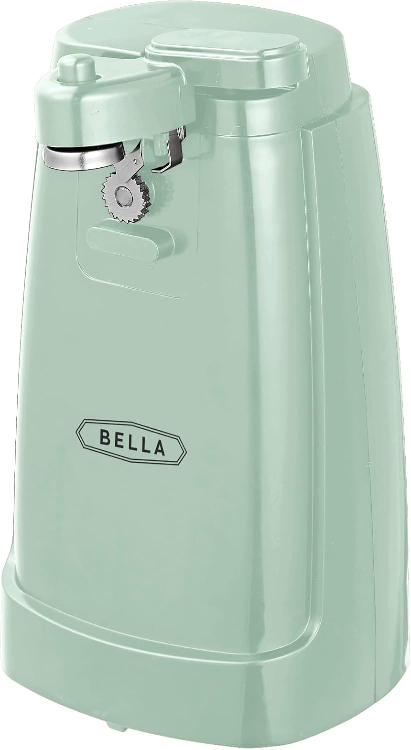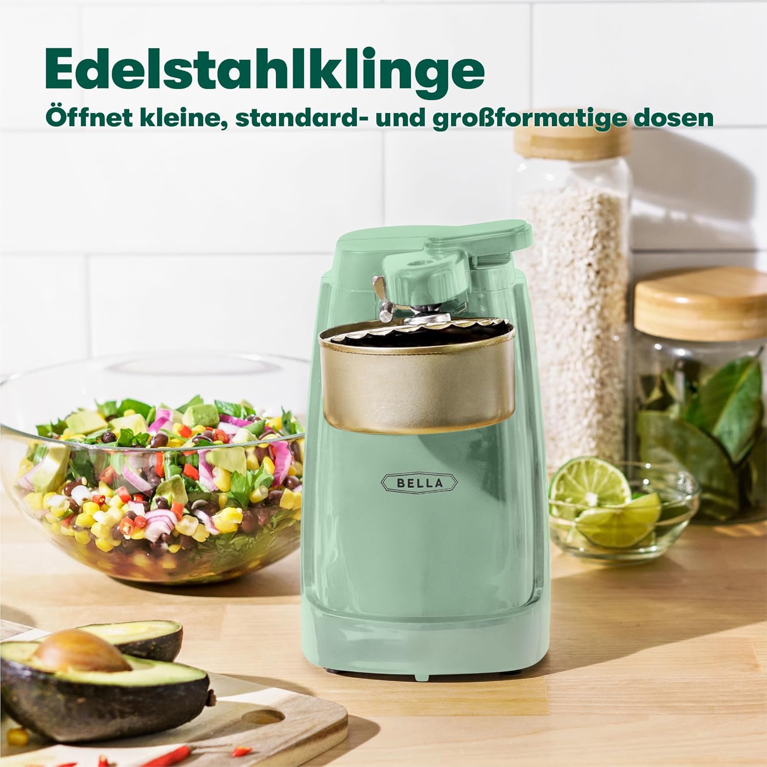 Despre acest produs: Deschizător electric de conserve și ascuțitor de cuțite Bella, deschizător multifuncțional de borcane și sticle, cu pârghie de tăiere detașabilă și spațiu de depozitare a cablului, lamă din oțel inoxidabil, verde salvie.