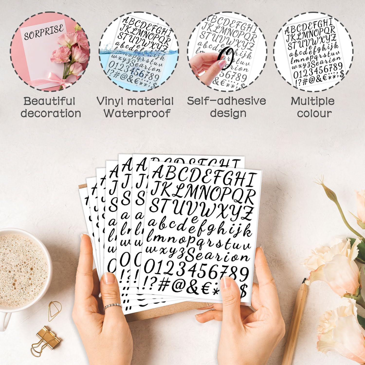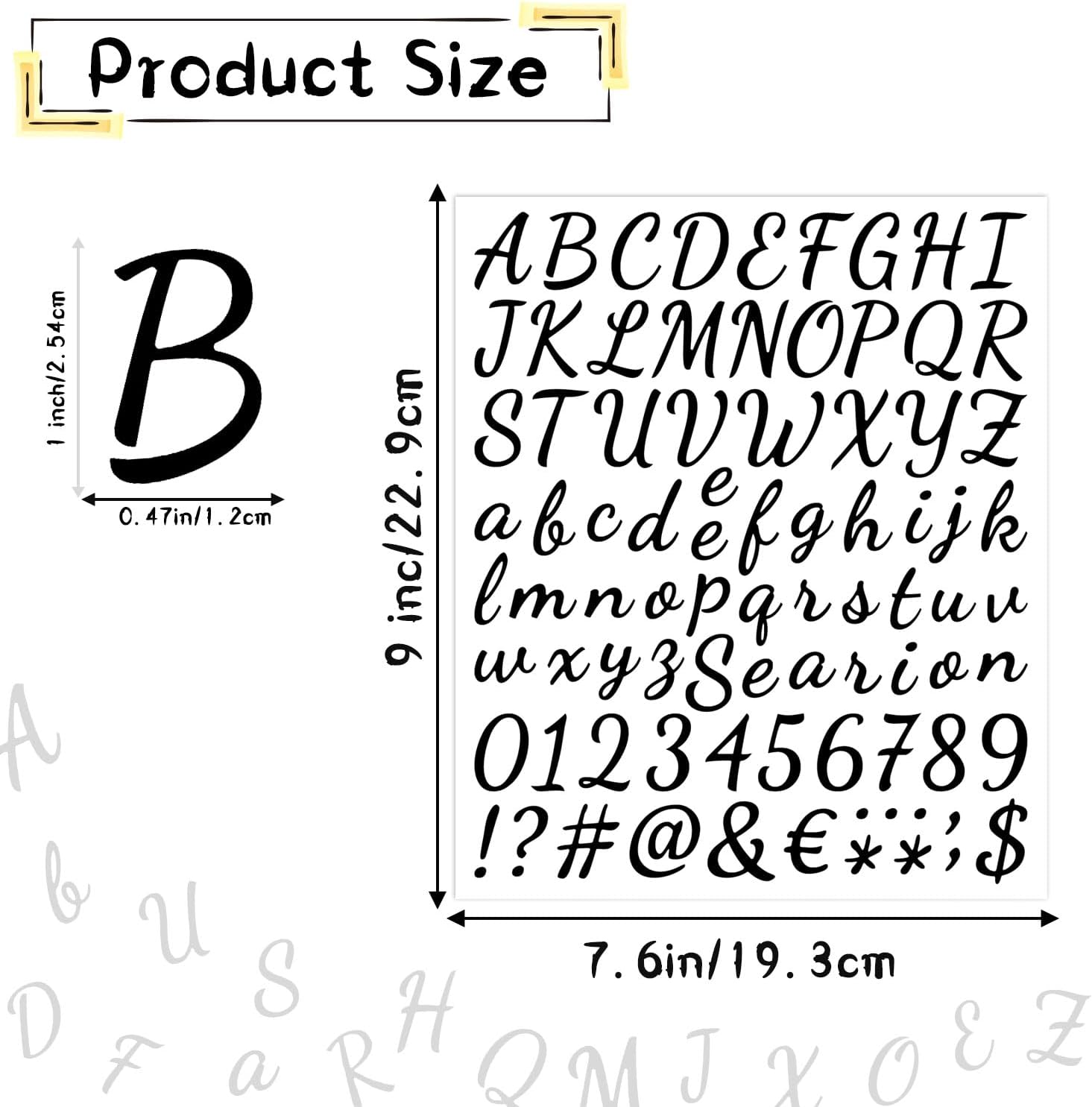 Informații despre acest articol [Inclus în livrare]: Veți primi 10 foi de abțibilduri cu litere și fiecare abțibild conține litere majuscule, litere minuscule, cifre și semne de punctuație. [Design multielement]: Aceste autocolante alfanumerice sunt proiectate cu fonturi scrise de mână care conțin litere, stiluri de numere și semne de punctuație, complete și individuale, le puteți alege și combina după cum este necesar pentru a crea simboluri sau cuvinte semnificative. [Pur și simplu dezlipiți și lipiți]: Aceste autocolante cu litere și numere au un design autoadeziv. Nu aveți nevoie de lipici pentru a le lipi, deoarece acestea pot adera la multe suprafețe diferite. Pur și simplu dezlipiți literele de care aveți nevoie și lipiți-le pe suprafețele dorite. [Gamă largă de aplicații]: Acest set de autocolante cu litere autoadezive poate fi un decor excelent pentru multe obiecte. De asemenea, le puteți utiliza pe albumele de amintiri, felicitări, plicuri, telefoane mobile, etichete cadou pentru proiectele de artizanat ale copiilor sau cutii cadou. [Material premium]: Fabricat din vinil de încredere, aceste autocolante cu litere sunt impermeabile și rezistente la intemperii, durabile pentru utilizarea în aer liber, fiabile și potrivite pentru diverse aplicații de interior și exterior.
