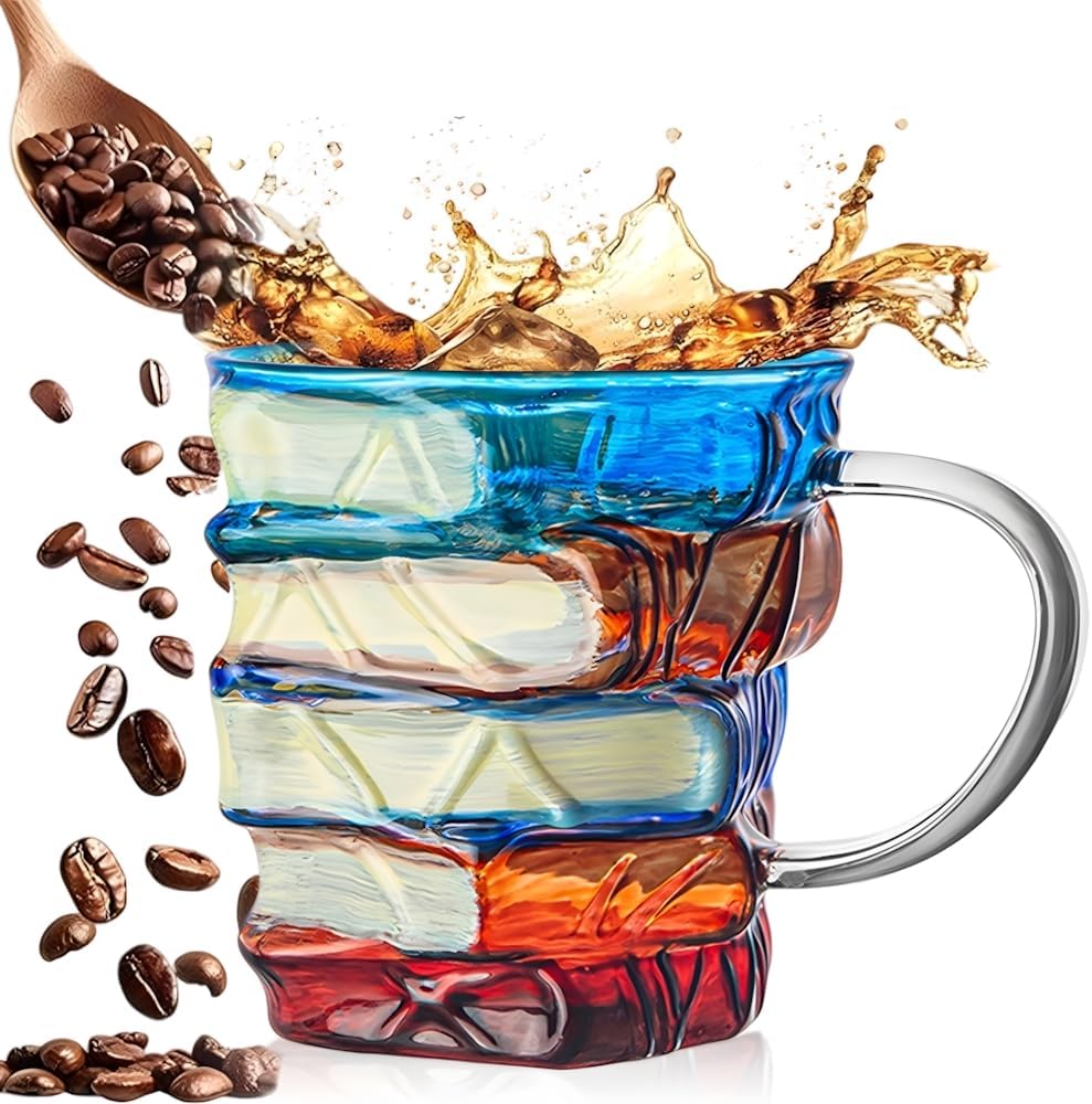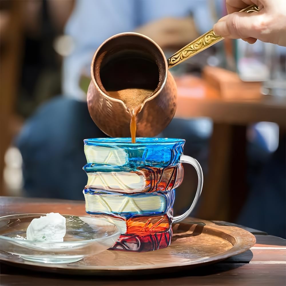 🎁【Cadou grijuliu pentru educatori】Cani de cafea cu stivă de cărți Cu farmecul său artistic ritualic și fascinantul său farmec zilnic, această cană va fi o alegere excelentă pentru profesori, bibliotecari și cititori pasionați care caută utilități creative.