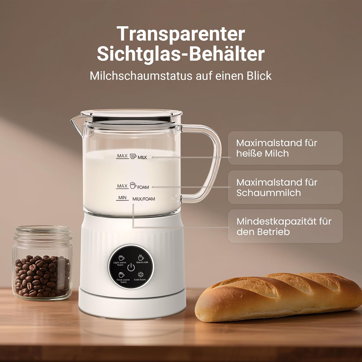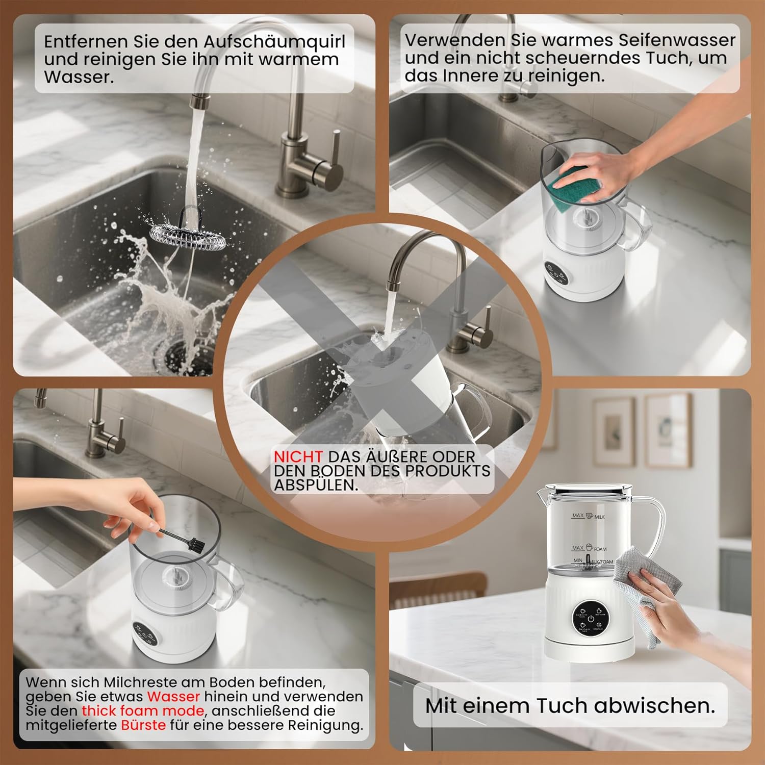 Despre acest articol Multifuncțional 4 în 1: Creați spumă de lapte rece, spumă caldă cremoasă, spumă caldă ușoară sau lapte pur și simplu încălzit pentru diferite variante de cafea și băuturi Funcționare tactilă și ulcior transparent: Funcționare ușoară cu butoane tactile și urmăriți procesul de spumare a laptelui prin ulciorul transparent cu scală de măsurare pentru rezultate precise Capacitate mare: Încălziți până la 400 ml de lapte sau faceți spumă până la 160 ml (minim 80 ml), potrivit pentru prepararea latte macchiato, cappuccino și ciocolată caldă Încălzire uniformă și formare de spumă: Spumatorul electric de lapte încălzește laptele la 60°C-70°C, în timp ce modul de spumă rece produce spumă de lapte cremoasă și stabilă fără încălzire Optimizat pentru lapte integral: Rezultate mai bune cu lapte integral proaspăt (min. 3% grăsime, 5% proteine sau 3,2g/100ml), răcit la 5°C-10°C pentru o spumă consistentă; Ușor de curățat manual; În comparație cu spumatoarele de lapte manuale tradiționale, spumatorul de lapte automat Casimhu permite pregătirea fără efort a spumei de lapte sau a laptelui cald Alte detalii despre produs