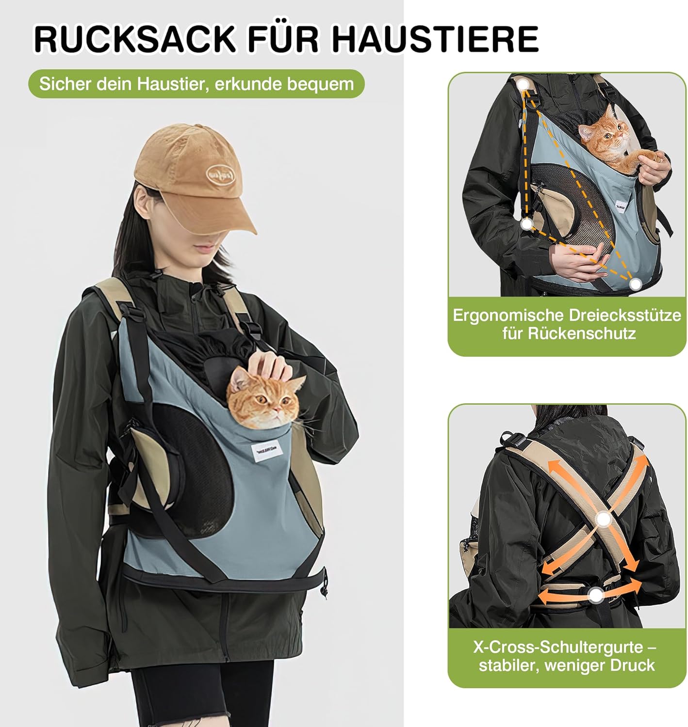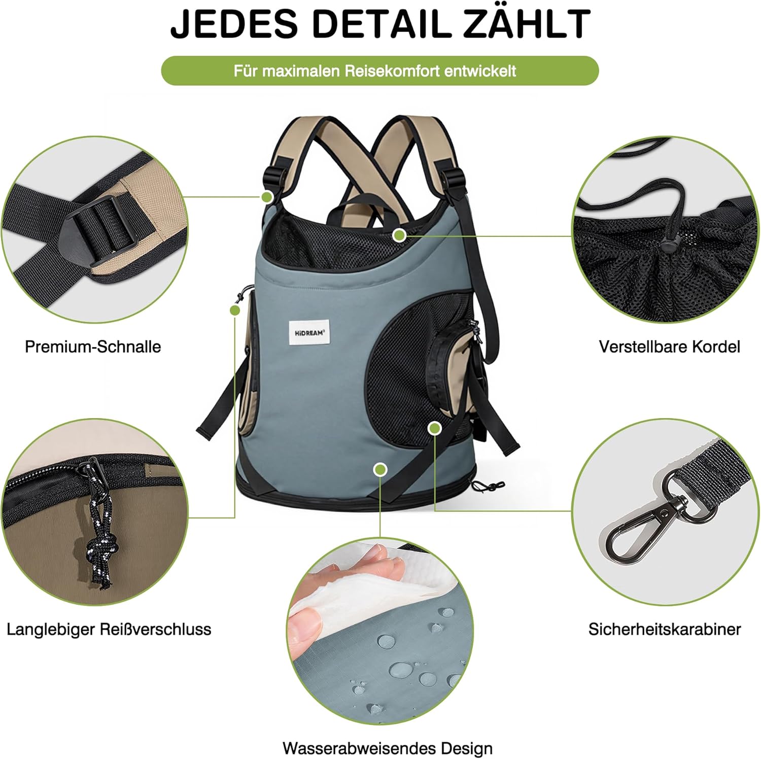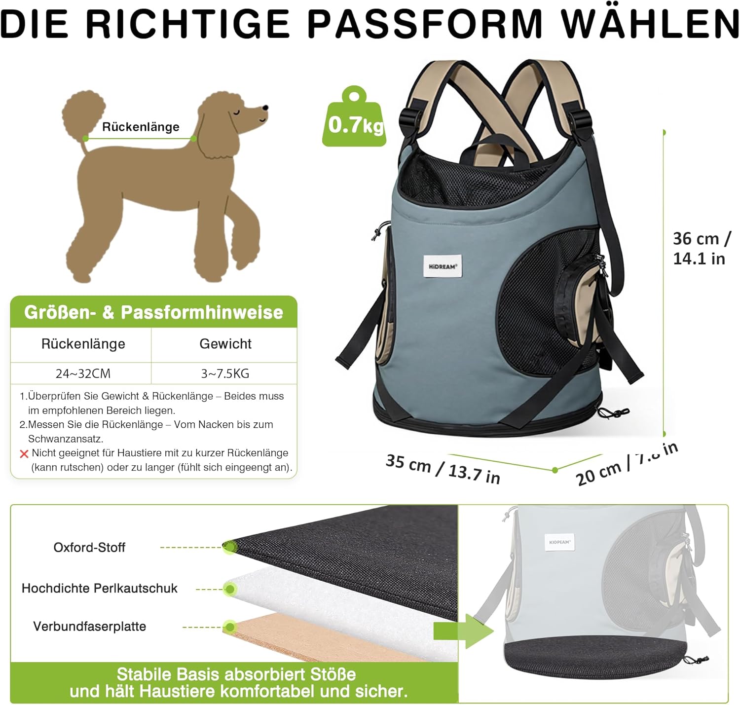 Informații despre acest articol Domeniul de aplicare: Vă rugăm să verificați diagrama de dimensiuni (imaginea 5) înainte de cumpărare. Rucsacul nostru pentru animale de companie este ideal pentru rase precum Chihuahua, Miniature Spitz, Yorkshire Terrier, Maltese, Shih Tzu, Bichon și pisici de dimensiuni similare. Nu este potrivit pentru animalele de companie cu o înălțime foarte mică a scaunului (nu își pot scoate capul) sau cu un spate mai lung decât cel recomandat (poate părea înghesuit). Saci de transport pentru câini mici: Curelele reglabile pentru umăr și piept asigură o potrivire personalizată și o distribuție uniformă a greutății. Baza spațioasă oferă spațiu pentru o pătură - ideală pentru căldură iarna sau pentru ieșiri relaxate. Durabil și practic: rucsacul nostru pentru câini este fabricat din țesătură de nylon de înaltă calitate și este rezistent la uzură, abraziune și zgârieturi - perfect pentru aventurile în aer liber. Două buzunare laterale oferă spațiu pentru dulciuri, jucării și pungi pentru caca. Ventilație și vizibilitate: Geanta noastră de transport pentru pisici are o deschidere superioară practică cu cordon pentru o ajustare ușoară. Ferestrele din plasă de pe ambele părți oferă lumină, circulație a aerului și previn acumularea de căldură - menținându-vă animalul răcoros și confortabil. Siguranță și confort: rucsacul nostru de călătorie pentru pisici are un ham de siguranță integrat pentru a vă menține animalul în siguranță în interior. Fermoarele reflectorizante cresc vizibilitatea pe timp de noapte, iar designul ergonomic reduce oboseala în timpul plimbărilor lungi sau activităților în aer liber. Alte detalii despre produs