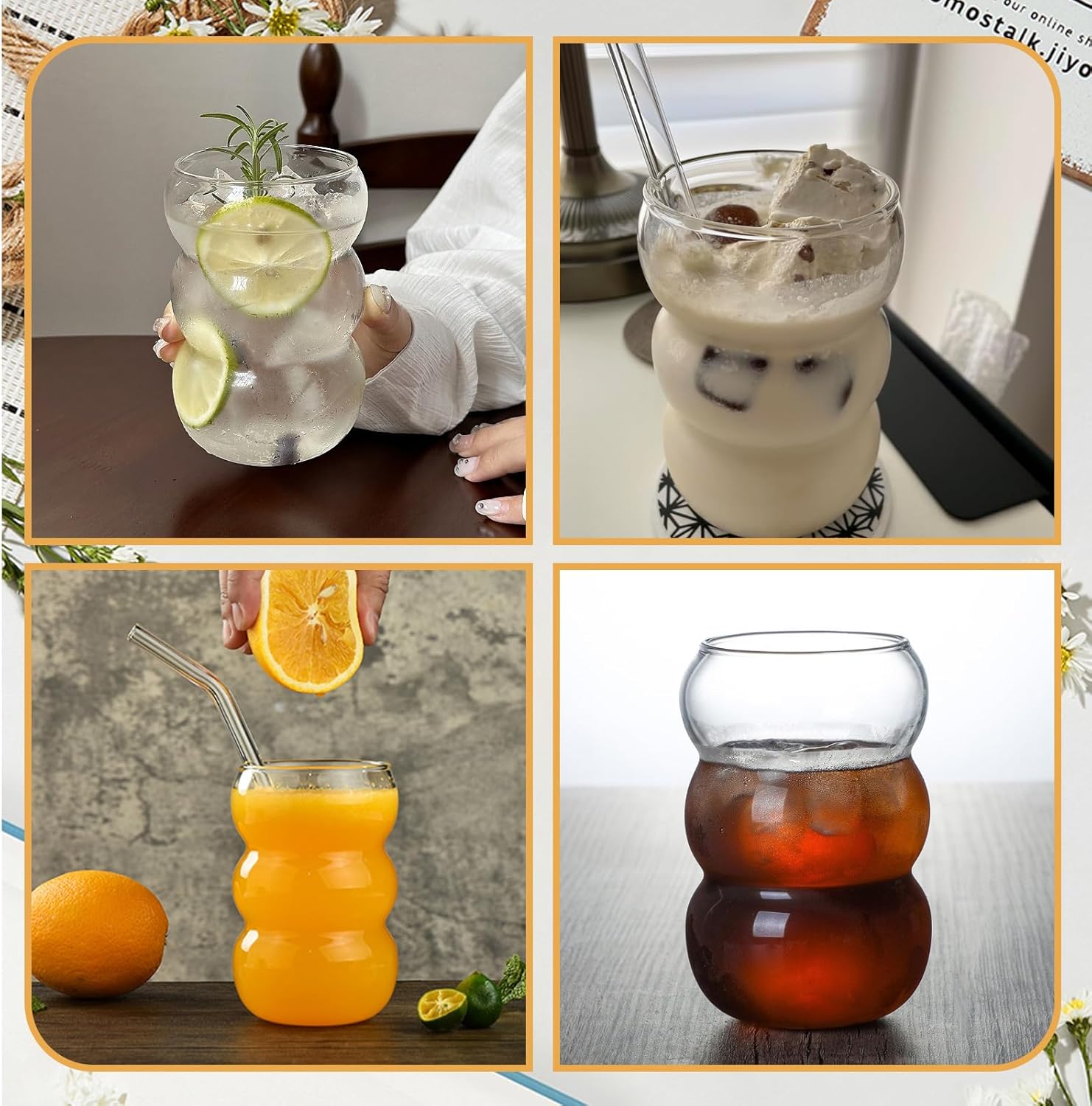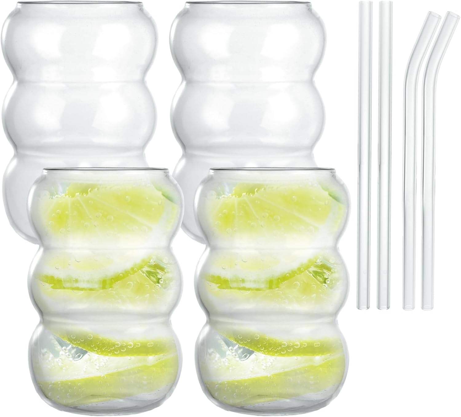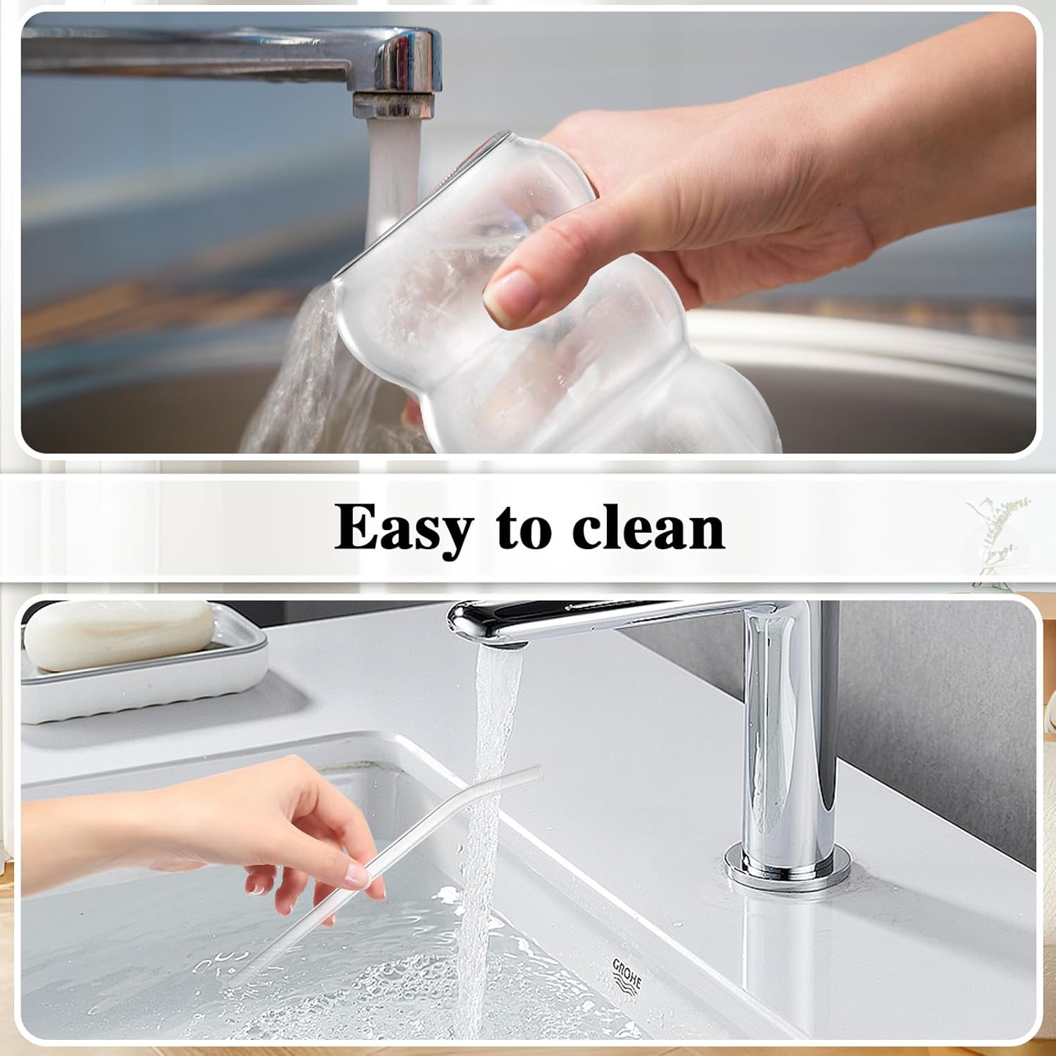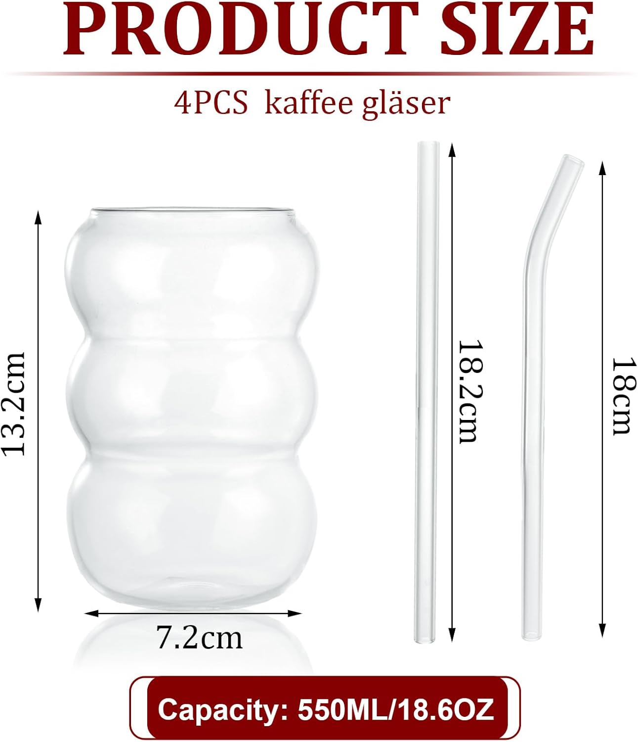 [Pachetul include] Veți primi 4 pahare de 550 ML, 4 paie de sticlă (2 drepte, 2 curbate) și 1 perie de curățat paie. Satisfaceți-vă nevoile zilnice.