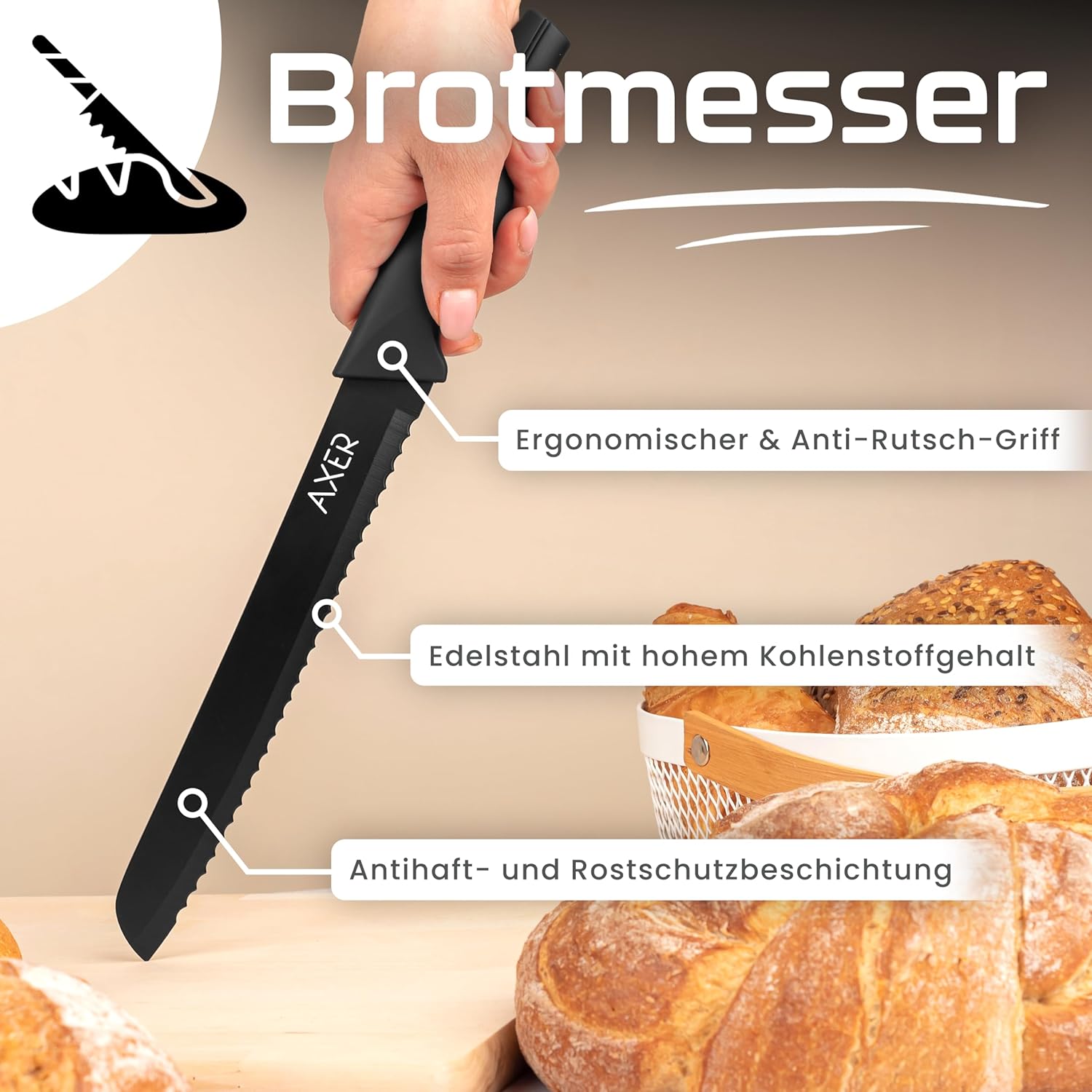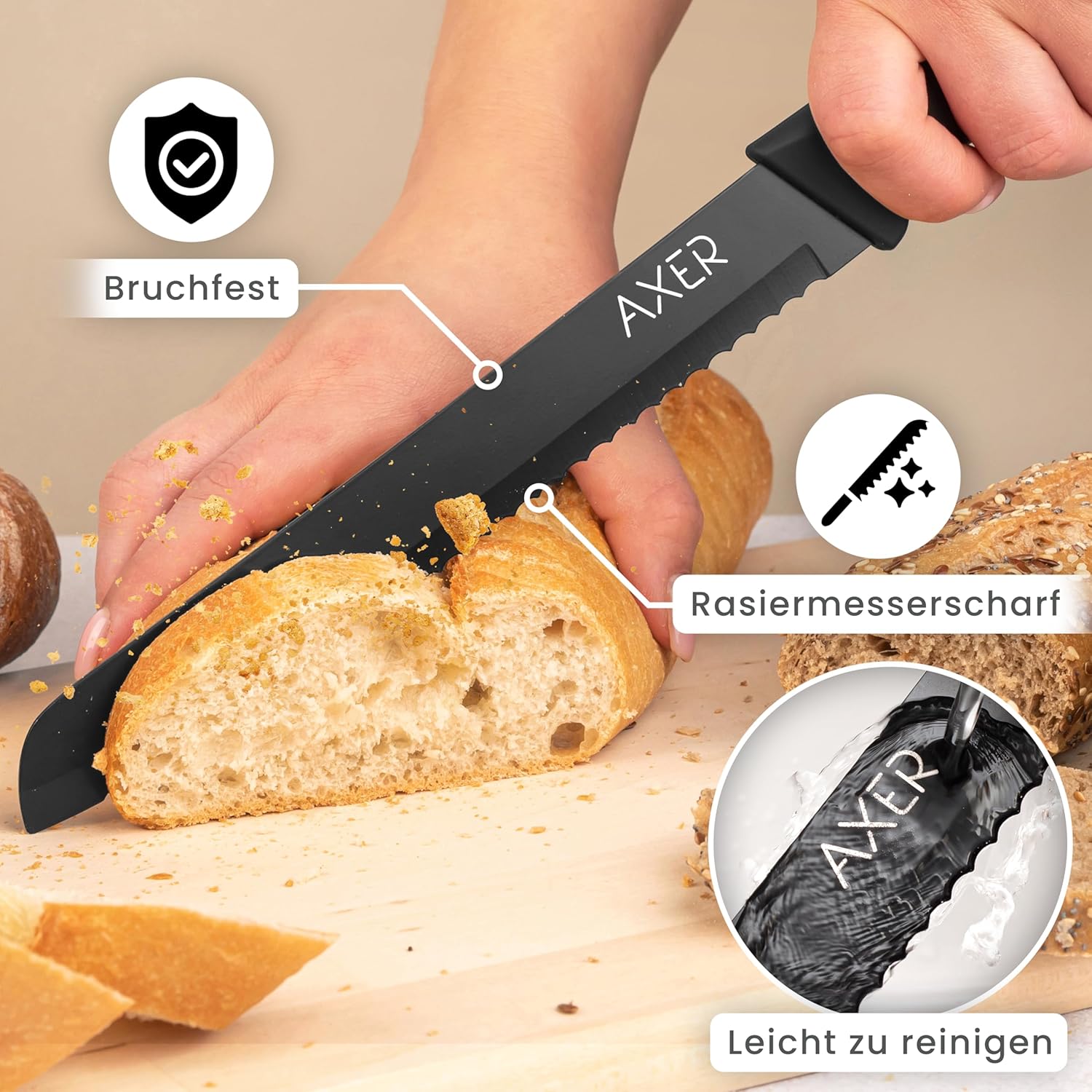 Cuțitul de pâine Axer este un accesoriu esențial pentru orice bucătărie, oferind combinația perfectă între performanță, siguranță și stil.
