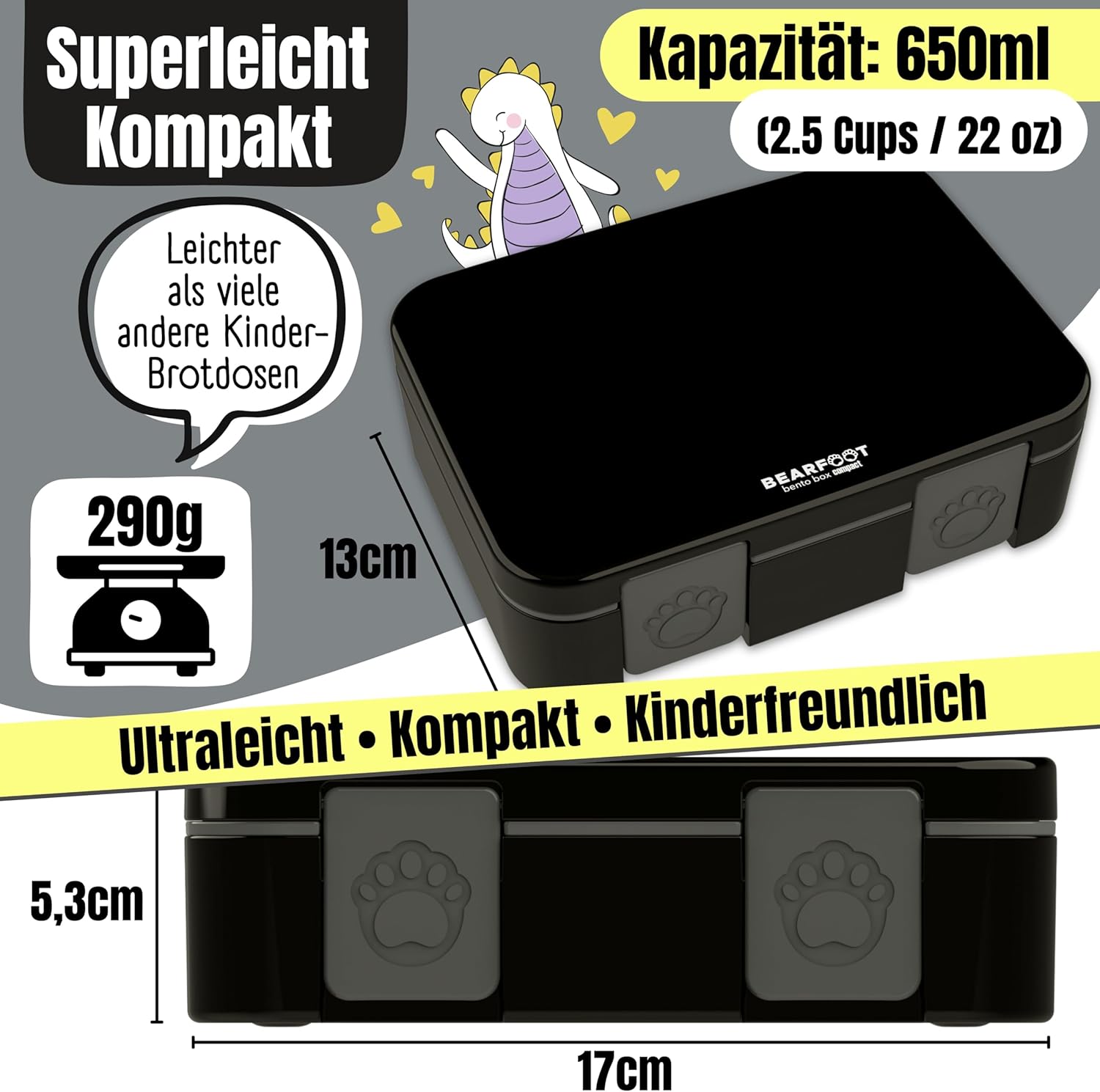 [RESIGILAT] Cutie pranz copii Bearfoot compact 650ml negru