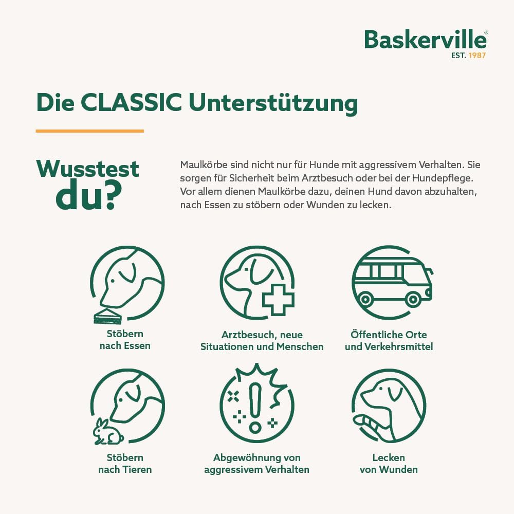 Despre acest articol ADECVAT PENTRU UTILIZARE ZILNICĂ: Botul Baskerville Classic Design DOG-FRIENDLY pentru MERSUL liber (în timpul stresului și căldurii) și BEBUT. PENTRU MERSUL ZILEI și purtarea prelungită (cu dimensiunea potrivită a coșului). UTILIZARE VERSATILIZATĂ: Botnița asigură siguranța în multe situații noi sau stresante pentru câinele dvs. - vizite la veterinar sau la coafor, transport public sau întâlniri cu oameni noi. PREVINE STUMBLAREA: Botnițele sunt folosite 25% din timp pentru a preveni STUMBLAREA după ALIMENTE și ANIMALE și mâncatul pietrelor și fecalelor. Această botniță are o grilă suplimentară special pentru acest scop. ADECVATĂ PENTRU ANTRENAREA COMPORTAMENTULUI AGRESIV: Antrenați-vă câinele cu Baskerville dacă reacționează agresiv la oameni și câini. Cel mai bun mod de a face acest lucru este să eliminați grila suplimentară pentru acordarea de RECOMPENSE. MATERIAL NOU AMELIORAT PENTRU MAI MULT CONFORT ȘI FORȚĂ: Materialul inovator este de 4 ori mai robust decât plasticul. Acest lucru face ca botul clasic să fie FIDEL ÎNTRE BEIẞEN. Cu cataramă ușor de blocat pe cureaua de gât. Alte detalii despre produs