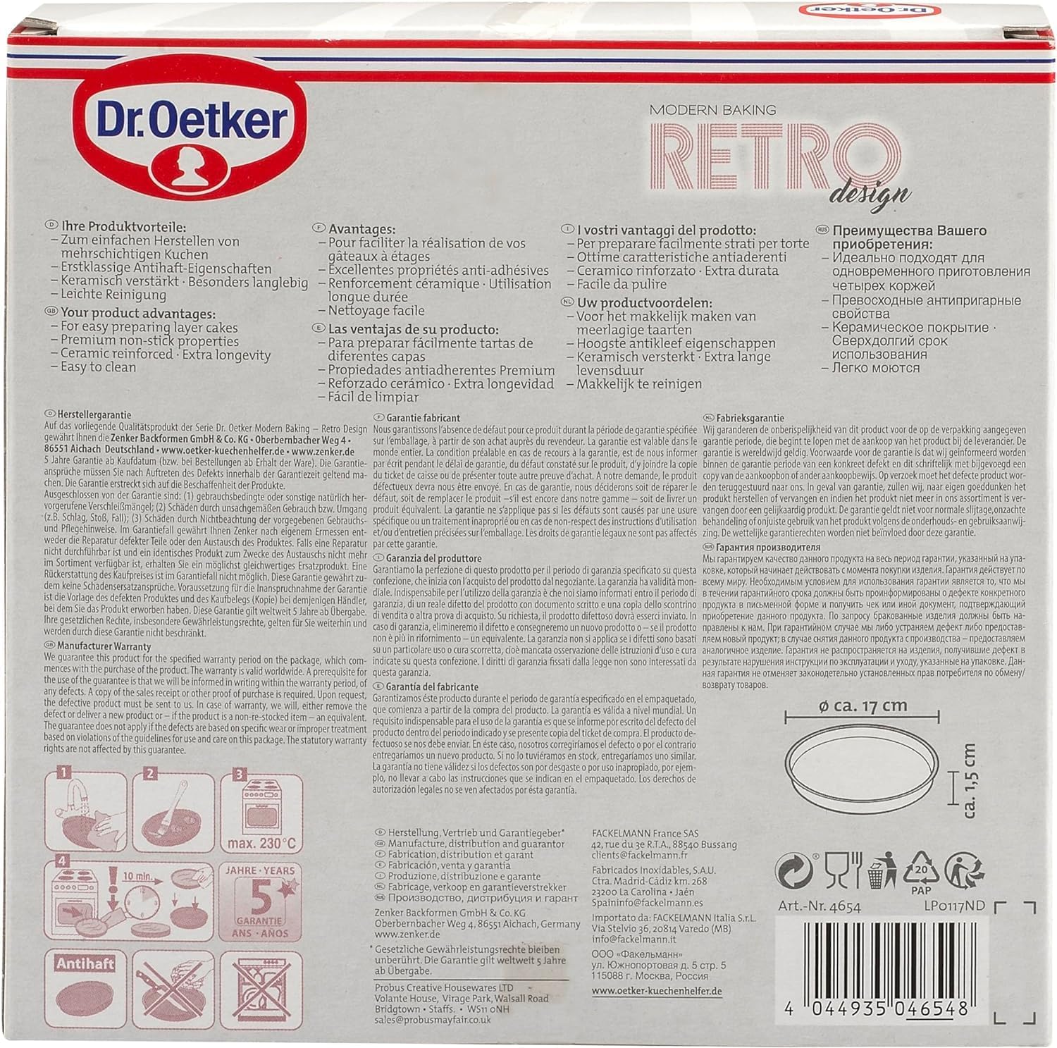 Informații despre acest articol Pentru iubitorii de nostalgie: formele rotunde de tort se caracterizează prin stratul lor antiaderent de înaltă calitate, ranforsat ceramic. Domeniul de livrare: 4 x forme de copt pentru torturi stratificate (aprox. 17 x 1,5 x 17 cm) - de cea mai bună calitate de la Dr. Oetker. Rezultat: Tabla neagră rafinată asigură cele mai bune rezultate de coacere printr-o conductibilitate termică excelentă și o rumenire uniformă a tortului – rezistentă la căldură până la +230° grade. Material: Formele de copt pentru torturi stratificate sunt fabricate din oțel și sunt prevăzute cu un strat antiaderent bicolor, ranforsat ceramic – pentru o desprindere ușoară a torturilor din formă. Calitate premium: Fabricat în Germania, garanție de 5 ani de la producător (Condițiile de garanție le găsiți sub "Ghiduri și documente de produs". Drepturile dumneavoastră legale de garanție rămân neafectate). Detalii suplimentare despre produs.
