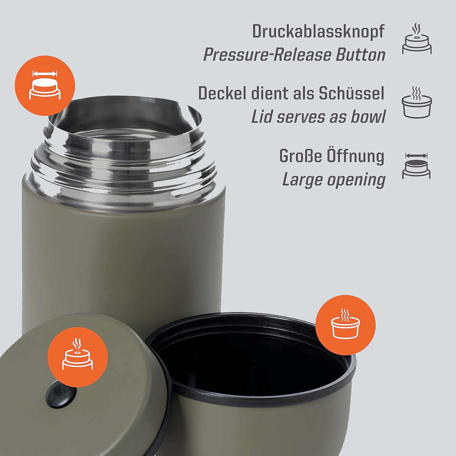 Informații despre acest articol Mâncare caldă sau rece - Ideal pentru muesli, salată, supă sau terci. Recipientul pentru alimente menține mâncarea caldă caldă pentru mai mult timp și mâncarea rece rece pentru mai mult timp datorită tehnologiei fiabile de izolare. Tovarășul perfect în oraș și în aer liber. FĂRĂ SCURGERI - Capacul este 100% rezistent la scurgeri și are, de asemenea, un buton integrat de eliberare a presiunii. Acest lucru înseamnă că recipientul poate fi deschis cu ușurință în orice moment. AVANTAJE PRACTICE - Datorită deschiderii mari, recipientul pentru alimente este foarte ușor de umplut și curățat. Textura rugoasă a suprafeței asigură o prindere bună chiar și cu mâinile ude. SELECȚIE LARGĂ - Ideale pentru apetiturile mari și mici, în interior sau în exterior. Recipientele termo CLASSIC sunt disponibile în trei dimensiuni și două culori. Ceva pentru fiecare gust. ESBIT - De peste 85 de ani, Esbit este sinonim cu produsele de înaltă calitate pentru a vă menține energici în mișcare. În plus față de produsele pentru bucătăria în aer liber, acum oferim și o gamă largă de recipiente de băut și izolate. Alte detalii despre produse