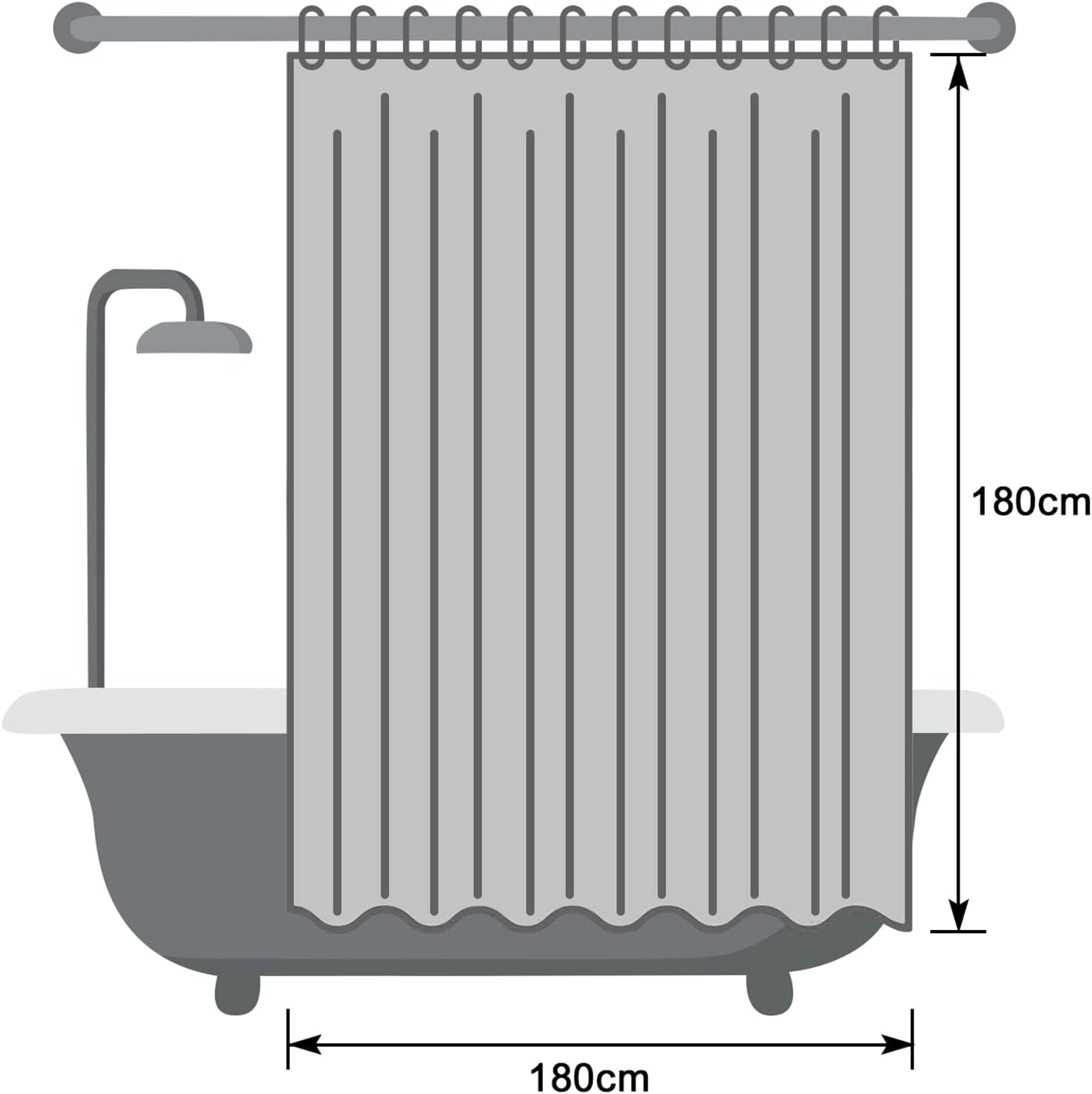 Instalare ușoară: Perdeaua de duș are dimensiunea de 180x180 cm și dispune de 12 ochiuri metalice inoxidabile în partea superioară a perdelei și 12 inele din plastic, cu ajutorul cărora puteți instala cu ușurință perdeaua de baie. Este perfectă pentru a fi potrivită pentru bare de duș drepte sau curbate. Foarte convenabilă și durabilă. Este foarte potrivită pentru familii și hoteluri.