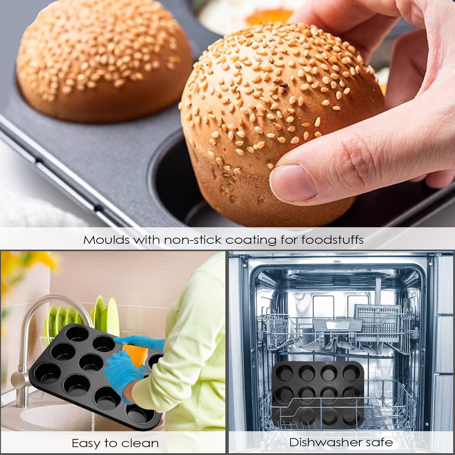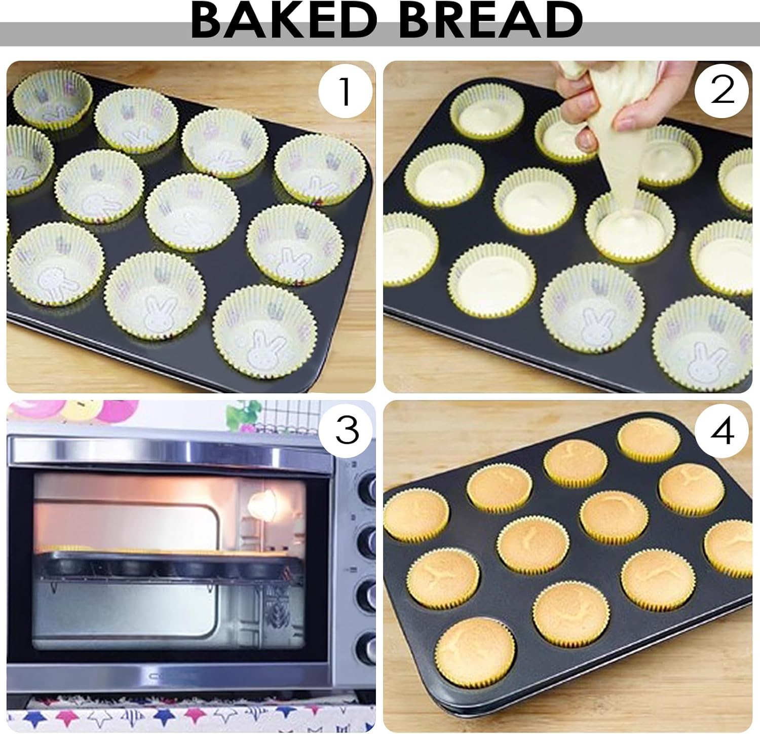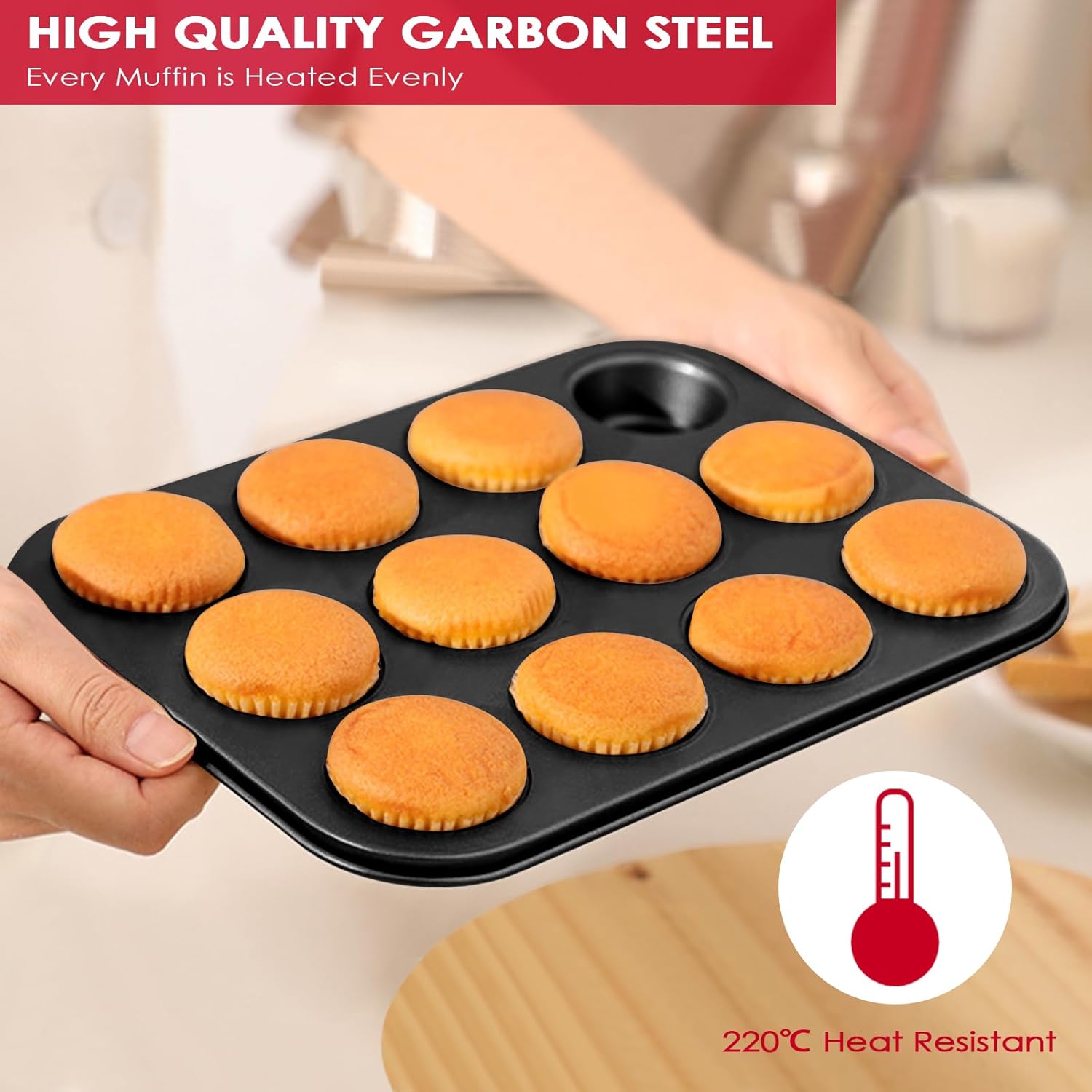 【Material de calitate alimentară】Tava pentru brioșe este fabricată din oțel carbon alimentar de înaltă calitate, durabil și rezistent la temperaturi ridicate. Datorită conductivității termice excelente, tava dintr-o singură bucată este încălzită uniform, iar rezistența la căldură este crescută până la 220 °C.