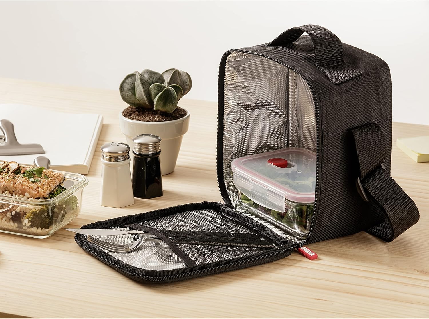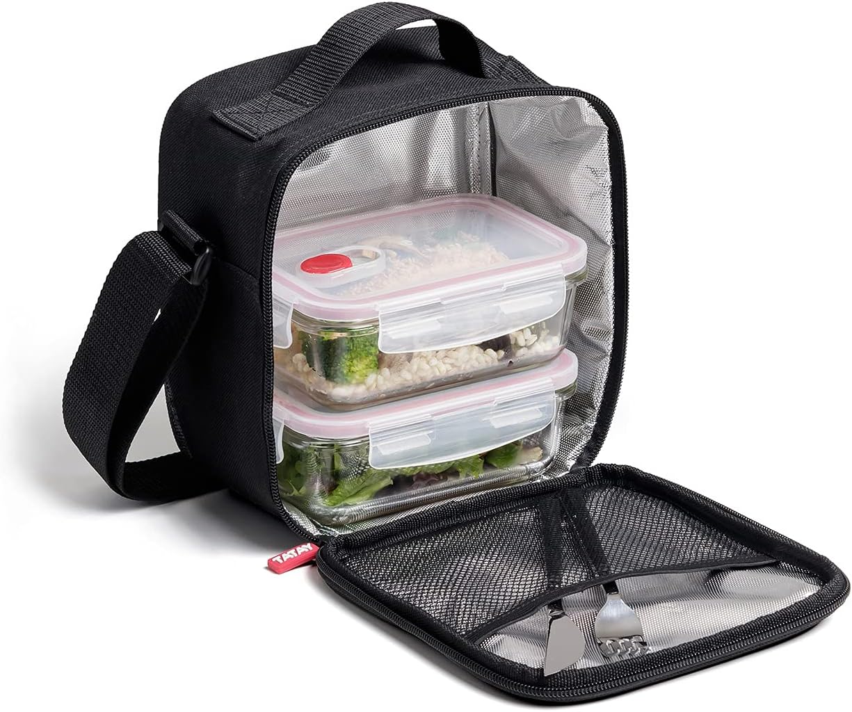 Informații despre acest articol [Dimensiuni] 22 x 12 x 21,5 cm [HERMETIC și REZISTENT] Materialul textil semi-rigid protejează împotriva impactului, în timp ce interiorul izolant ajută la o mai bună conservare a alimentelor. (INCLUDE CUTITE DE LUNCH) Include 2 cutii de prânz din sticlă borosilicată rezistentă; de la -40º în congelator la 100º în cuptorul cu microunde [PRACTIC] Are un buzunar exterior practic și o tavă interioară pentru depozitarea tacâmurilor. [DESIGNED BY TATAY] Materialele utilizate și experiența certificată TATAY garantează durabilitatea și calitatea acestui produs. Alte detalii despre produs