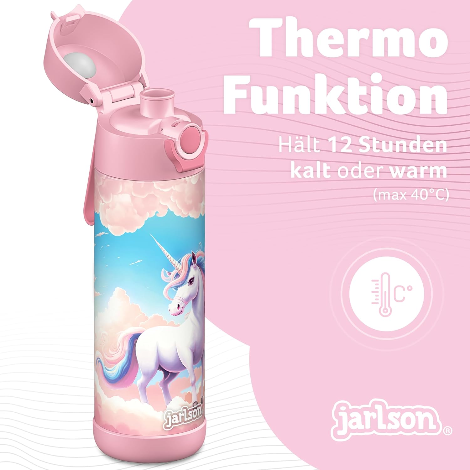 [RESIGILAT] Sticlă copii Jarlson MALI 500 ml inox, unicorn roz, pereți dubli