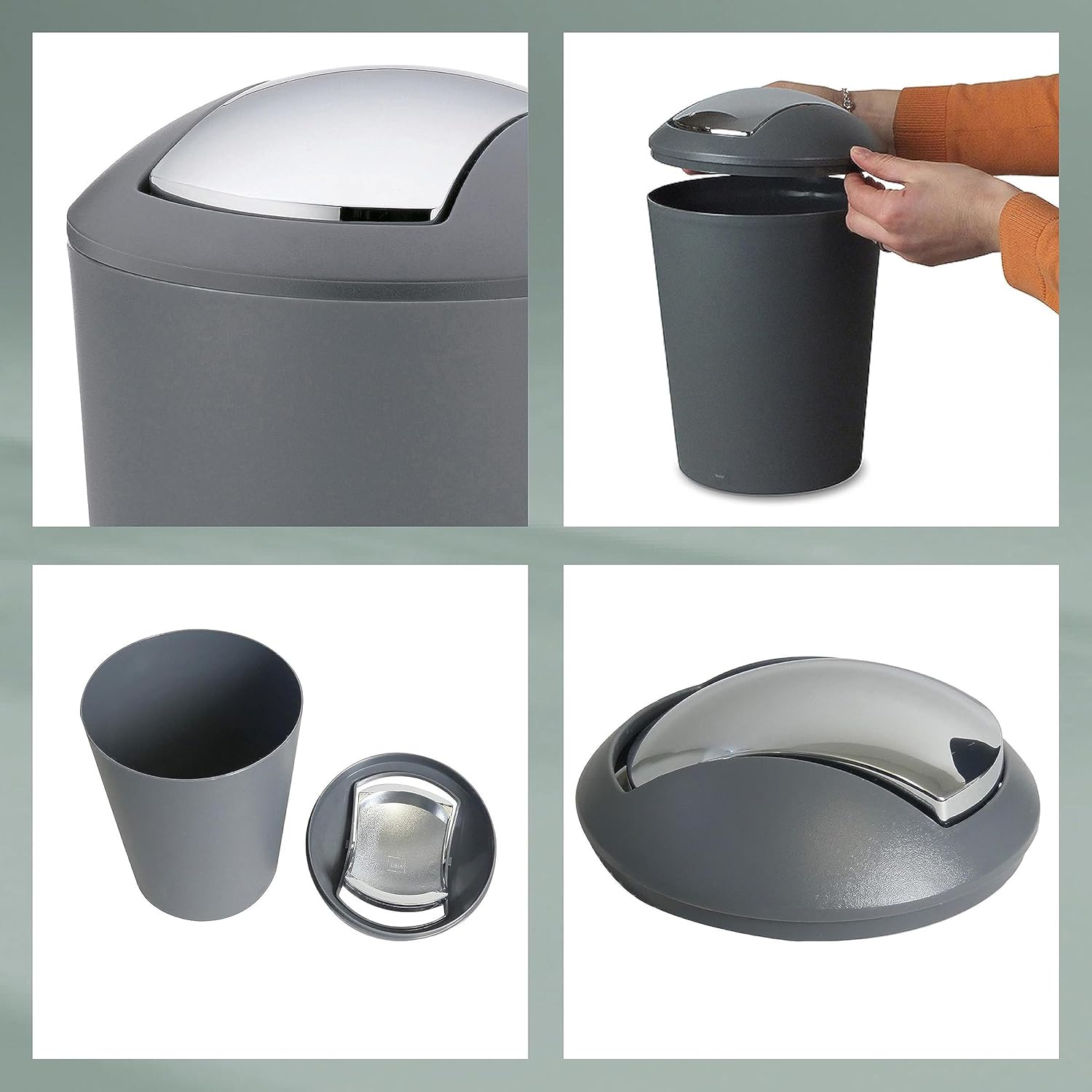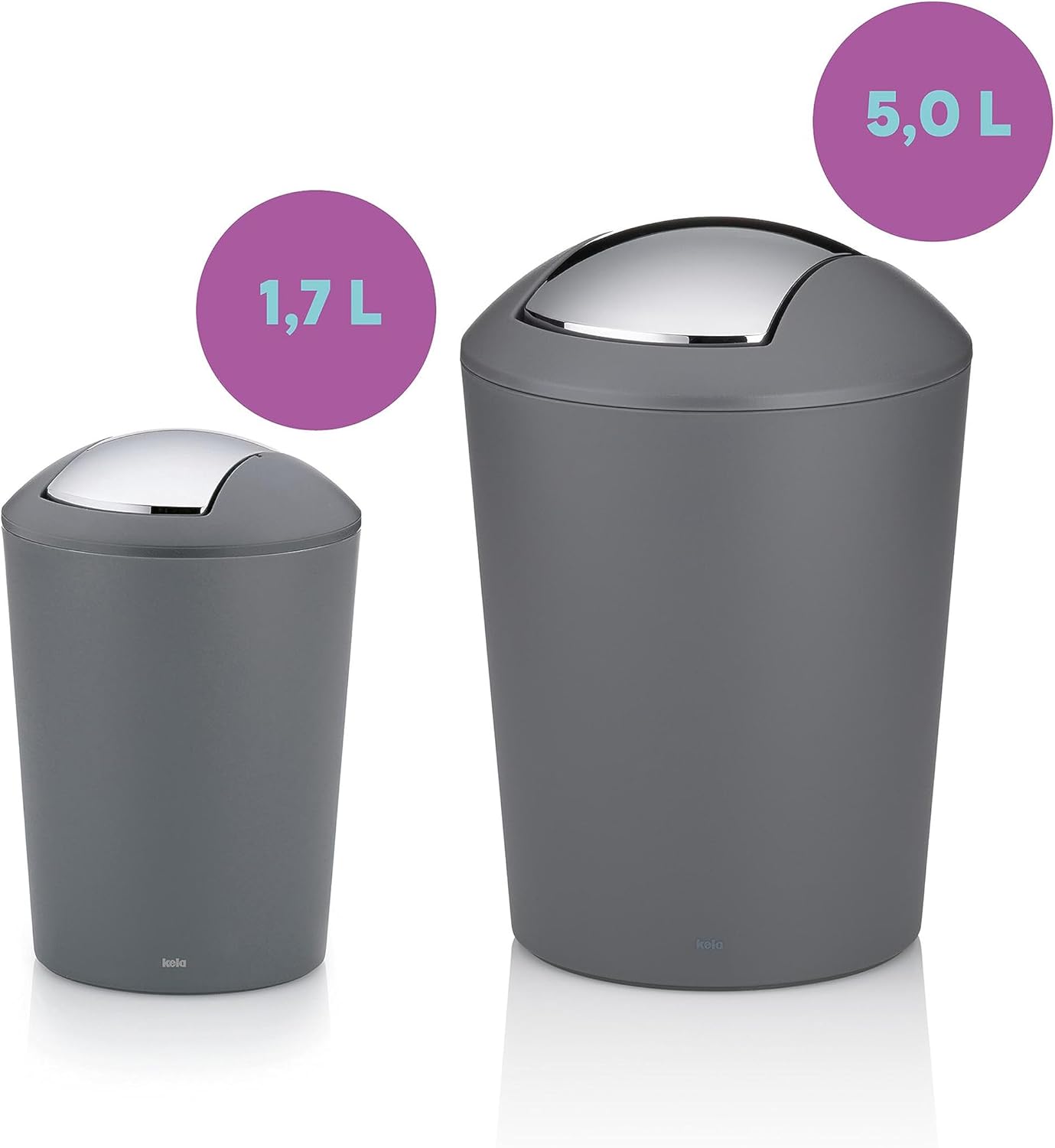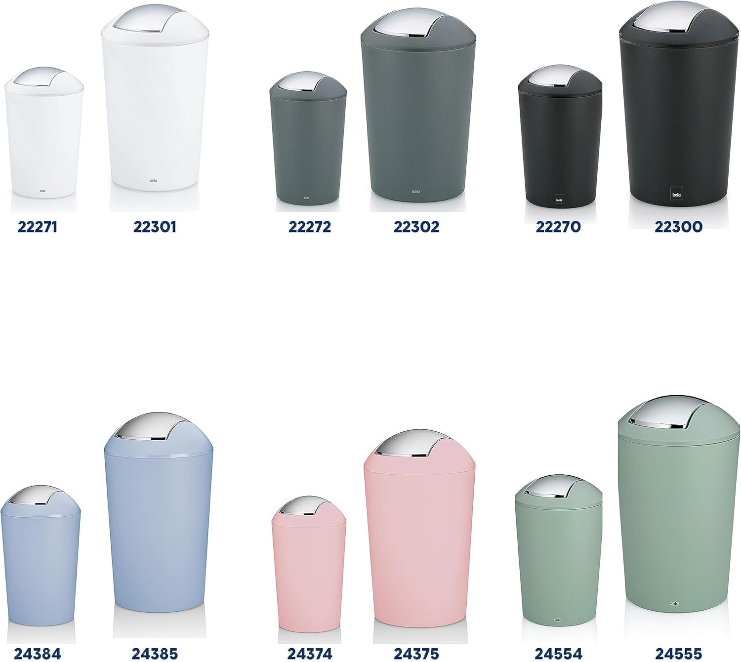 Informații despre acest articol Prea frumos pentru a arunca gunoiul în el: coșul de gunoi compact de baie de 5 L MARTA cu capac batant, fabricat din plastic de înaltă calitate, are un design simplu și oferă suficient spațiu pentru gunoiul zilnic din baie. Capacul batant al coșului de gunoi de baie, cu interior rotunjit, poate fi scos cu ușurință pentru golire. Așezat pe podea, gunoiul poate fi aruncat foarte ușor cu o singură mână prin capacul batant. Coșul de gunoi este versatil și ajută la menținerea curățeniei și ordinii în baie, WC sau în zona de lucru din bucătărie și birou. O pungă de gunoi de 10 l poate fi așezată în jurul marginii. kela, o companie de mărime medie cu o tradiție de 120 de ani, acasă în regiunea Șvabiei. Selecție mare de produse de înaltă calitate pentru bucătărie și baie, pentru a te simți bine acasă. Conținutul livrării: 1x coș de gunoi de baie MARTA negru (Art. Nr. 22300), volum 5 litri, dimensiuni H 29 cm, ∅ 19,5 cm. Curățare ușoară cu o cârpă umedă și detergent. Disponibil și în alte culori. Mai multe detalii despre produs