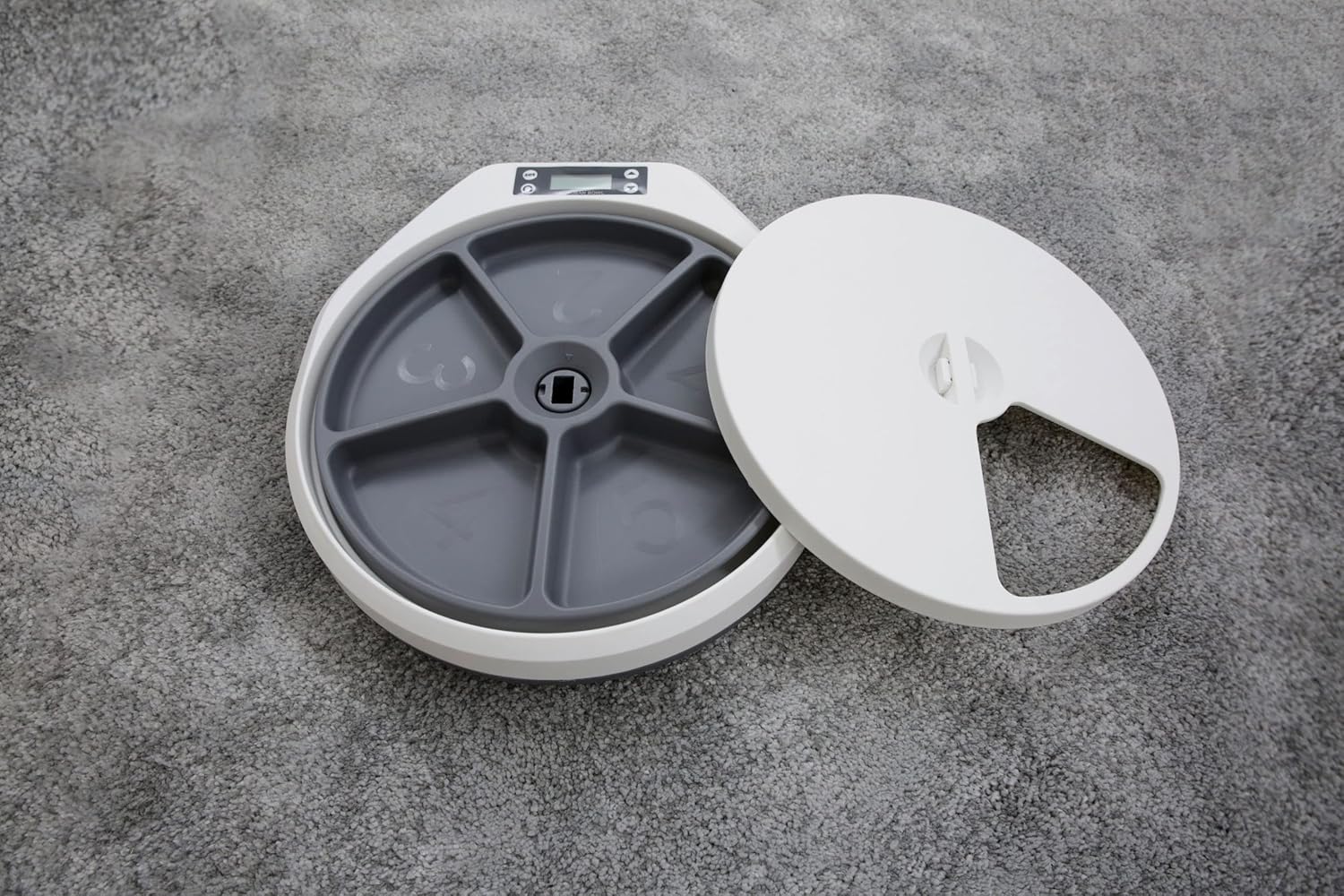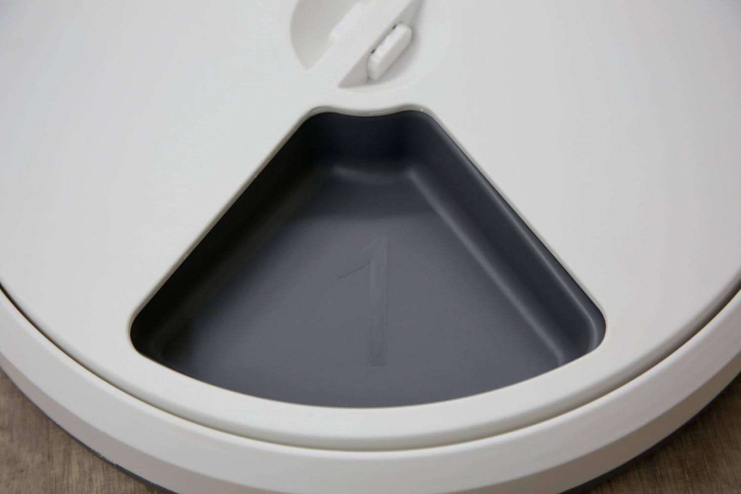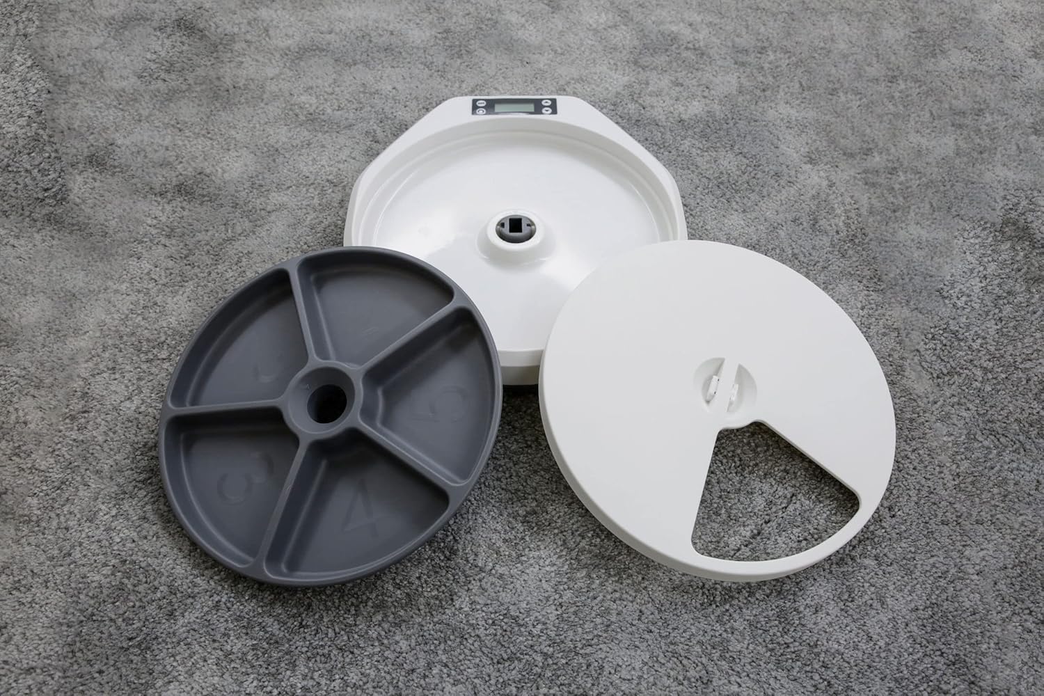 mit programmierbaren Timer für bis zu 5 Futterportionen pro Tag 4 + 1 Portionen à 240 ml Timer gewährleistet automatisches Öffnen der Portion nach Ablauf der eingestellten Zeit mit LCD-Display für Trocken- und Nassfutter geeignet einfache Programmierung leichte Reinigung dank herausnehmbarer und spülmaschinengeeigneter Futterschalen › Weitere Produktdetails