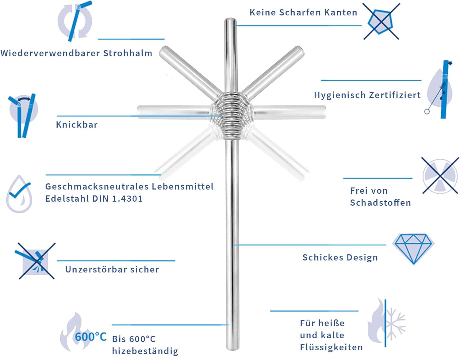 Informații despre acest articol 🥇 PRIMELE și SINGURELE paie metalice flexibile - Orice altceva sunt țevi din oțel inoxidabil - nu paie! Pentru că nu pot fi îndoite. Așa că, în loc de plăcere, apare rapid frustrarea la băut! Nu la noi! HalmBrüder este singura companie licențiată să distribuie aceste paie unice din oțel inoxidabil în Germania - astfel se evită căutările lungi și se găsește rapid adresa corectă pentru paiele reutilizabile flexibile! 👩🏼‍⚕️ CU CERTIFICAT GERMAN DE IGIENĂ - Când vine vorba de sănătate, nu ar trebui să ne gândim la economii, suntem cu toții conștienți de asta acum mai mult ca oricând. Faptul că originea a fost în China poate fi o coincidență. Cu toate acestea, ar trebui să fiți suspicioși la pachetele super-economice de 3,99€ sau 5,99€ de la o firmă chineză și să vă întrebați ce ați putea bea zilnic. Nimeni nu a testat aceste produse înainte. Paiele noastre sunt testate de Intertek și au sigiliul german GS. 💡 REZISTENT LA MAȘINA DE SPĂLAT VASE - Nu toate paiele pot fi curățate confortabil în mașina de spălat vase. Paiele din oțel inoxidabil de la HalmBrüder da! Cel mai bine la 60 °C. Vă includem întotdeauna o perie de curățare a paiului, în cazul în care preferați curățarea manuală. Dar la noi, rămâneți flexibili ca și paiele noastre metalice! Paiul reutilizabil poate fi astfel curățat igienic și curat, astfel încât să vă puteți bucura de băuturile dumneavoastră fără griji! ✅ MAI SIGUR DEC T PAIELE DE STICLĂ - Nimeni nu vrea să riște cioburi în gură. Prin urmare, alegeți paiele metalice mai sigure și mai durabile de la HalmBrüder. Paiul subțire (neflexibil) din sticlă este foarte fragil și, prin urmare, periculos nu doar pentru copii. Spre deosebire de paiul din sticlă, paiul nostru metalic este practic indestructibil. Ceea ce face paiele noastre reutilizabile - mereu și mereu! Astfel, paiele dumneavoastră rămân reutilizabile și sigure. 🔒 GARANȚIE DE SATISFACȚIE 100%! Testați paiele noastre metalice complet fără risc! În cazul puțin probabil în care nu sunteți mulțumit de produsul nostru, contactați-ne! Vă vom rambursa integral prețul de achiziție, vă vom trimite un înlocuitor gratuit sau vom lucra cu dumneavoastră la o soluție care vă va satisface! Chiar și dincolo de perioada de returnare obișnuită! Acesta este modul nostru de a vă mulțumi! 🙋🏼‍♂️🙋🏻‍♂️ › Mai multe detalii despre produs