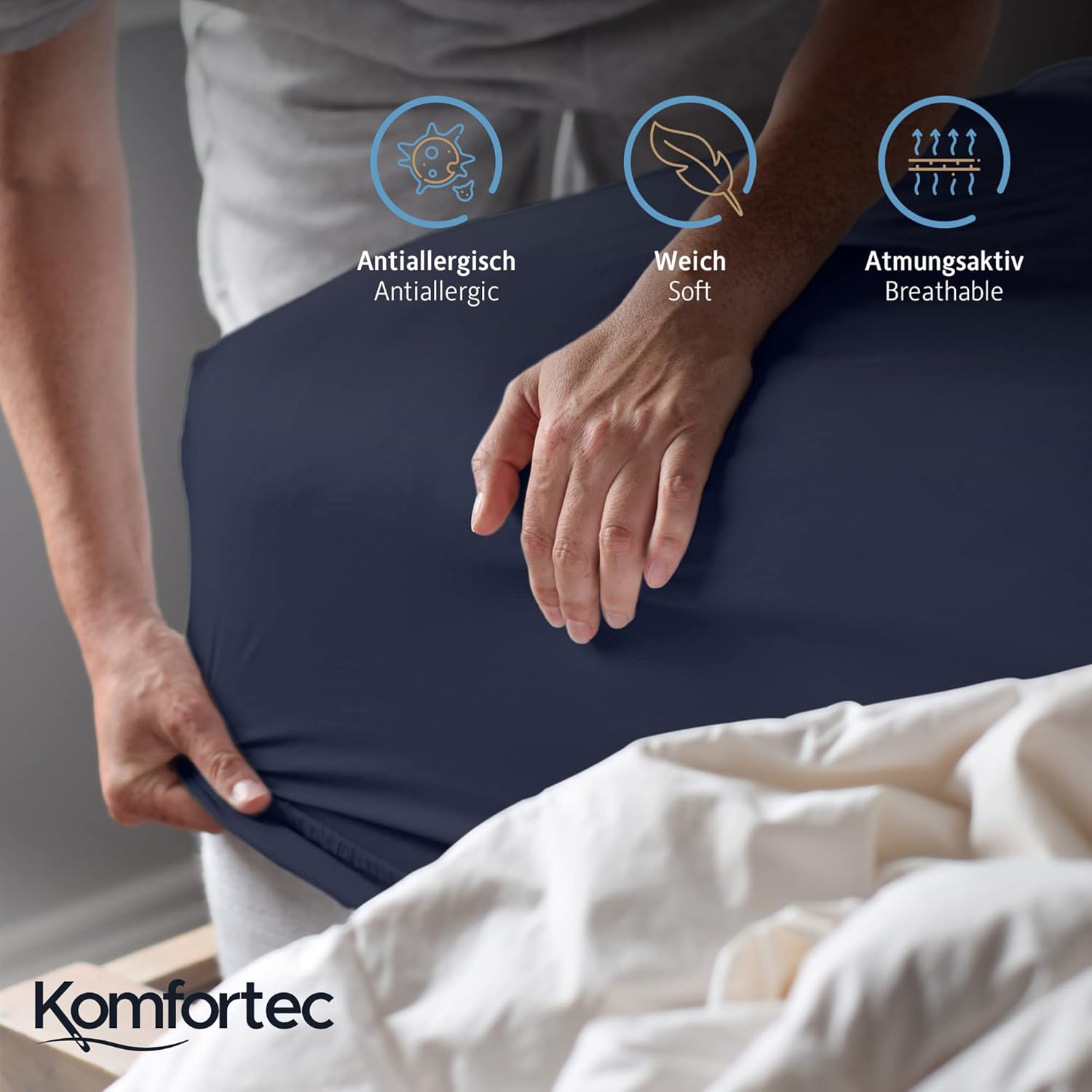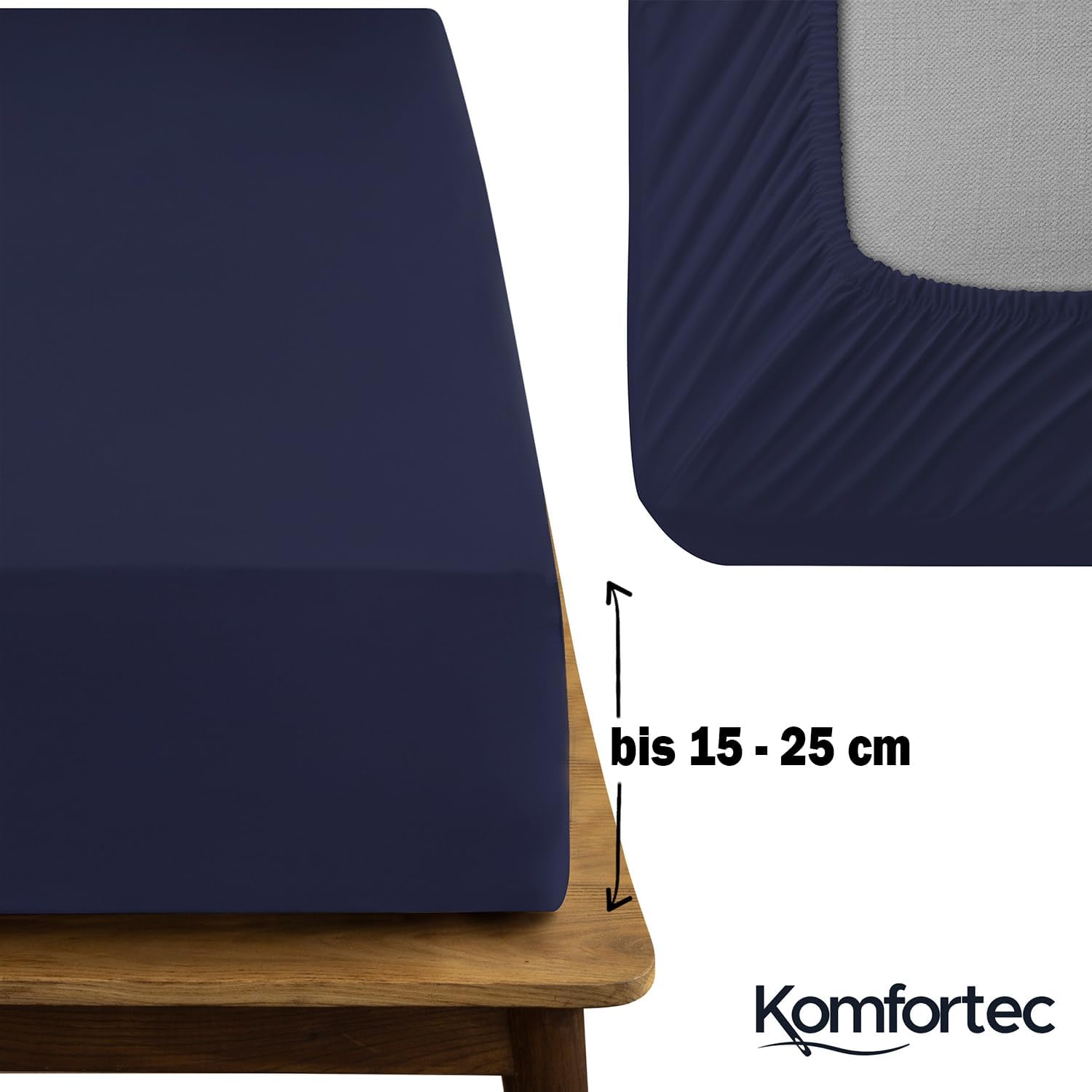 Despre acest articol Fabricate din bumbac 100% de calitate jersey (135 g/m²) – Cearșafurile cu elastic Komfortec oferă o senzație plăcută, prietenoasă cu pielea și asigură un climat sănătos pentru somn. Materialul este moale, respirabil și reglează temperatura – ideal pentru tot anul. Țesătura fină, pieptănată, face cearșaful de pat deosebit de rezistent și durabil. Își păstrează forma chiar și după spălări frecvente și oferă o experiență de somn confortabilă pe termen lung – moale și plăcut în același timp. Pachetul include: 1 cearșaf cu elastic de 180x200 cm, culoare: Albastru. Datorită elasticului pe toată circumferința, cearșaful se potrivește perfect pe saltele de până la 25 cm înălțime – potrivit pentru paturi boxspring, paturi cu apă, saltele standard și toppere. Cearșafurile cu elastic Komfortec sunt disponibile în 9 culori elegante și 5 mărimi comune. Fie că este vorba de un pat individual sau dublu – găsiți varianta potrivită pentru dormitorul, camera de oaspeți sau apartamentul dumneavoastră de vacanță. Opțiuni de culori: Negru, Alb, Antracit, Roșu, Gri, Negru, Albastru, Ecru, Verde deschis, Albastru deschis. Mărimi: 90x200, 140x200, 160x200, 180x200, 200x200 cm. Lavabil la 40 °C și potrivit pentru uscător la temperatură joasă. Nu călcați. De asemenea, certificat Oeko-Tex Standard 100 – fără substanțe nocive și ideal pentru persoanele cu alergii și piele sensibilă. › Mai multe detalii despre produs