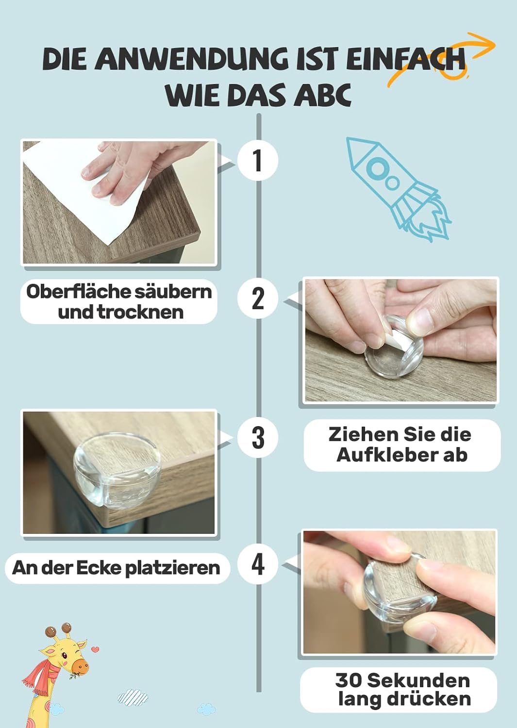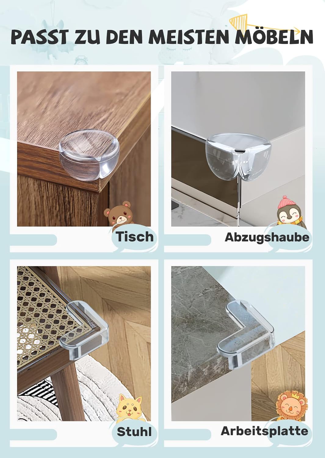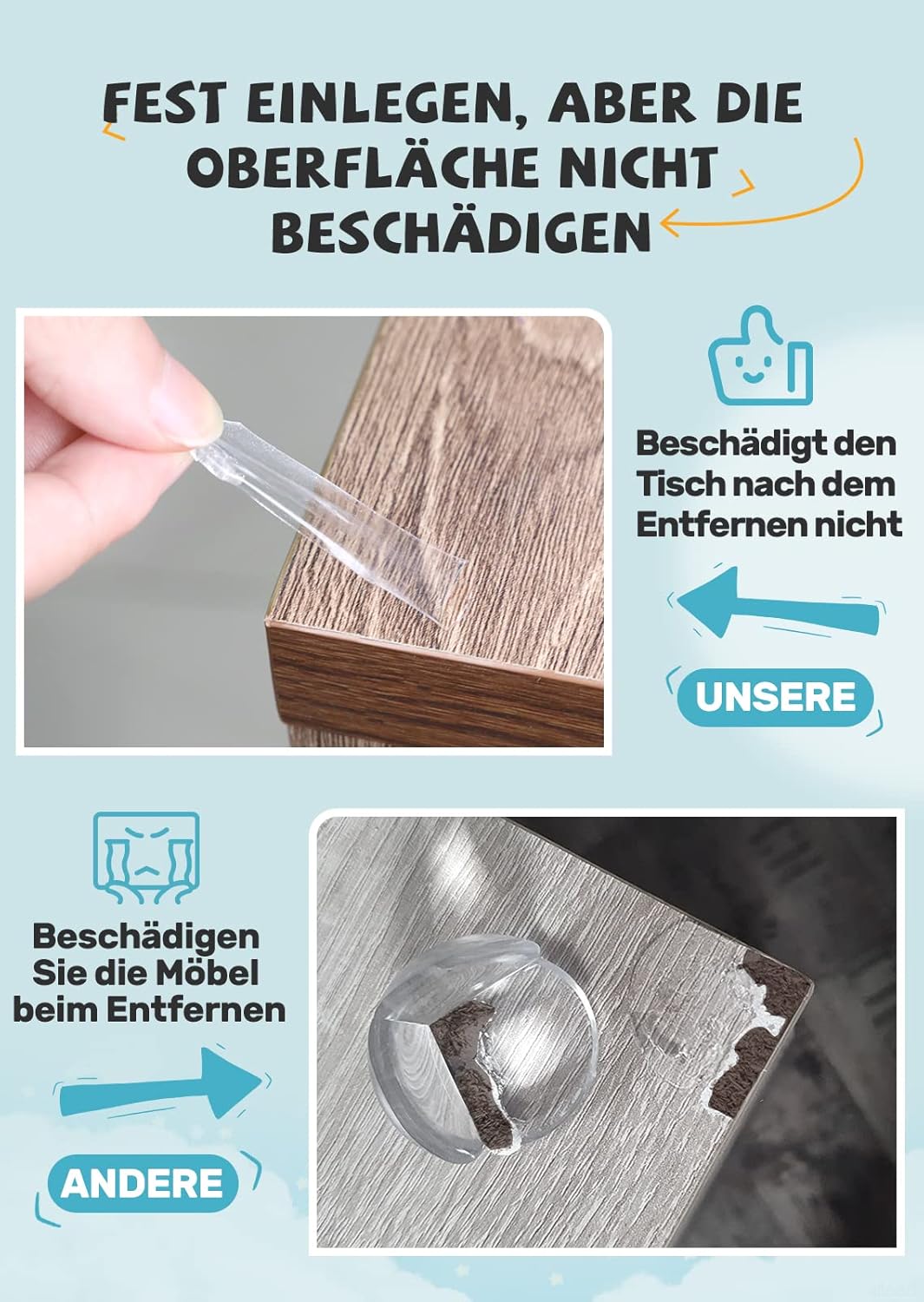 Despre acest articol Protejează-ți Îngerii Mici: Asigură siguranța completă a copiilor tăi cu protecțiile de colț pentru bebeluși lanpard. Aceste gadgeturi pentru bebeluși sunt deosebit de importante pentru a preveni vânătăile, roșeața, contuziile și alte leziuni grave după lovituri accidentale acasă. Astfel, susțineți creșterea sănătoasă a micuților voștri îngeri. Materiale netoxice și moi: Protecțiile noastre de colț și margini pentru bebeluși sunt fabricate din PVC netoxic și fără gust, care nu conține BPA și alte substanțe chimice nocive. Deoarece bebelușilor le place să mestece, să sugă sau să lingă obiecte, ne-am asigurat că protecția noastră de colț pentru bebeluși este sigură pentru sănătatea bebelușului dumneavoastră. Diametrul protecției din spumă pentru colțuri este mai mare decât cel al altor produse, pentru a minimiza riscul de înghițire. Potrivit pentru majoritatea pieselor de mobilier: Pachetul nostru conține două forme diferite de protecții pentru capul bebelușului: în formă de L și în formă de O. Ambele forme sunt potrivite pentru majoritatea pieselor de mobilier de interior. Le puteți aplica pe colțurile mesei din sufragerie, canapea, noptiere din dormitor, dulapuri, hote de bucătărie și în alte locuri. Designul transparent se potrivește perfect cu diferite stiluri de decorare din casa dumneavoastră. Aderenta puternică: Folosim un adeziv acrilic care este utilizat pe scară largă la lipirea sticlei. Acest adeziv nu este doar transparent, ci și păstrează estetica mobilierului dumneavoastră. Oferă o aderență sigură și fermă, astfel încât protecțiile de colț pentru masă pentru bebeluși pot asigura siguranța bebelușului dumneavoastră pentru o lungă perioadă de timp. Aplicare ușoară într-un minut: Curățați bine suprafața mesei de praf și asigurați-vă că este uscată. Lipiți banda adezivă inclusă pe protecția de colț a mesei și îndepărtați folia de protecție. Apăsați ferm protecția de colț pentru bebeluși pe marginea mesei timp de 30 de secunde. Îndepărtarea este ușoară: Încălziți zona adezivă cu un uscător de păr timp de 30 de secunde, iar adezivul se va îndepărta fără a lăsa reziduuri și fără a deteriora mobilierul dumneavoastră.