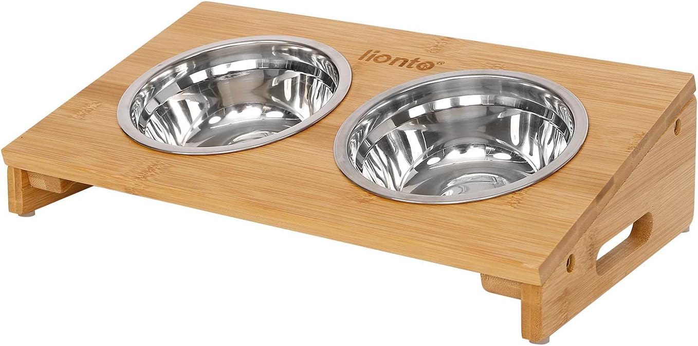 [RESIGILAT] Suport inaltat din bambus cu boluri pentru caini si pisici
