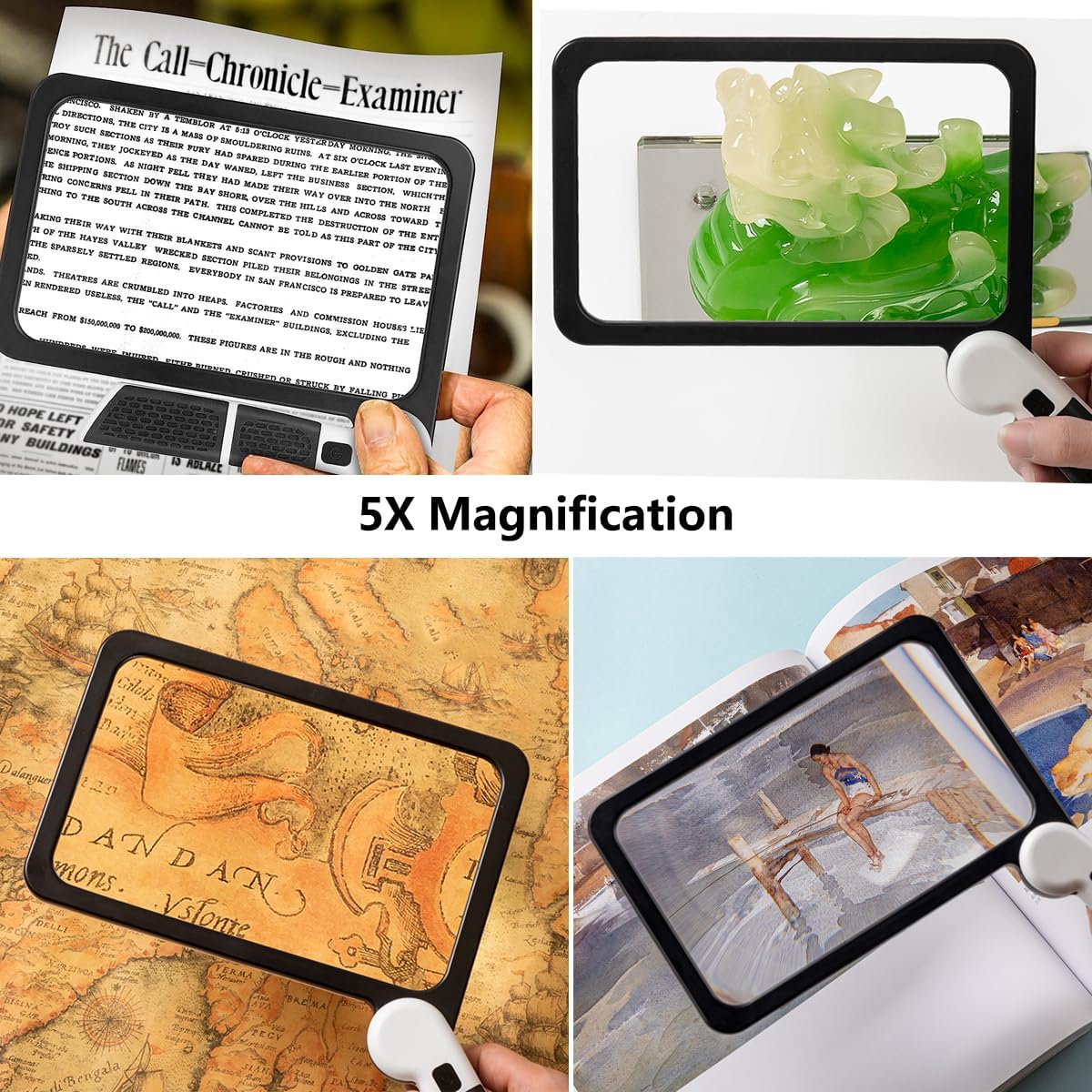 Mărire de 5x: Această lupă este concepută pentru a mări literele mici cu până la 500% fără distorsiuni optice, ceea ce o face un instrument ideal pentru citirea cărților, ziarelor, revistelor și multe altele.