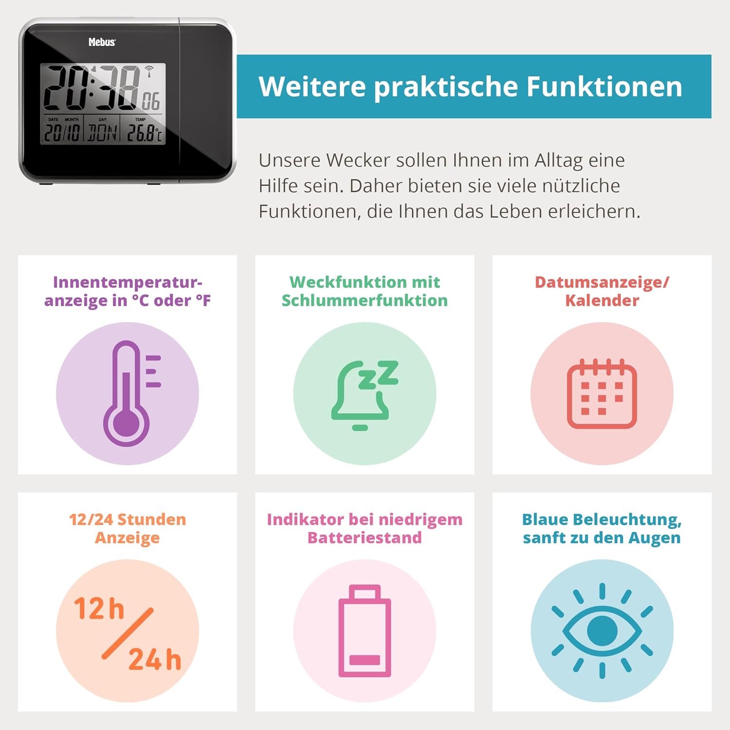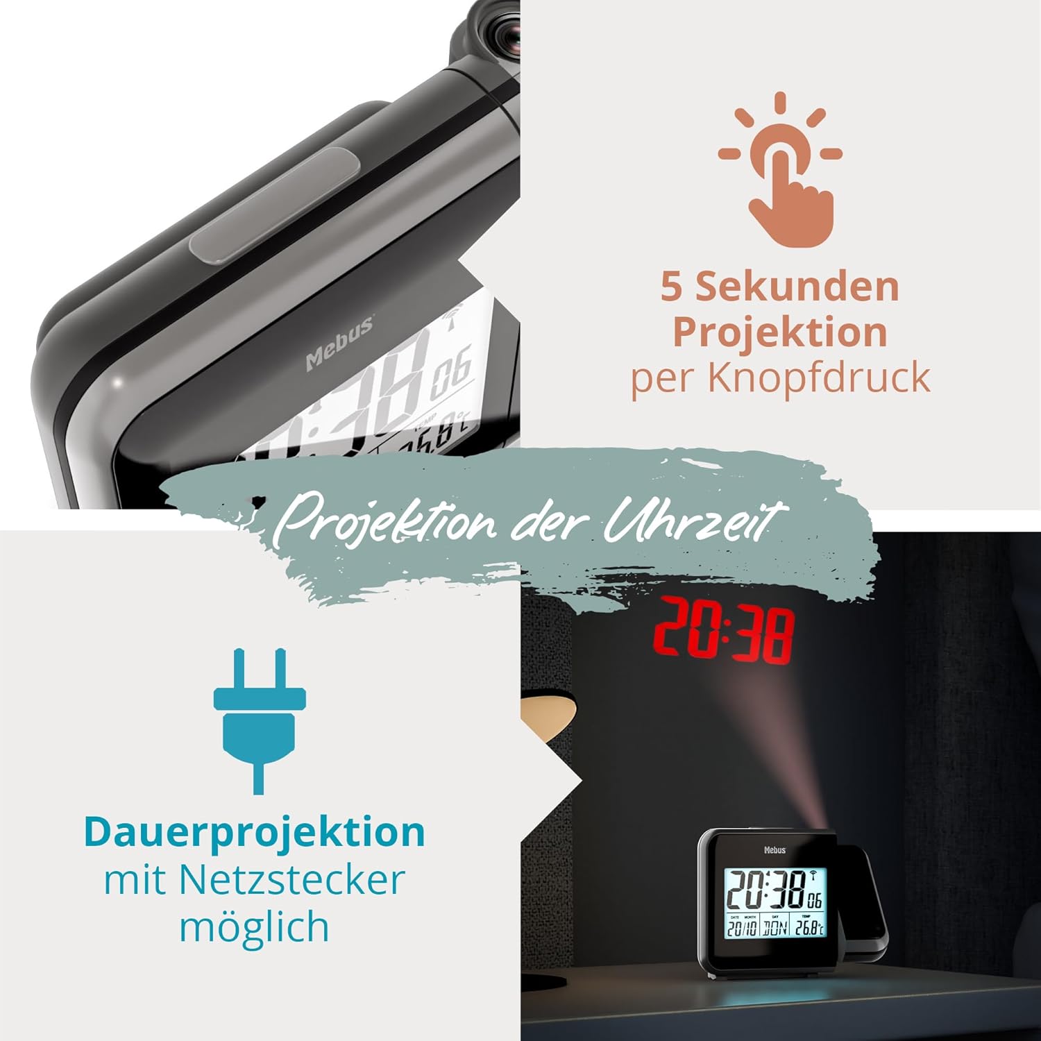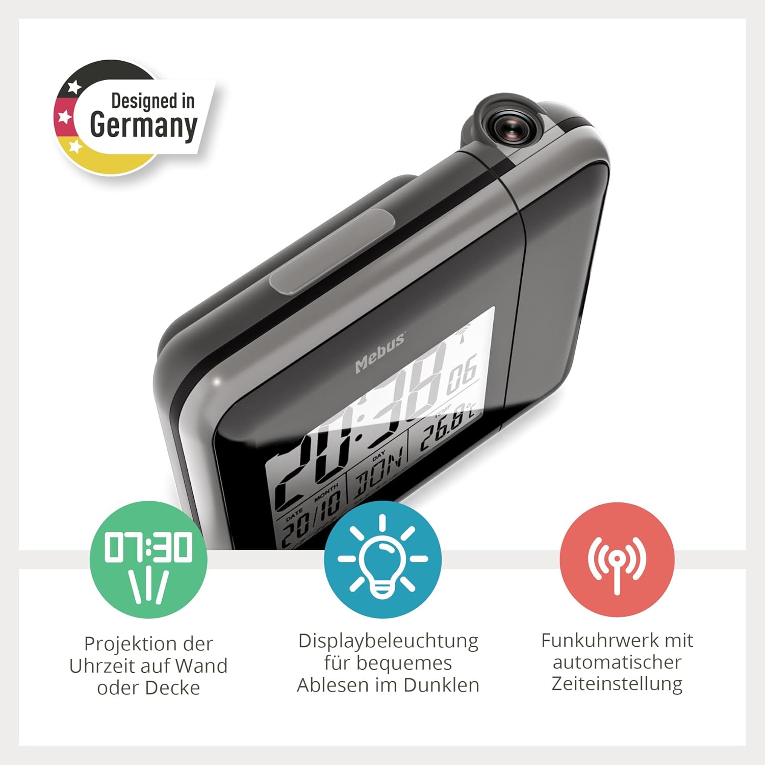 [RESIGILAT] Mebus ceas alarma radio controlat cu proiectie si termometru