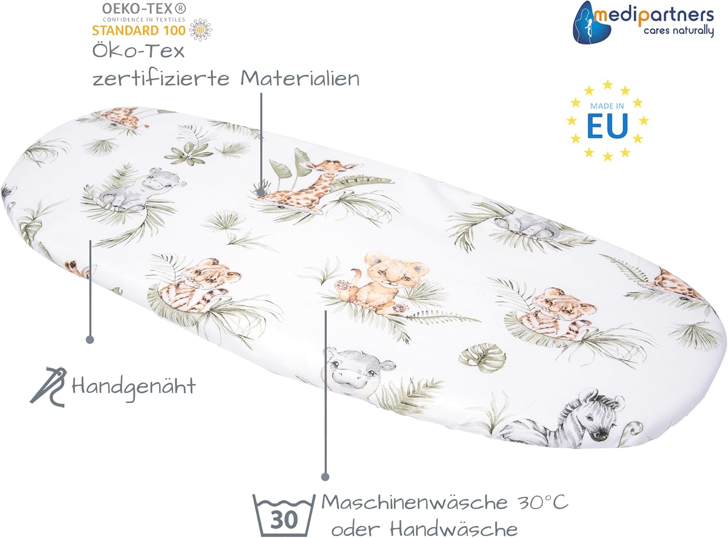 Informații despre acest articol Confort și comoditate - Cearșaful de pat pentru cărucior are un elastic cusut cu grijă, iar lățimea corectă a pliului asigură o potrivire perfectă pe salteaua bebelușului. Materialul moale este plăcut la atingere și oferă confort și comoditate copilului dumneavoastră. Calitate superioară - Cearșafurile de pat pentru cărucior sunt cusute din bumbac gros, cu o greutate de 140 g, ceea ce asigură o durabilitate excelentă de-a lungul anilor. Fabricat în Polonia de o echipă experimentată de croitori. Perfect pentru cărucioare, leagăne și pătuțuri. Un cadou minunat pentru fiecare copil. Datorită designului, cearșaful de pătuț se potrivește oricărui cărucior sau pătuț pentru bebeluși. Cearșaful de pat pentru cărucior este, de asemenea, un element excelent care stimulează simțurile cognitive ale copiilor care au nevoie de stimuli vizuali suplimentari în primele luni. Pentru binele copilului, cearșaful de pat pentru cărucior este fabricat din material de înaltă calitate - 100% bumbac, este respirabil și echilibrează temperatura, garantând astfel confortul somnului. Cearșaful de pat pentru bebeluși este ideal pentru contactul cu pielea sensibilă a copilului. Materialul de înaltă calitate nu își pierde proprietățile în ciuda spălărilor repetate. Cearșafurile de pat pentru cărucior sunt disponibile într-o multitudine de culori minunate, care nu își pierd intensitatea și nu se decolorează la spălare. MODELE FRUMOASE: Designerii noștri au creat cearșafuri de pătuț în combinații perfecte de culori. Cearșaful de pat pentru cărucior este potrivit atât pentru băieți, cât și pentru fete. Cearșaf elegant și universal – se potrivește oricărui echipament de bebeluș, perfect ca un cadou. Mai multe detalii despre produs
