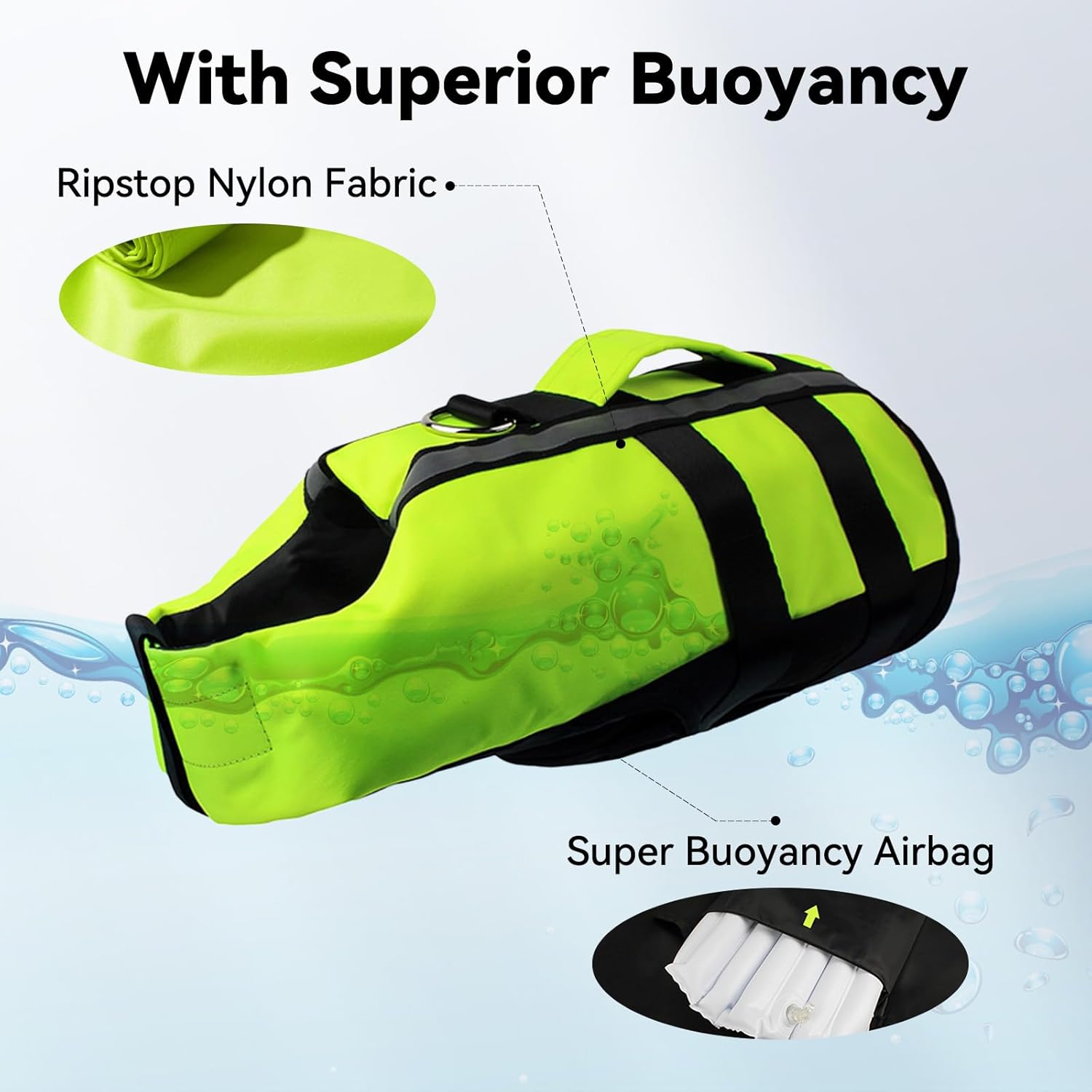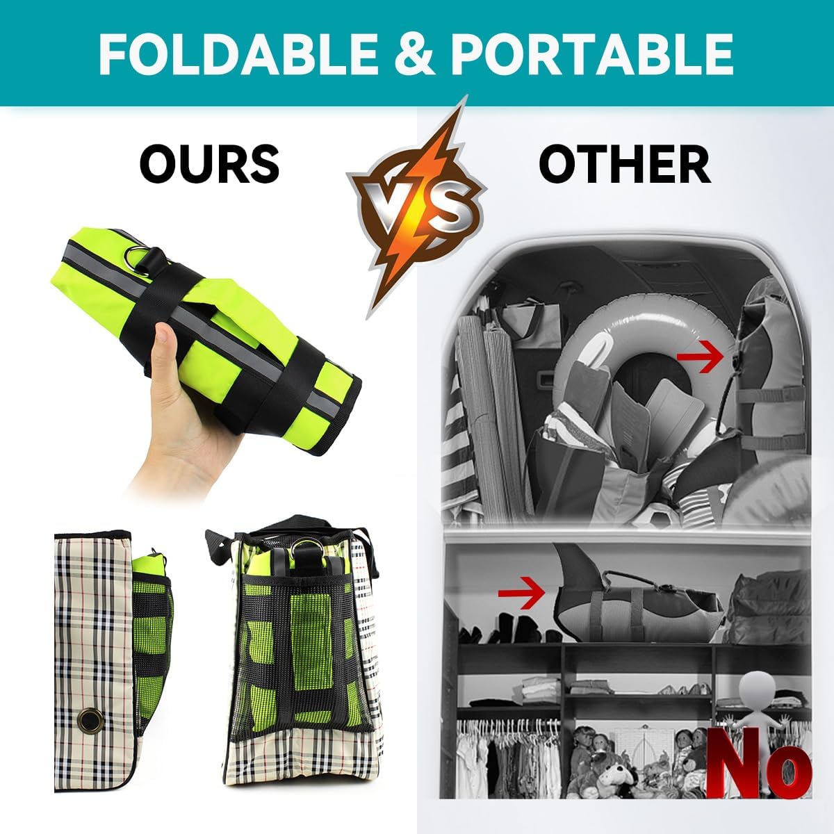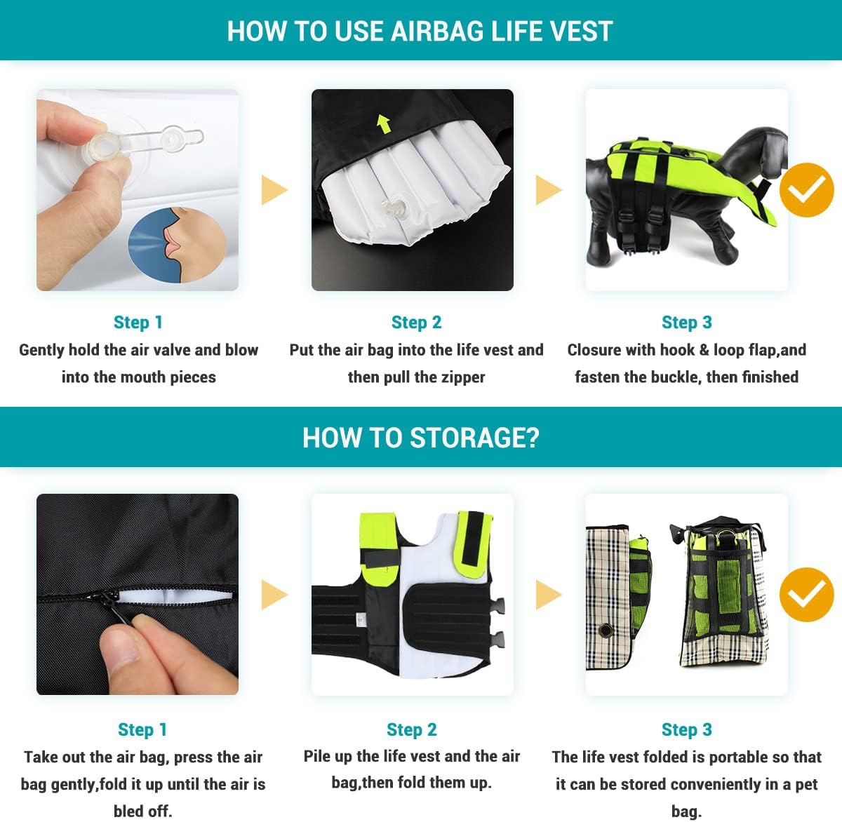 Despre acest articol Mărimea M: Circumferința gâtului: 38-53 cm, Circumferința pieptului: 38-58 cm, Lungimea îmbrăcămintei: 28 cm; Există modele Velcro pe gât și burtă, care pot fi ajustate; vă rugăm să vă măsurați animalul înainte de cumpărare, să acordați atenție lungimii vestei de salvare, lungimea prea lungă va afecta urinarea animalului de companie. Potrivit pentru începători și câini cu experiență bogată de înot: vestele de salvare NAMSAN pentru câini au o flotabilitate puternică și oferă suficientă siguranță pentru câini. Permiteți câinilor să participe la activitățile dvs. în aer liber pentru a îmbunătăți interacțiunea reciprocă și exercițiul. Design unic: Jacheta de salvare pentru câini constă dintr-un airbag gonflabil și o vestă verde. După umflarea airbag-ului, acesta poate fi utilizat ca o setare a flotabilității, iar flotabilitatea sa nu este mai mică decât cea a spumei, astfel încât poate fi utilizat cu încredere. Vesta verde poate fi utilizată ca un articol de îmbrăcăminte de zi cu zi sau ca înlocuitor pentru o vestă cu vizibilitate ridicată. Aplicare: Umflați airbag-ul și puneți-l în vestă , închideți fermoarul, atașați Velcro-ul burții și fixați doi nasturi. Catarama în formă de D și mânerul de pe spate pot fi folosite pentru a controla libertatea de mișcare a animalului de companie. Design de siguranță: Designul atrăgător cu dungi verzi și reflectorizante de pe spate asigură că animalul de companie este în vizorul stăpânului și evită poziția discretă a animalului de companie atunci când înoată în apă. Atunci când animalul dvs. de companie înoată pentru prima dată, apucați mânerul de pe spatele vestei de salvare a animalului dvs. de companie pentru a ajuta animalul dvs. de companie să se obișnuiască mai întâi cu apa. Alte detalii despre produs