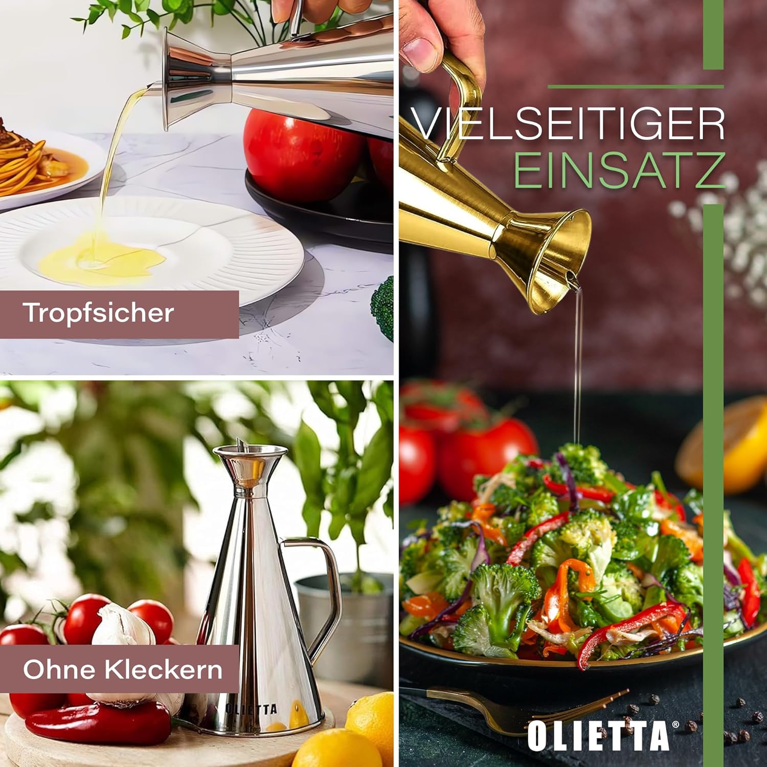 Calitate premium din oțel inoxidabil: Olietta este fabricată din oțel inoxidabil de înaltă calitate, alimentar. Igienic și etanș - acest dozator de ulei asigură că uleiul dumneavoastră rămâne proaspăt și limpede. Un accesoriu indispensabil pentru orice gurmand.