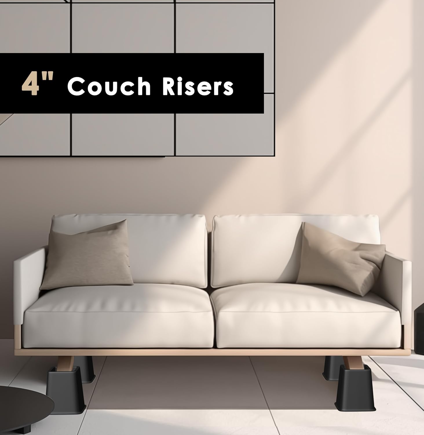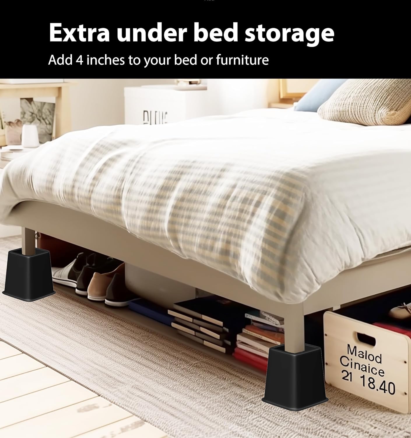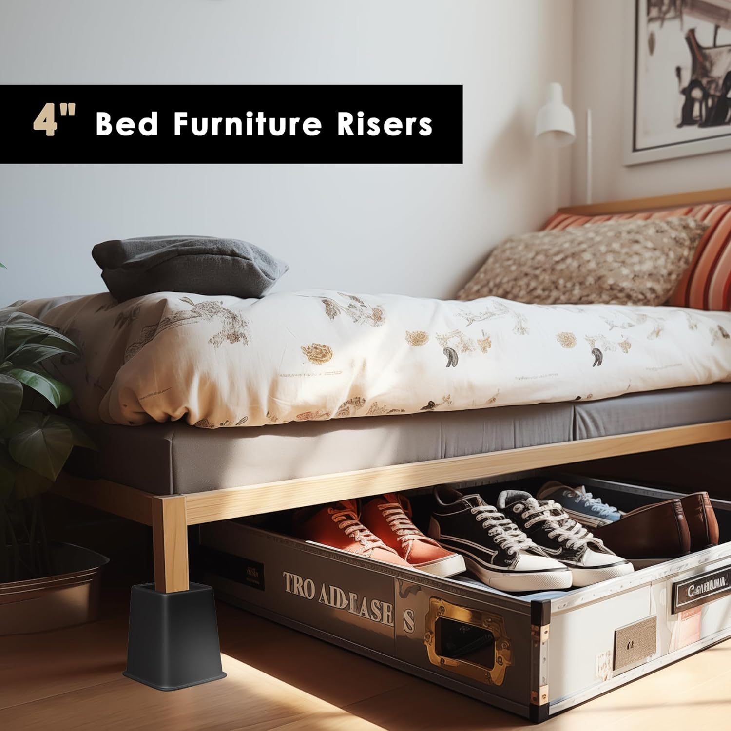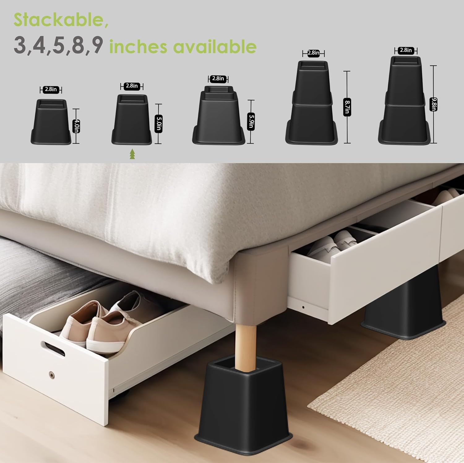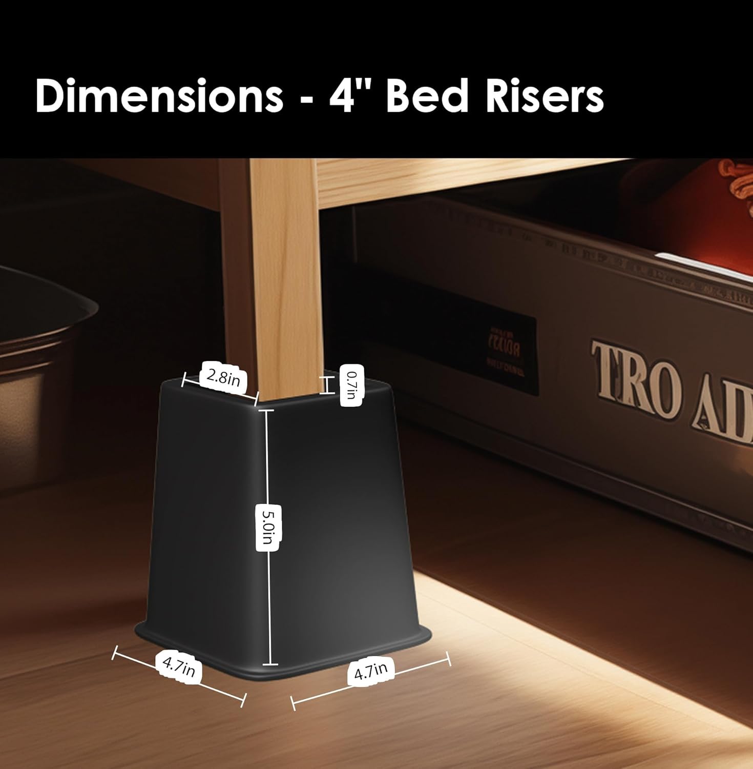Îmbunătățiți-vă spațiul de locuit: Atingeți înălțimea perfectă pentru mobilierul dvs. cu înălțări de 4 inchi, sporindu-vă confortul și stilul. Acest pachet include 4 bucăți de înălțări pentru pat de 4 inchi. Suport durabil: Fabricate din materiale rezistente, aceste înălțări pot ridica până la 300 de livre pe înălțare, asigurând stabilitate și siguranță pentru mobilierul dvs. Potrivire sigură și versatilitate: Cu o înălțime sigură de 2,8 inchi și o adâncime de 0,7 inchi, aceste înălțări sunt perfecte pentru paturi, canapele, birouri și mese. Design care economisește spațiu: Aceste înălțări sunt stivuibile și economisesc spațiu, creând spațiu suplimentar sub mobilierul dvs. pentru depozitare sau curățare ușoară. Protecția podelei: Fiecare înălțare are mânere din cauciuc pentru a vă proteja podelele și a preveni alunecarea mobilierului, asigurând un mediu stabil și sigur.