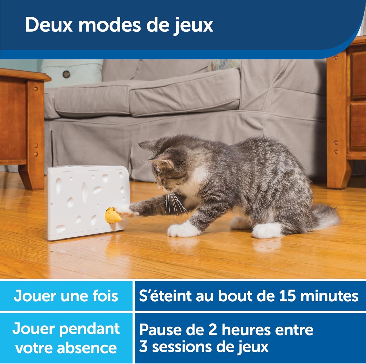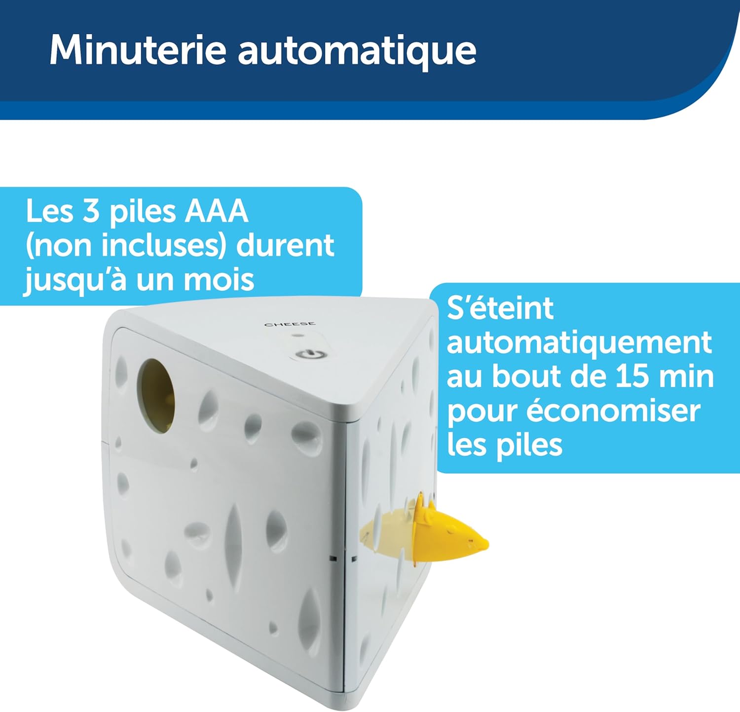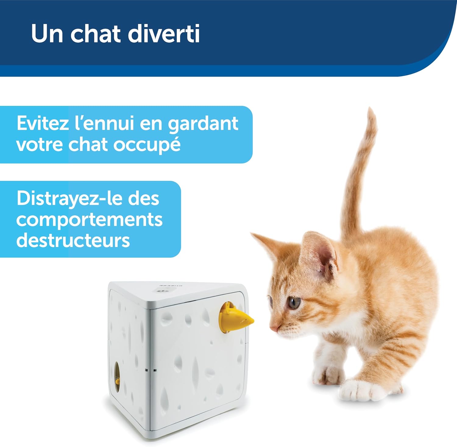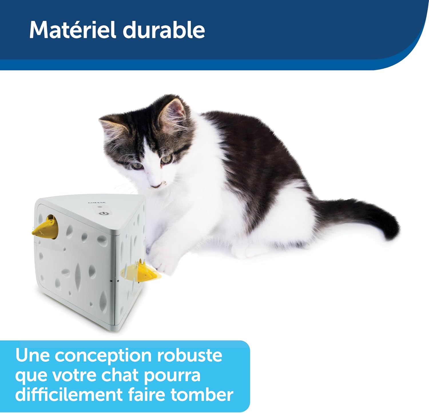 Jucăria interactivă PetSafe Cheese transformă joaca pisicii tale într-o experiență captivantă, stimulând instinctele naturale de vânătoare. Șoriceii ies aleatoriu din brânza elvețiană, menținând pisica activă și implicată pe tot parcursul zilei.