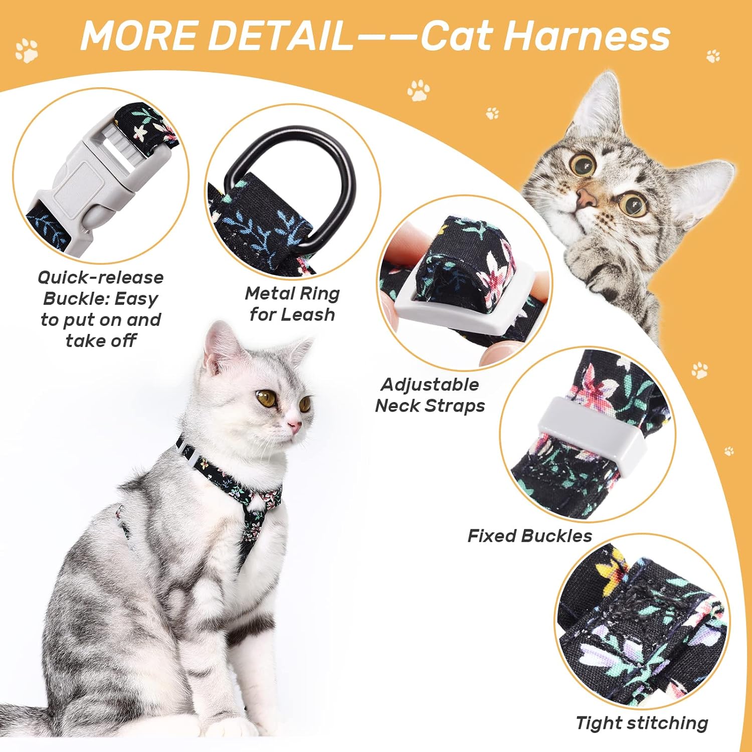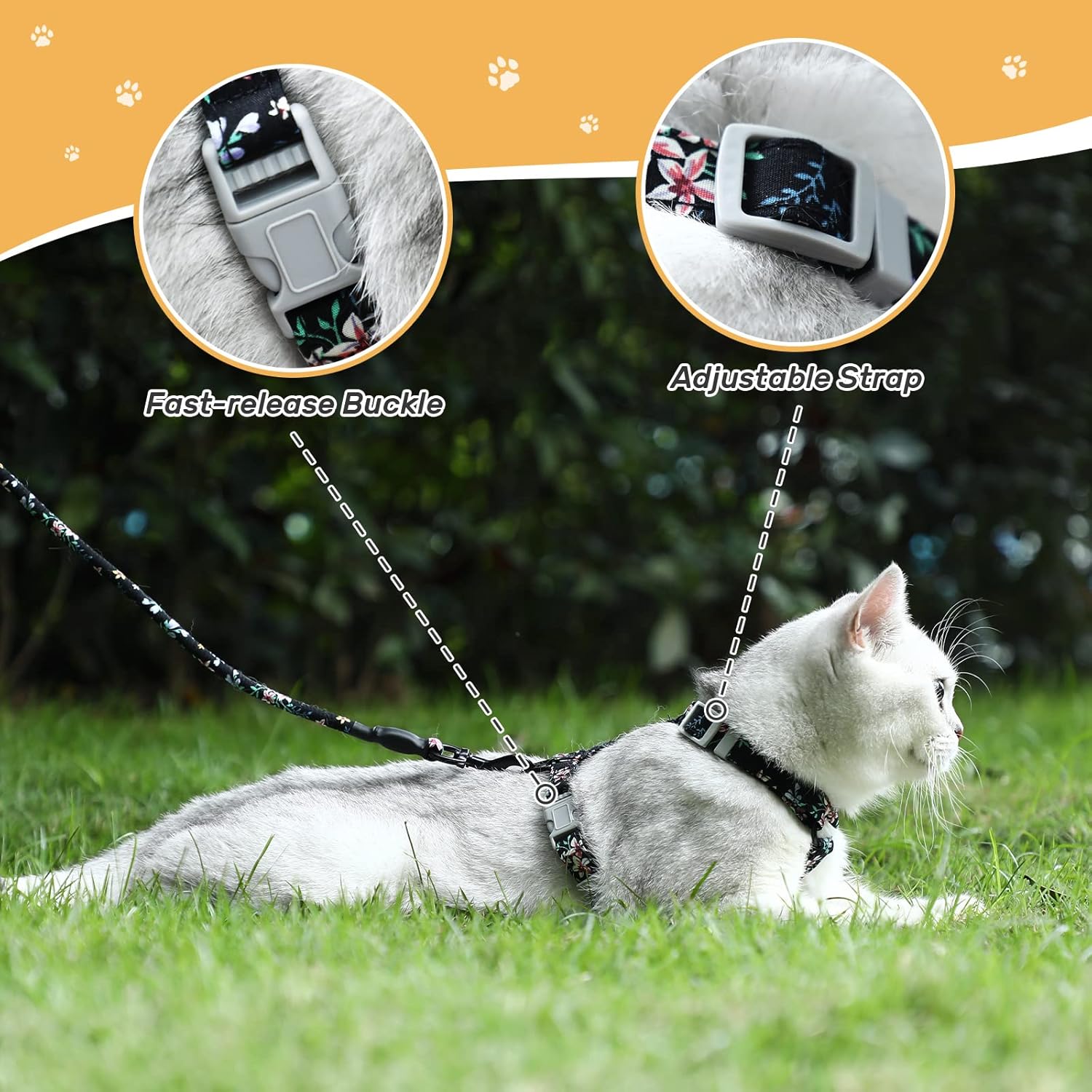 [RESIGILAT] Harnasament pisici floral cu lesa reglabila pentru mici