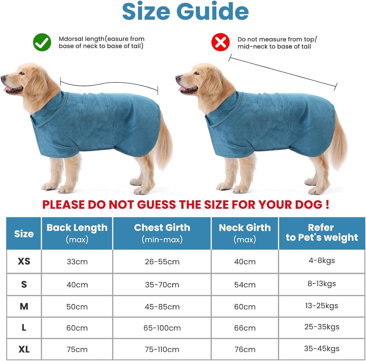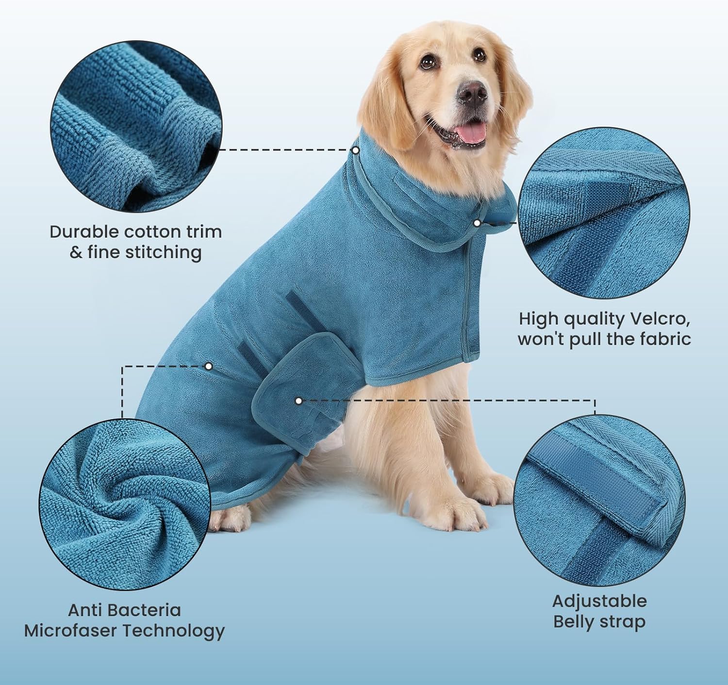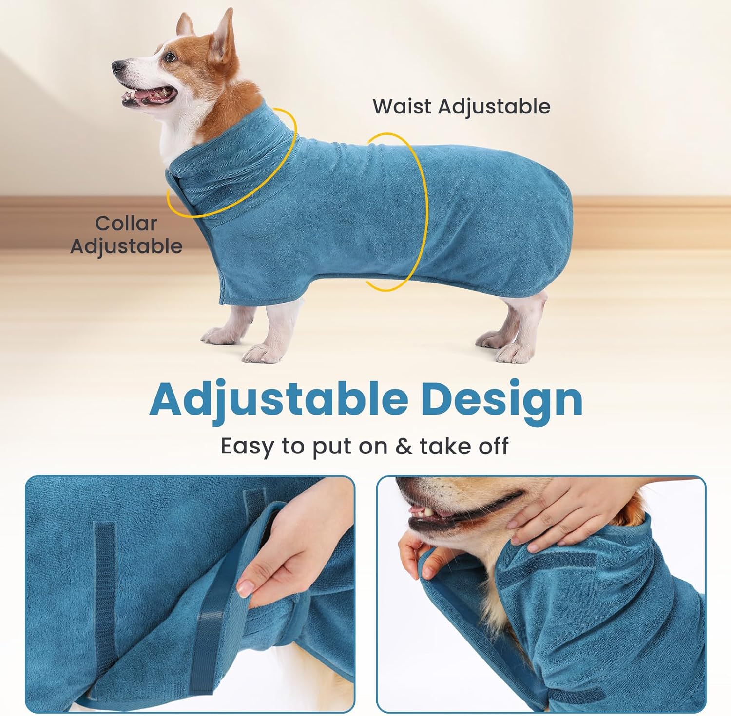 Informații despre acest articol EXTRA ABSORBANT: Halatul de baie pentru câini, confecționat dintr-un material fin de microfibră, este super absorbant, ceea ce face uscarea după baie eficientă și confortabilă pentru animalele dvs. de companie. DESIGN CU VELCRO: Cu designul practic cu velcro la gât și la burtă, halatul de baie pentru câini este ușor de îmbrăcat și de scos. Se adaptează perfect la forma corpului animalului dvs. de companie, indiferent de mărime. LAVABILITATE UȘOARĂ: Halatul nostru de baie este robust și ușor de întreținut. Poate fi spălat la mașină și uscat în uscător, nu se decolorează și nu lasă scame, ceea ce îl face o alegere practică pentru utilizarea zilnică. POTRIVIRE SIGURĂ: Halatele noastre de baie sunt disponibile în 5 mărimi (XS-XL) și se potrivesc excelent de la câini mici la câini mari, oferind o acoperire completă pentru protecție și confort optim. UTILIZARE VERSATILĂ: După baie, înot sau pe ploaie – halatul de baie pentru câini este acolo pentru toate cazurile. Timpii scurți de uscare asigură o uscare rapidă fără probleme ale pielii. › Mai multe detalii despre produs